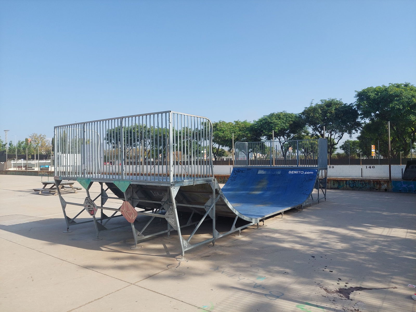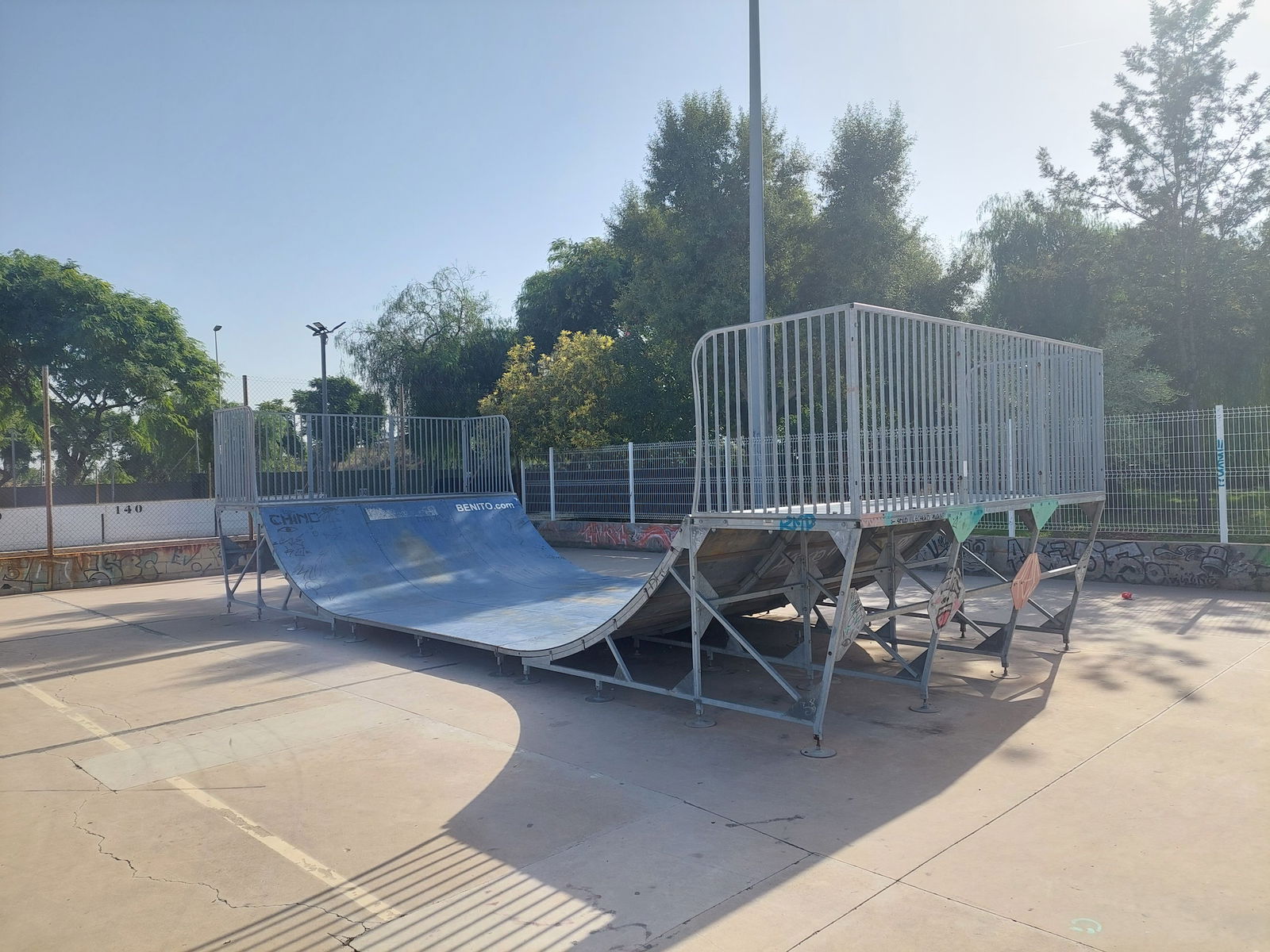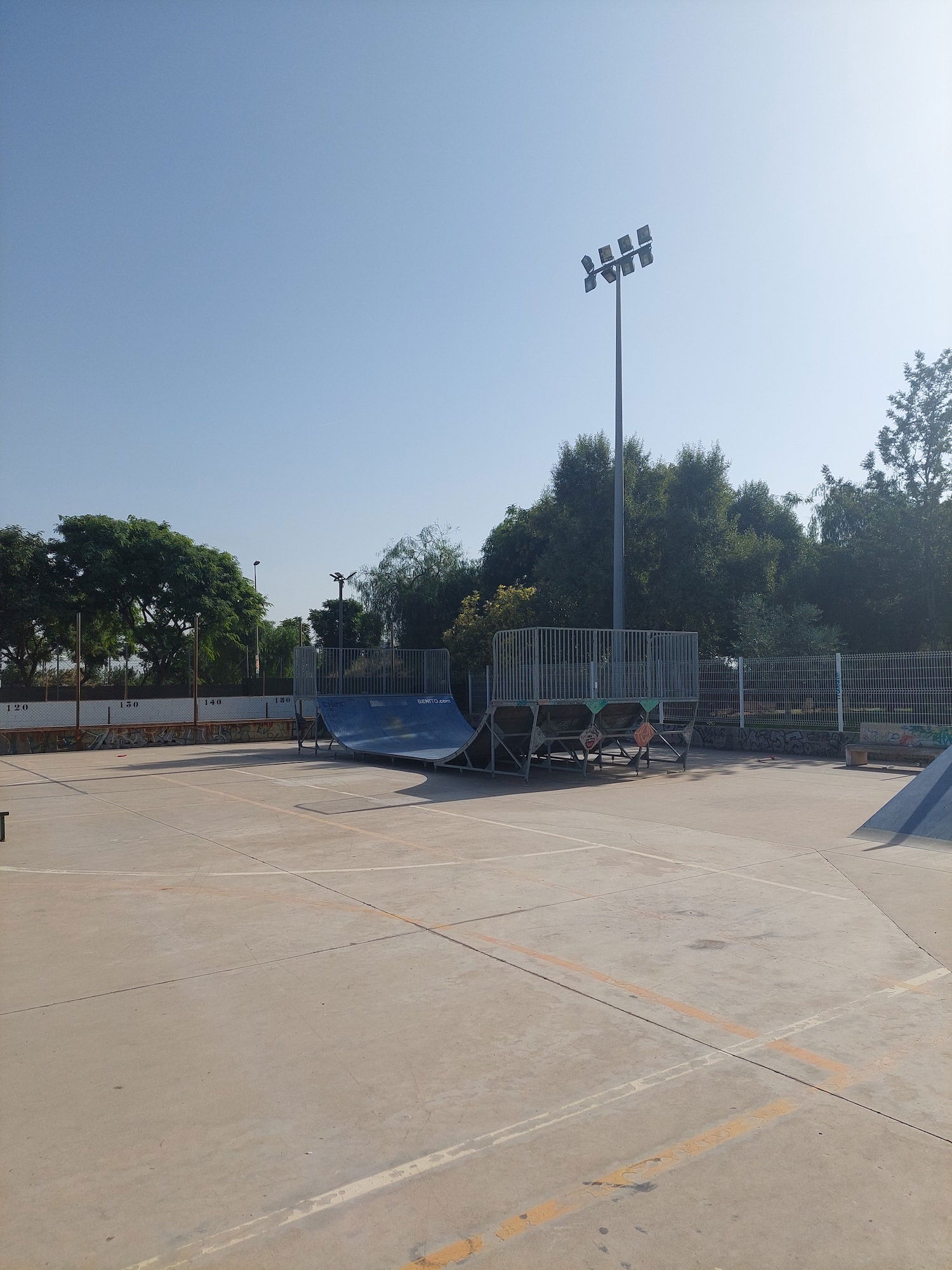 Vila Real skatepark features a miniramp and a back and forth area with the typical quarterpipe, funbox and bank setup. The skatepark has lights and a bar located at the park.