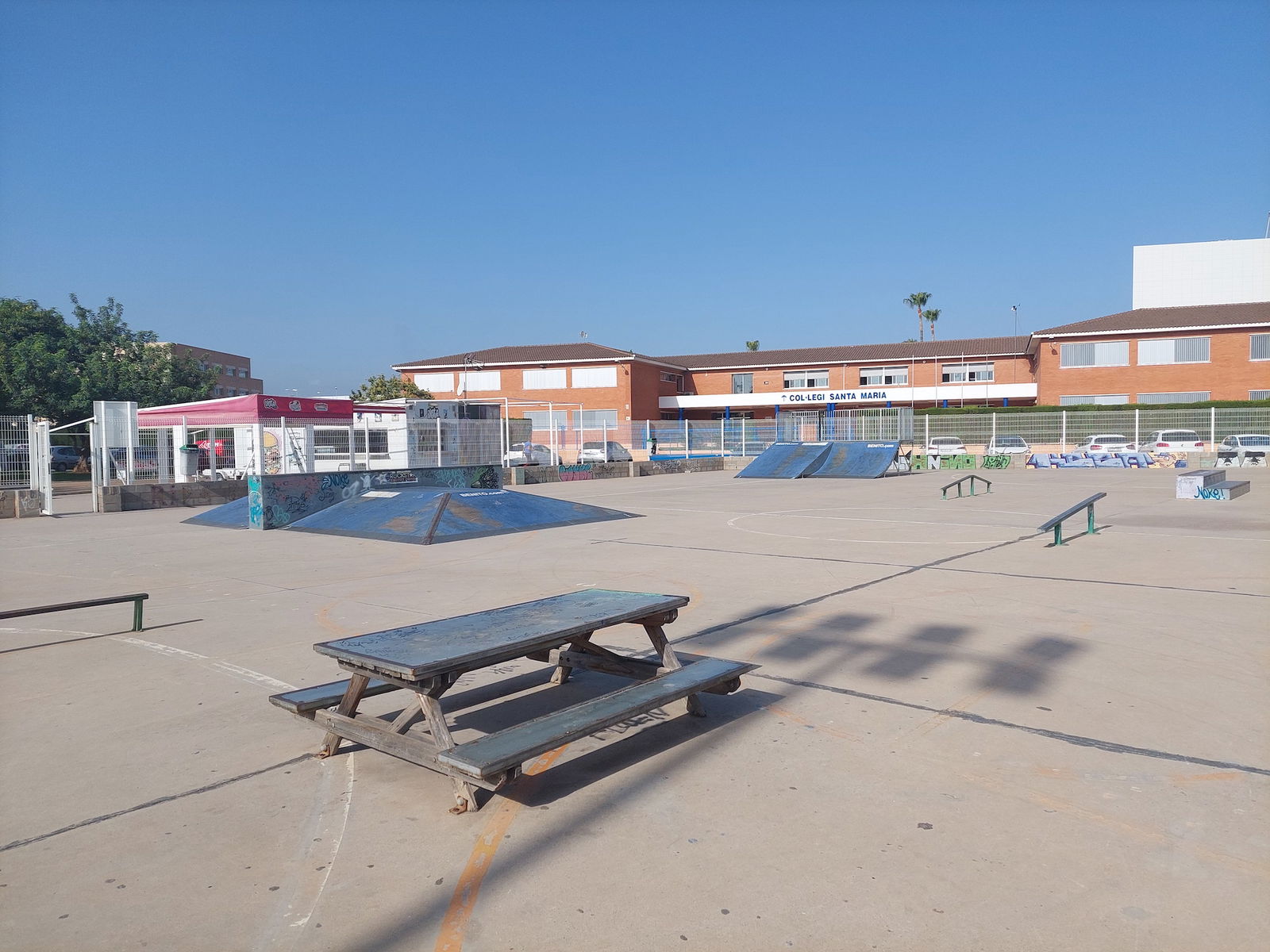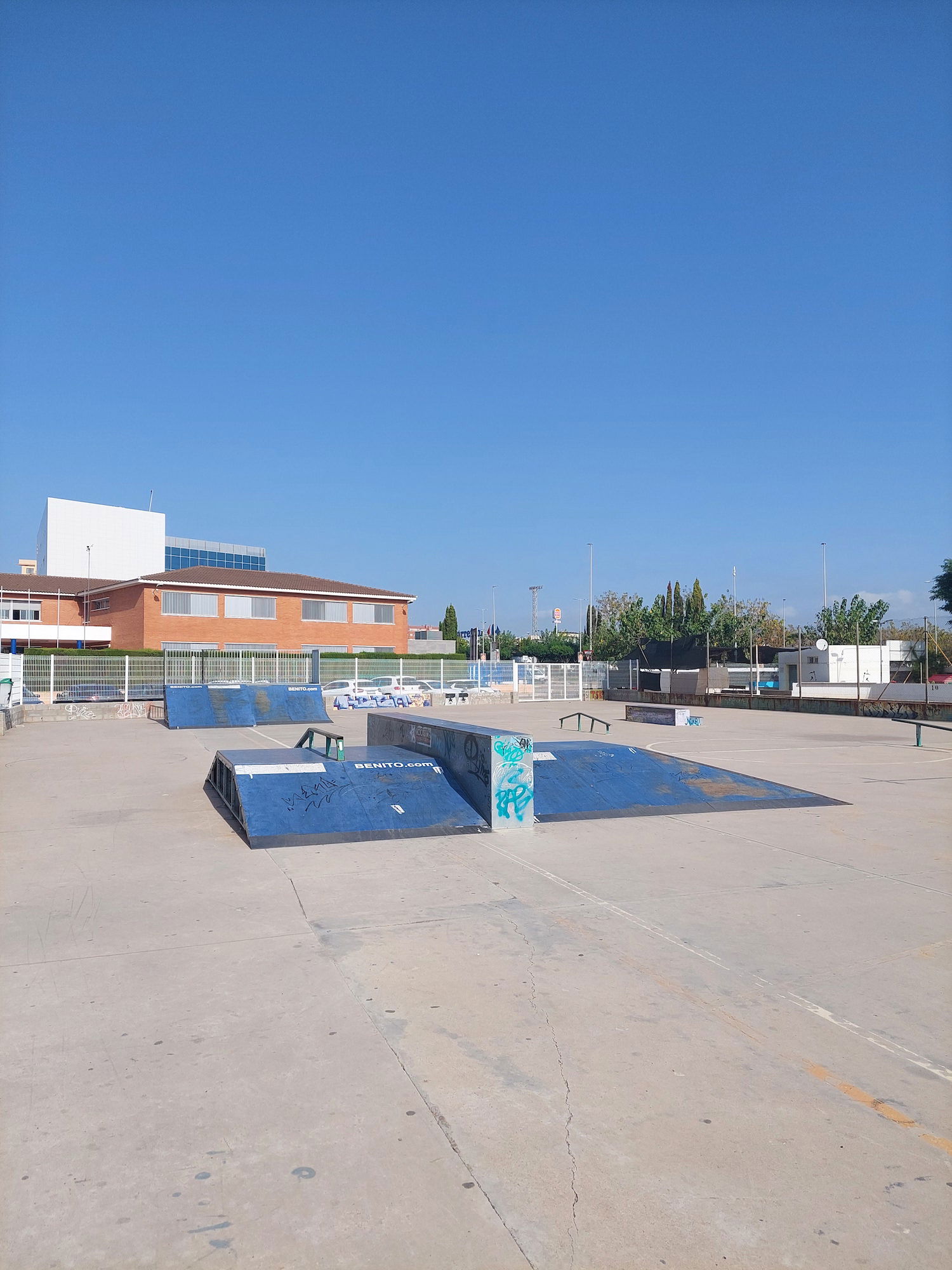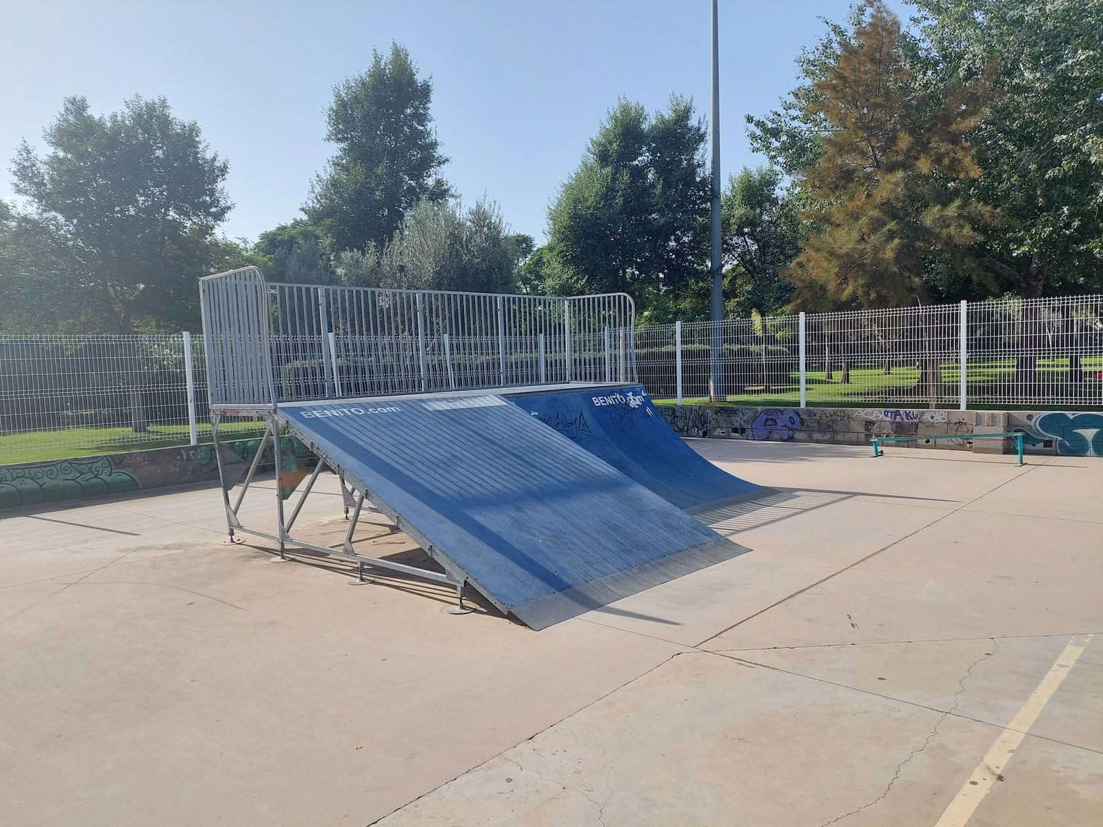 Vila Real skatepark features a miniramp and a back and forth area with the typical quarterpipe, funbox and bank setup. The skatepark has lights and a bar located at the park.