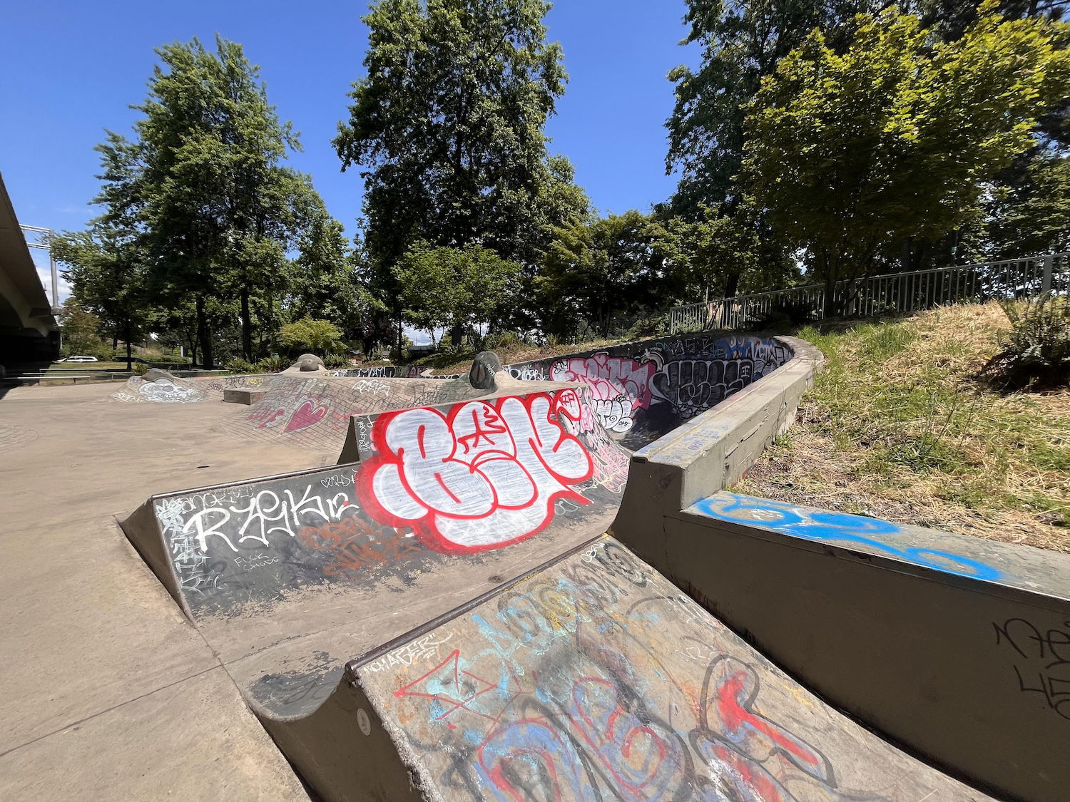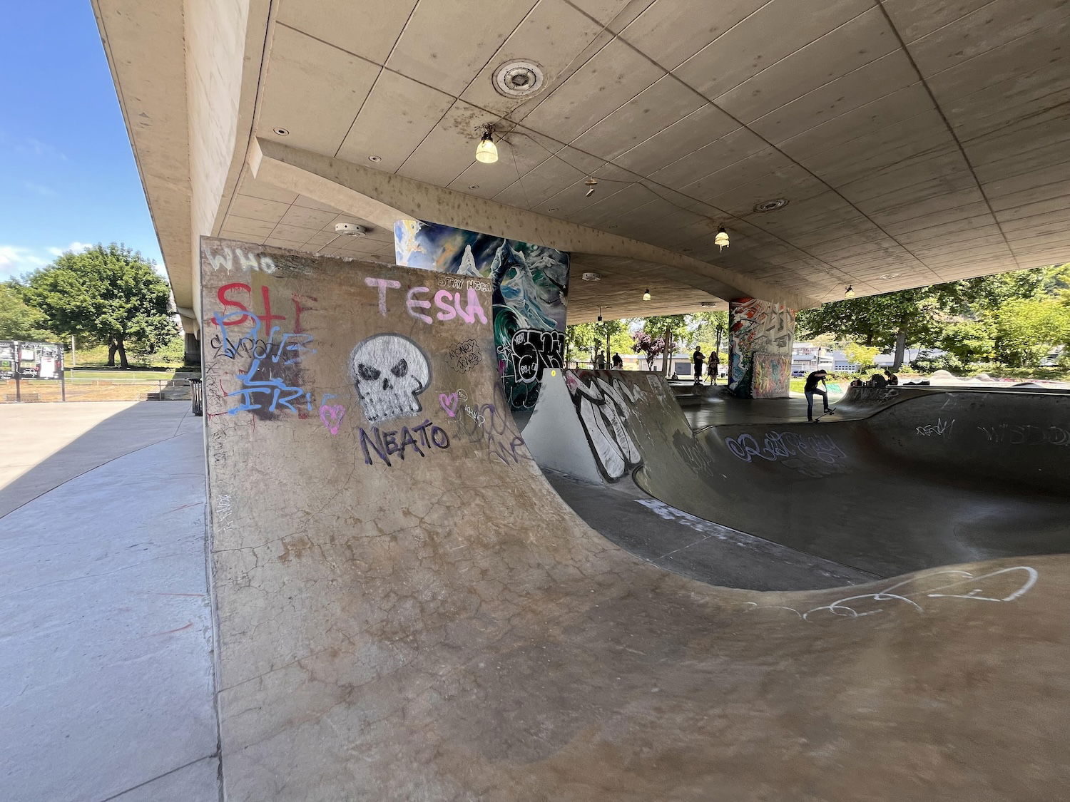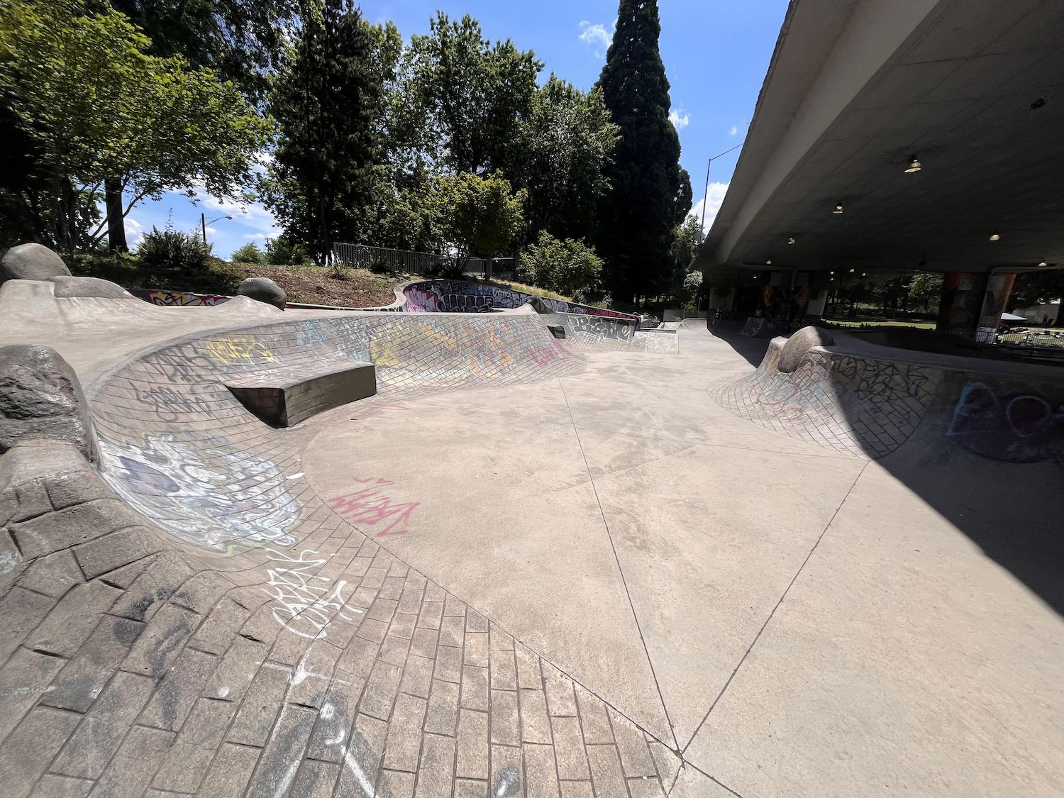 WJ Skatepark and Urban plaza is a concrete skatepark under the 105 bridge. So good place to skate on rainy days. The skatepark features a bowl and large street area. The Skatepark Project helped fund this skatepark in 2009 and the park was built by Dreamland skateparks.