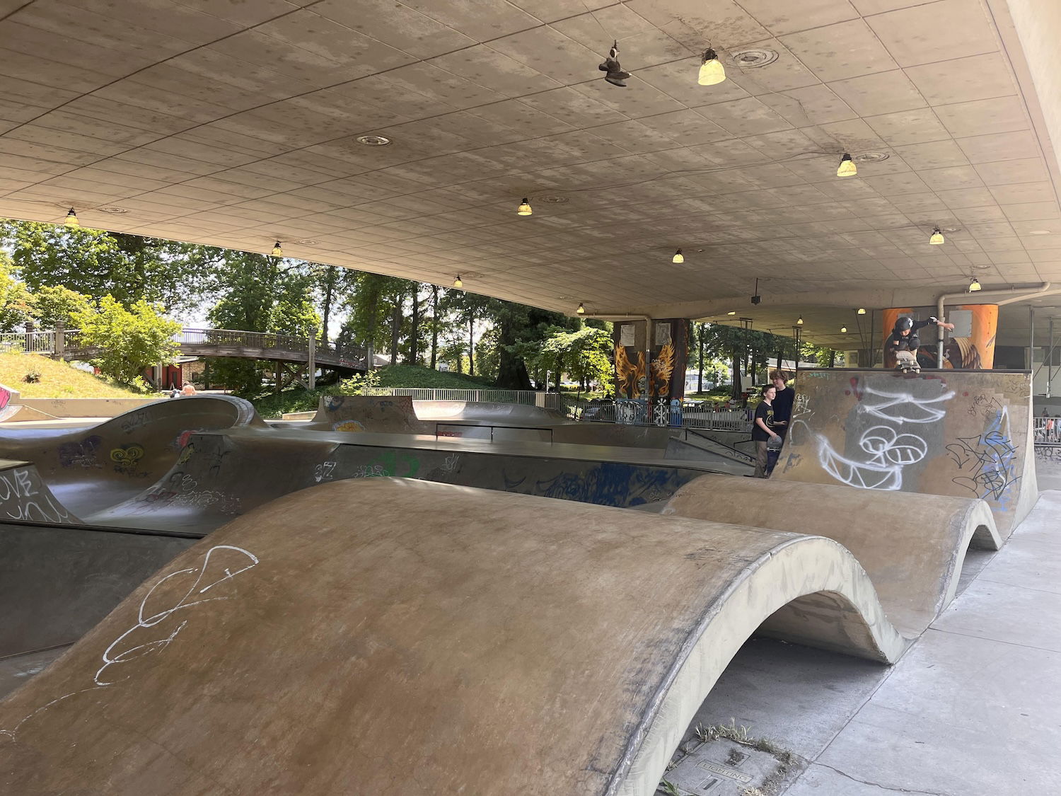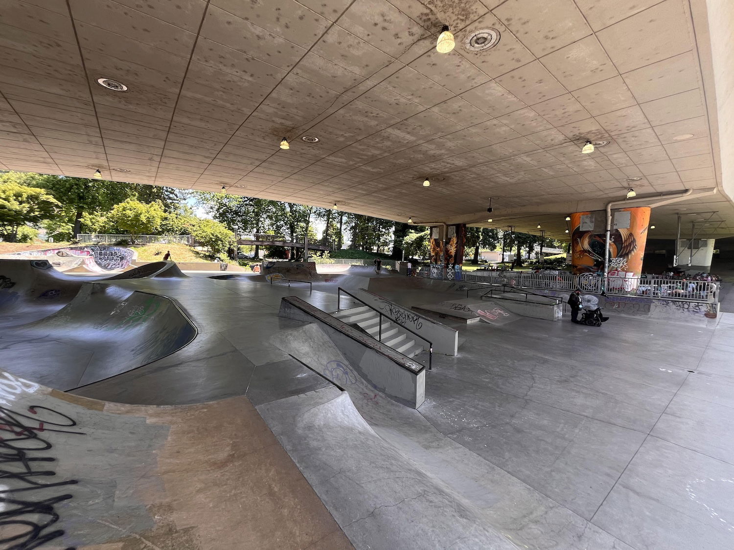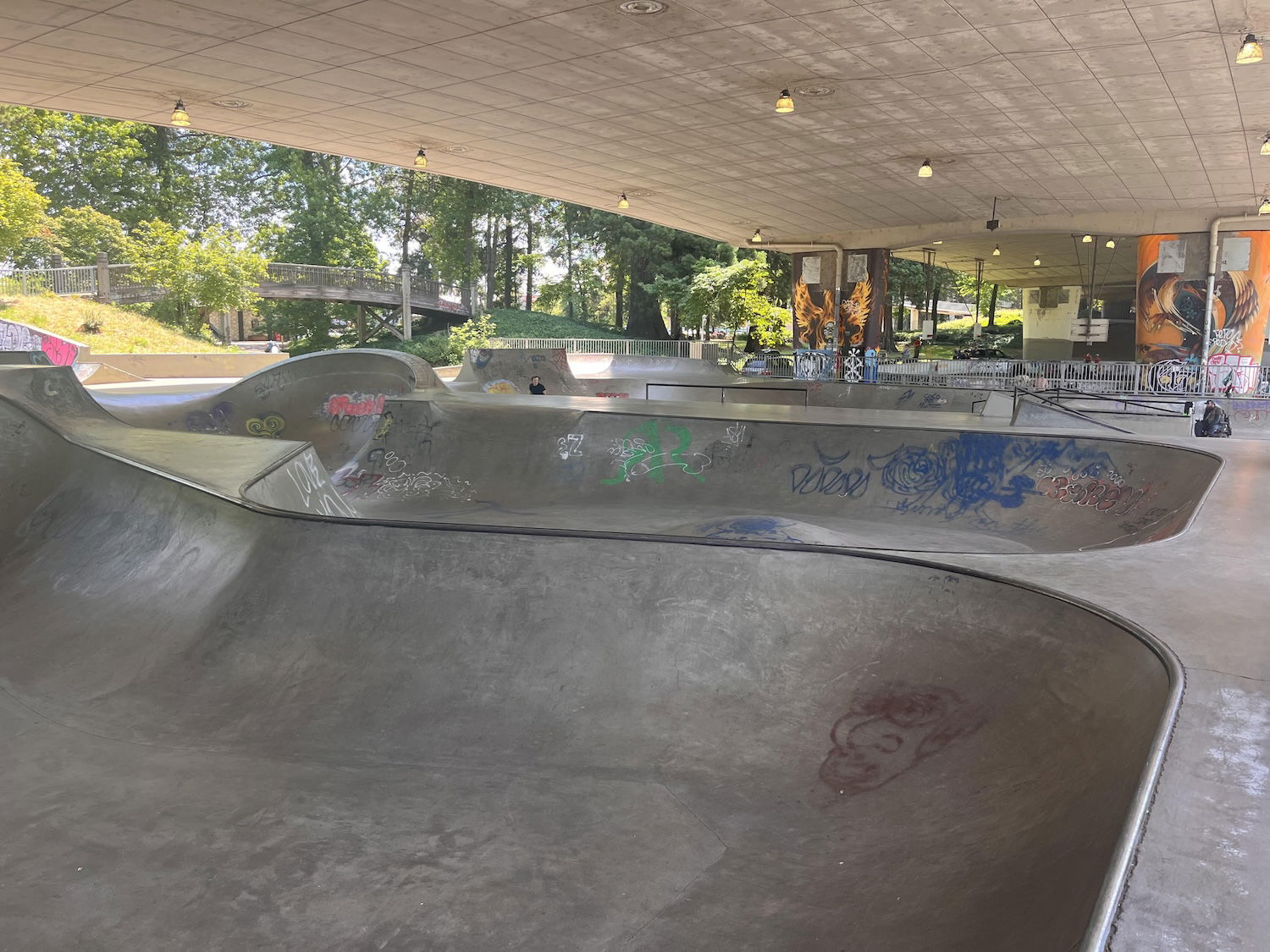 WJ Skatepark and Urban plaza is a concrete skatepark under the 105 bridge. So good place to skate on rainy days. The skatepark features a bowl and large street area. The Skatepark Project helped fund this skatepark in 2009 and the park was built by Dreamland skateparks.