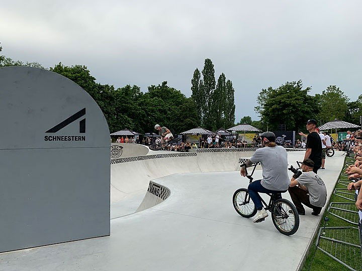 The park is primarily divided into two sections: a bowl area and a street section. The bowl is the centerpiece, with depths reaching up to 2.35 meters, featuring various elements like hips, corners, a spine with a volcano, and extensions. The bowl was designed with BMX riders in mind, but it also accommodates skateboarders and other riders. The park has been recognized for its high standards and was even one of the stops on the Vans BMX Park Pro Cup Tour in 2019, making it the first skatepark in Germany to host part of this international event.
