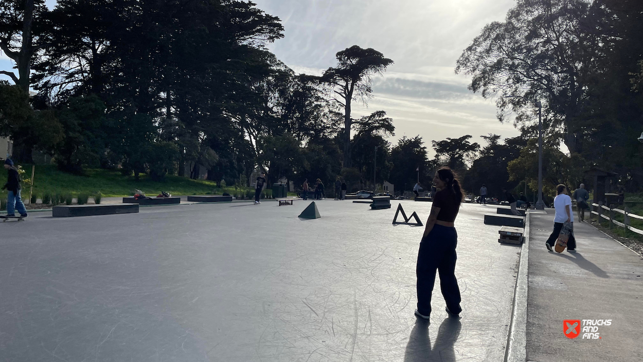 Waller Street DIY Skatepark, located at the southeast corner of Golden Gate Park in San Francisco, California, has become a key part of the city's skateboarding culture. Originally built between 2010 and 2011 by a group of local skaters using repurposed materials from other areas like Market Street, this DIY project transformed an underutilized area into a vibrant space for the skate community. Over the years, Waller Street has undergone significant updates, with a major renovation completed in 2022 funded by the city's Community Opportunity Fund. The skatepark features various street-style elements like ledges, rails, and banks, making it a popular destination for skaters of all skill levels. The design and ongoing maintenance have largely been community-driven, with local skaters and organizations such as DLX and the Friends of Waller Street contributing to its upkeep.
