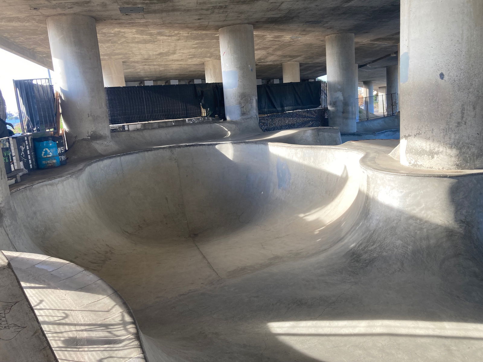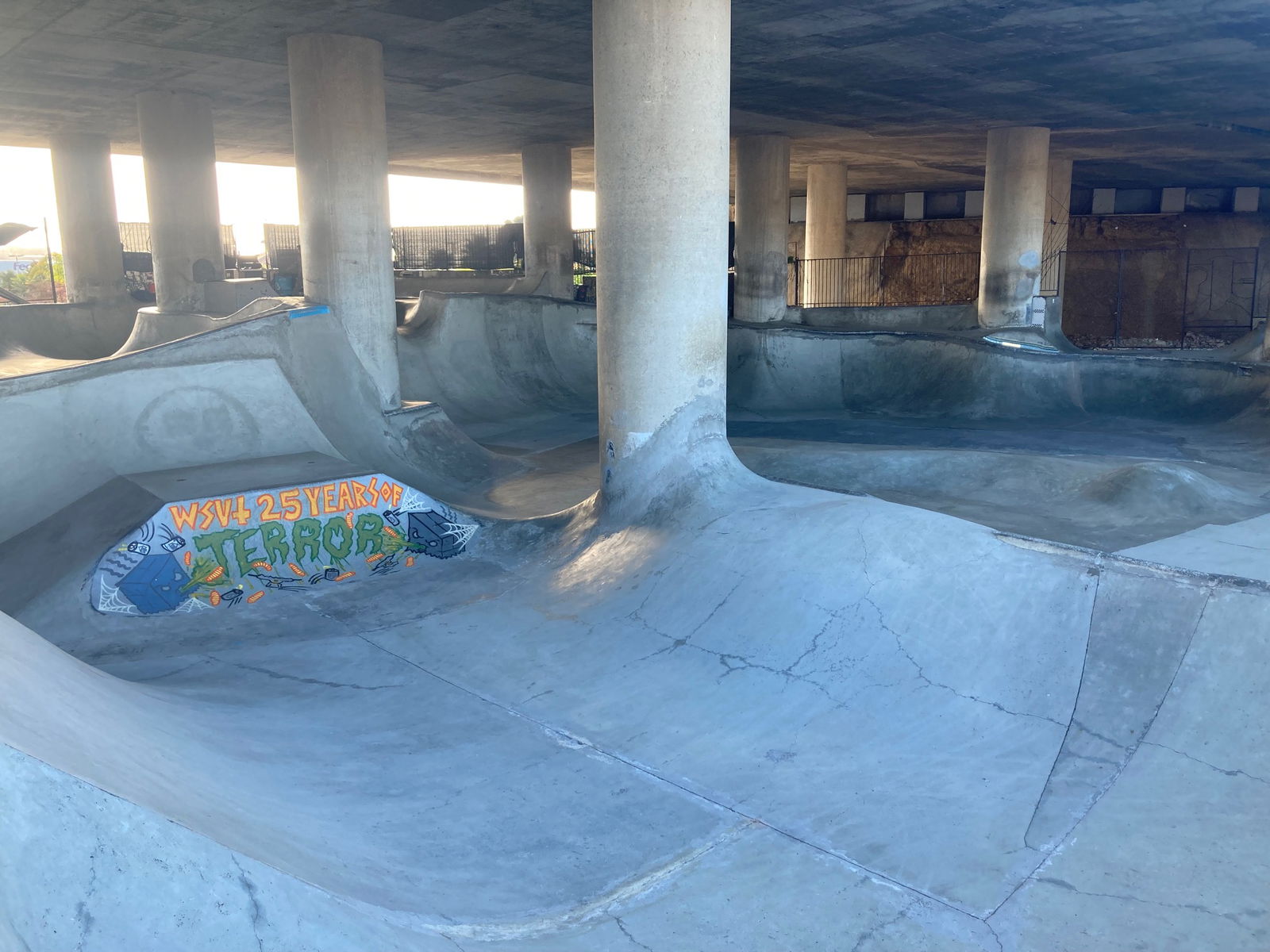 Washington Street skatepark is an old school DIY skatepark beneath an overpass featuring obstacles for more advanced skateboarders.