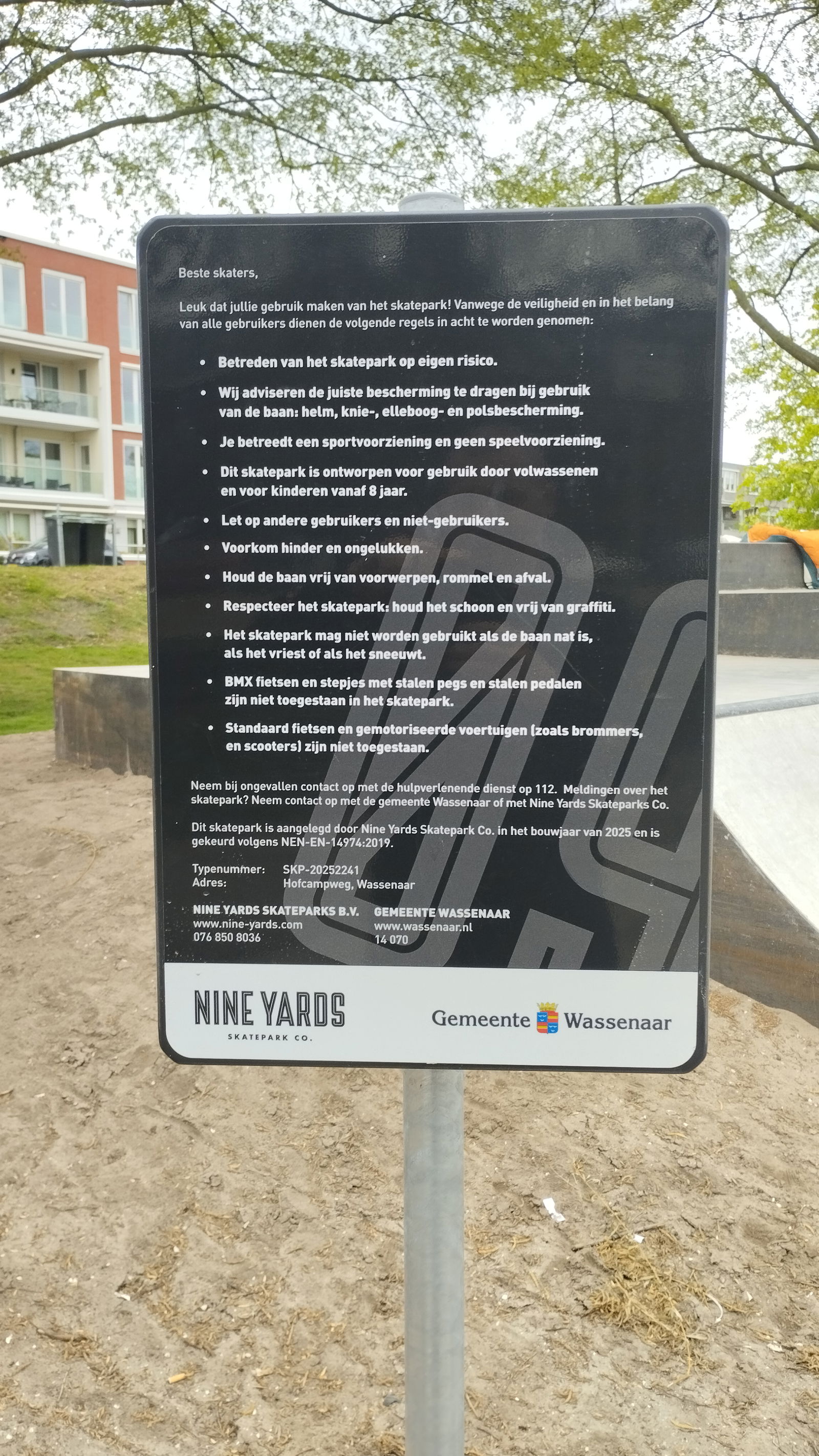 Wassenaar skatepark is a small concrete skatepark with a quarter, funbox, flatrail and manual pad. Good park to train some basic skills.