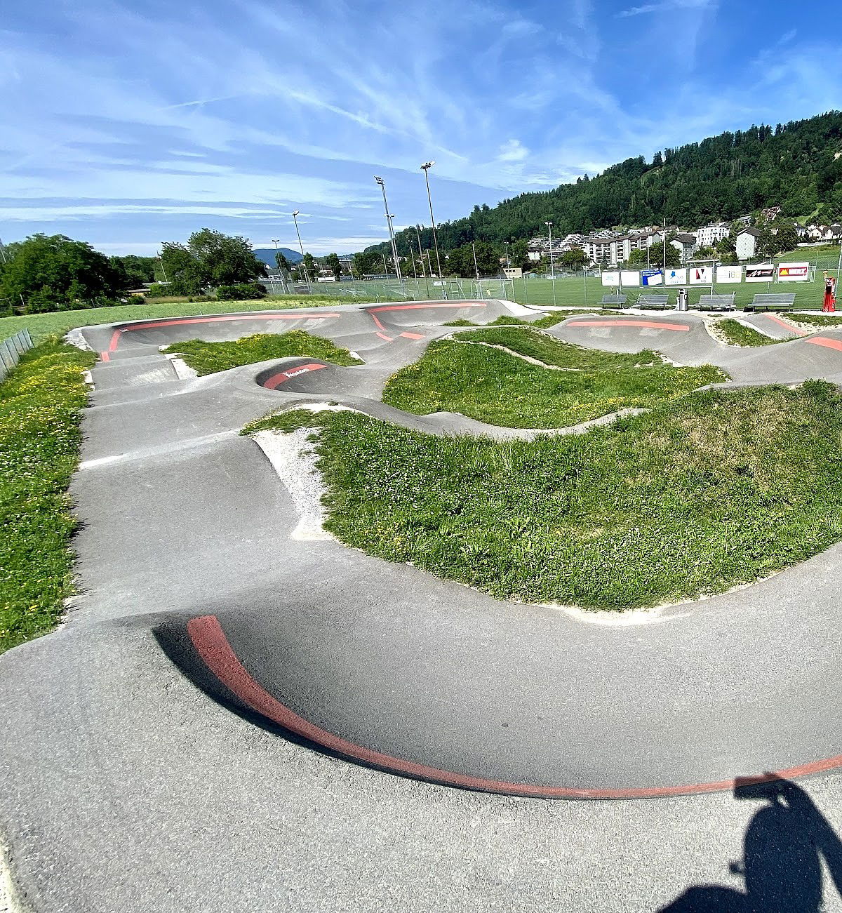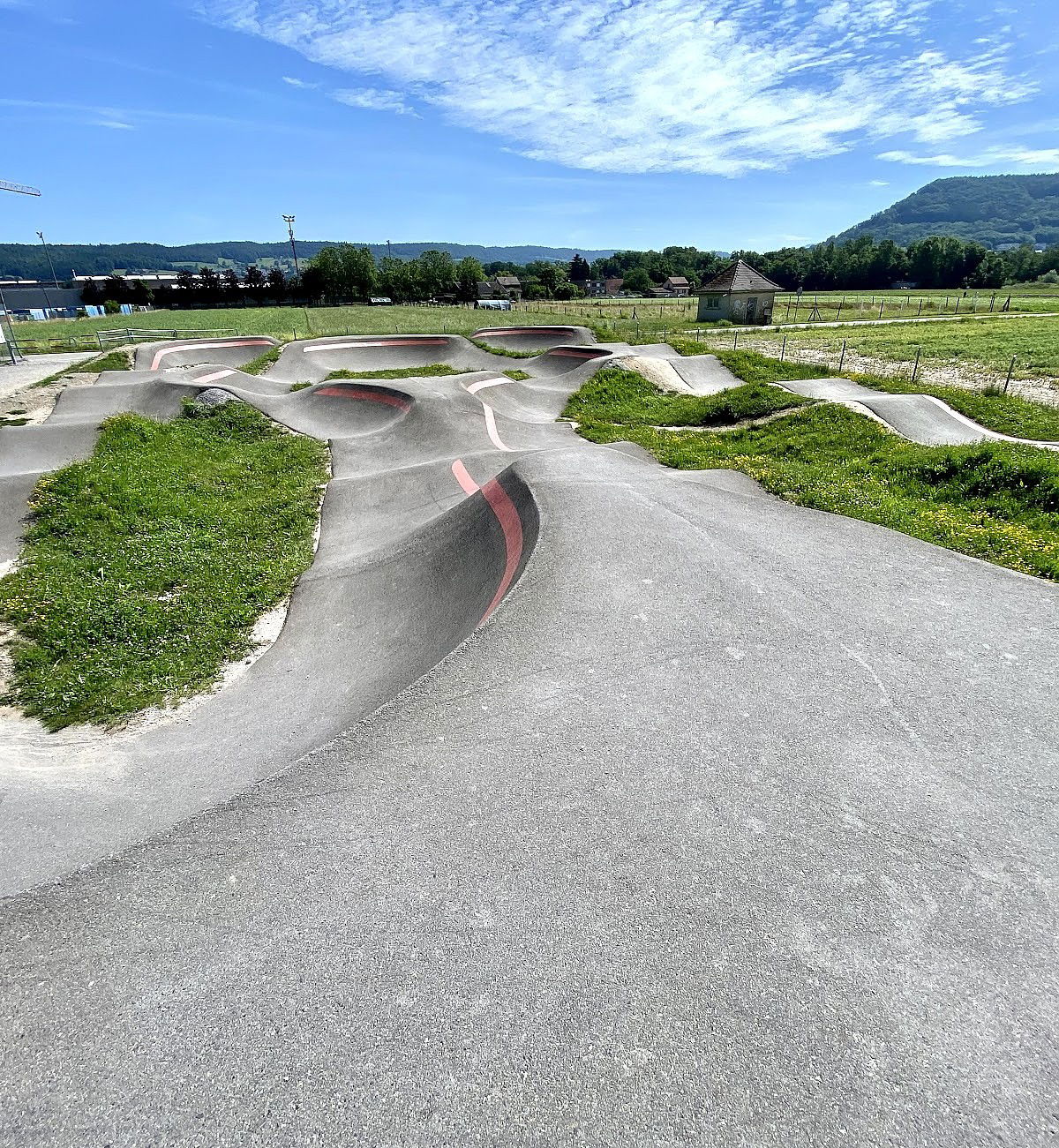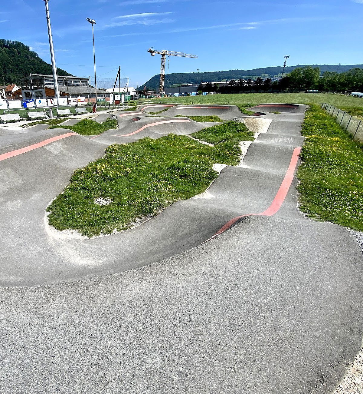 The 800m² Wasserschloss Brugg pumptrack was built by Velosolutions.