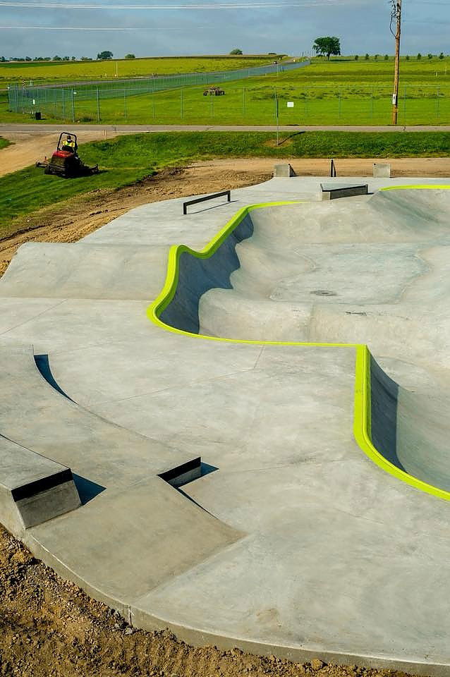 The Watertown Skatepark in South Dakota was designed and built by Evergreen Skateparks, a Portland-based company renowned for creating high-quality concrete skateparks. The park was completed in 2017.