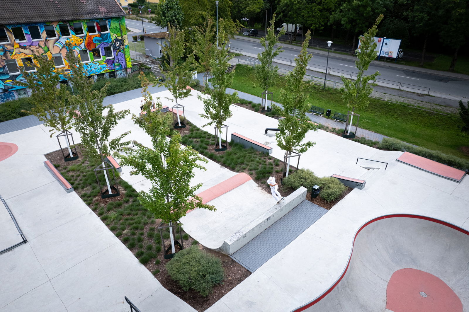 Weiden skatepark is a 850 M² concrete park made up of a bowl and street section, built in 2021. Betonlandschaften was responsible for the design of the park and IOSkateparks for the construction of the park.