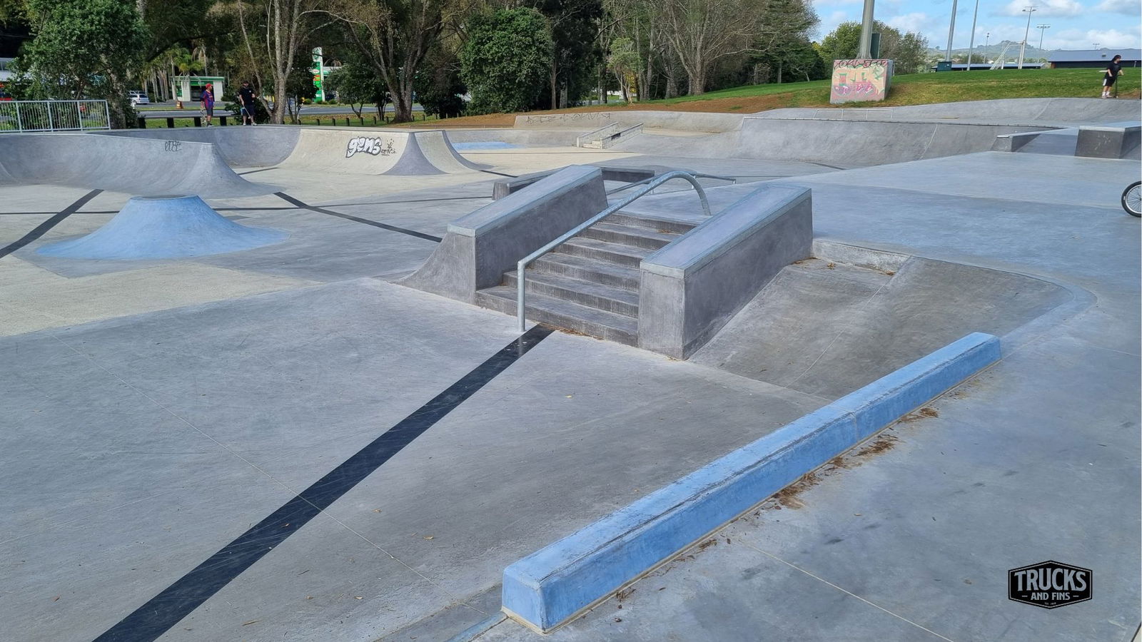 Whangarei skatepark is a concrete transition focused park with several street obstacles, designed by Rich Landscapes.
