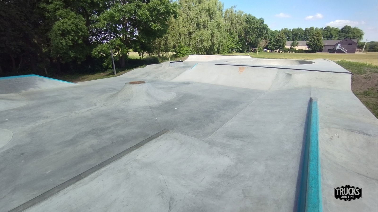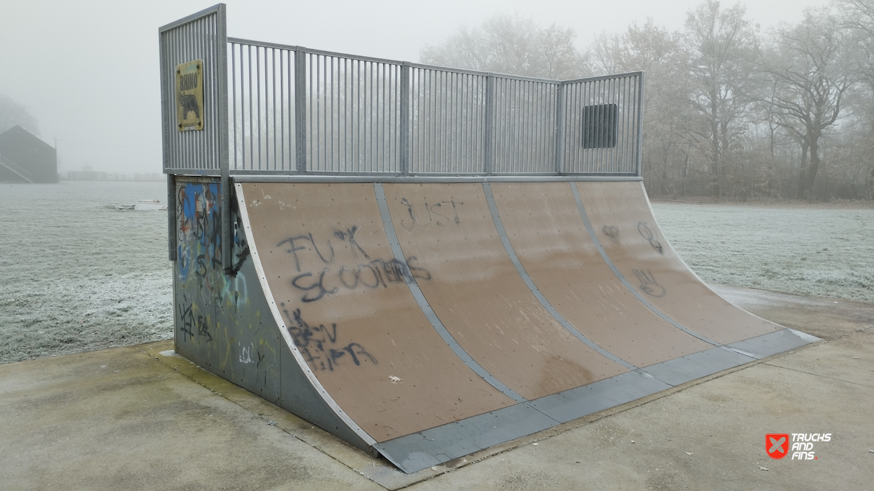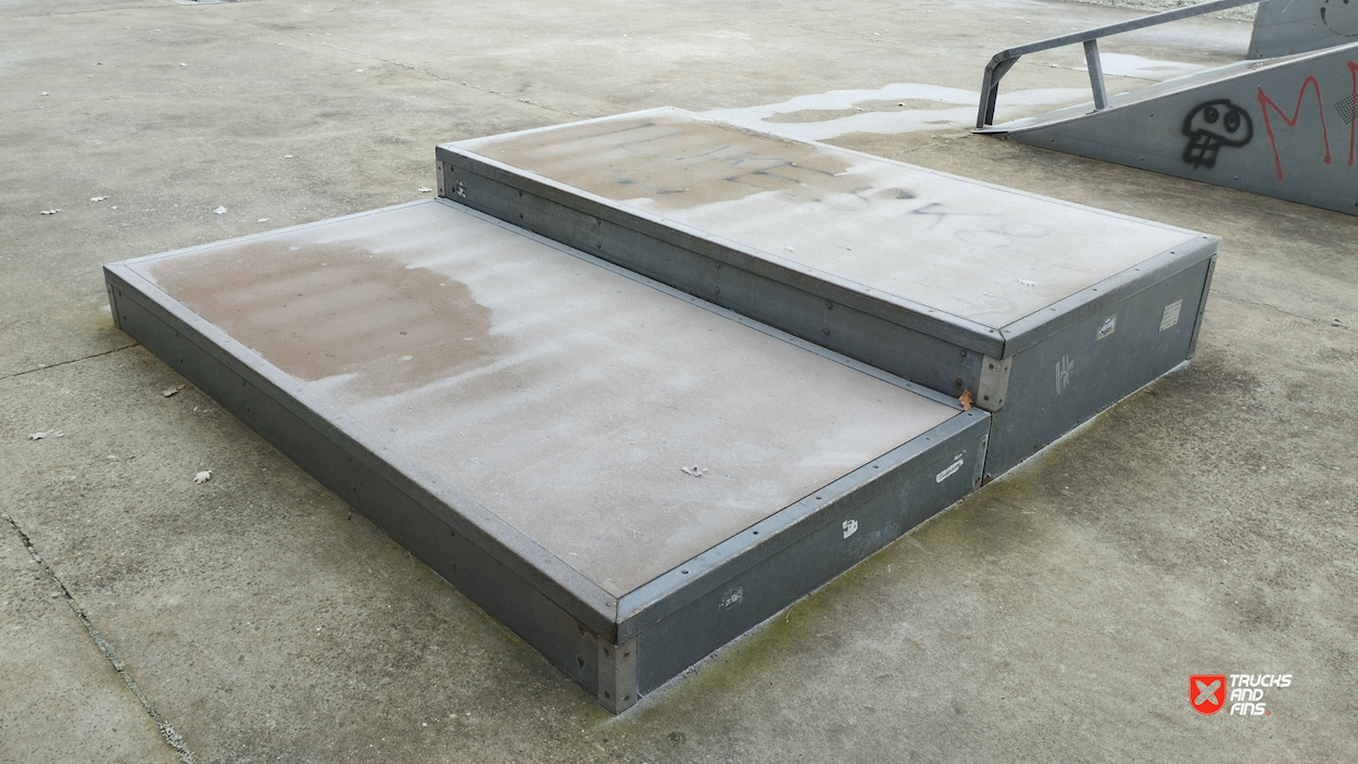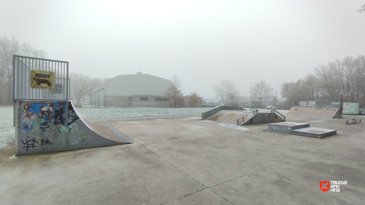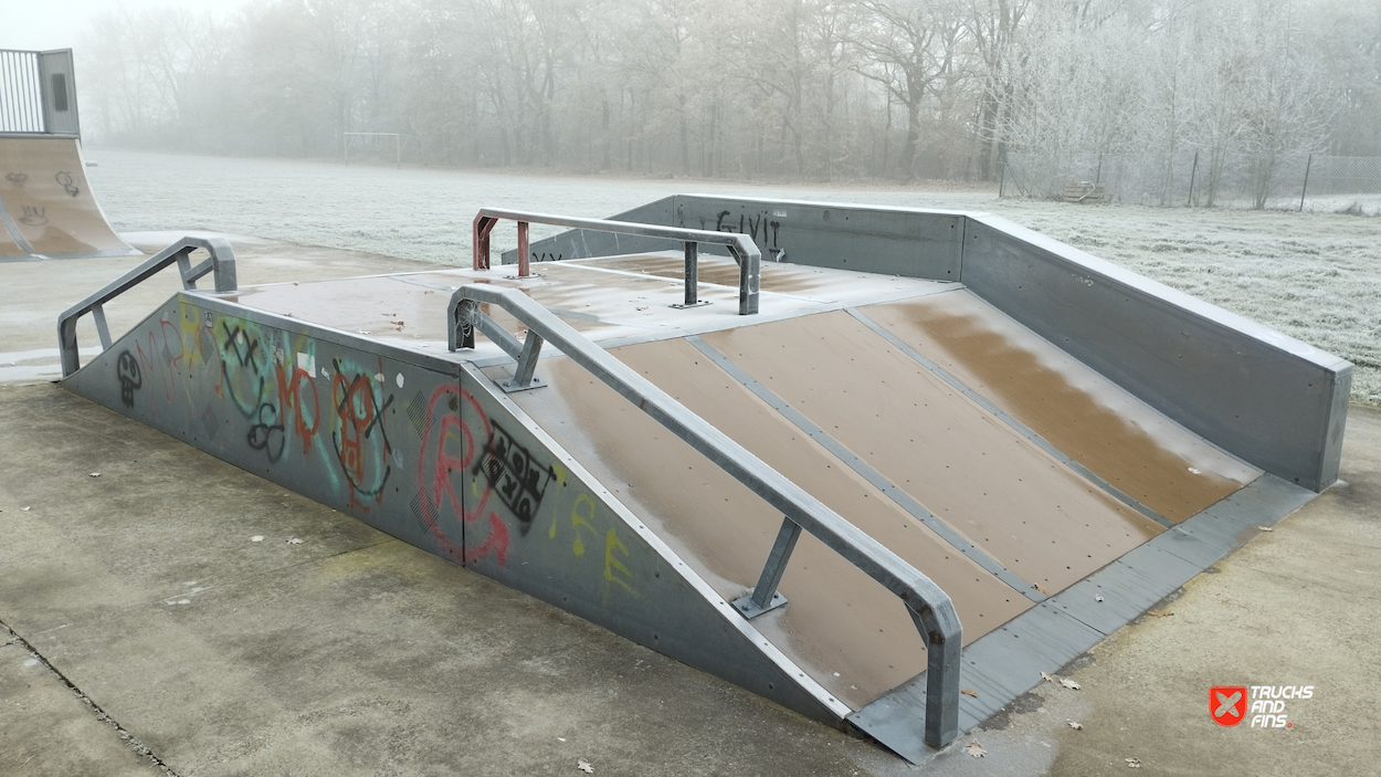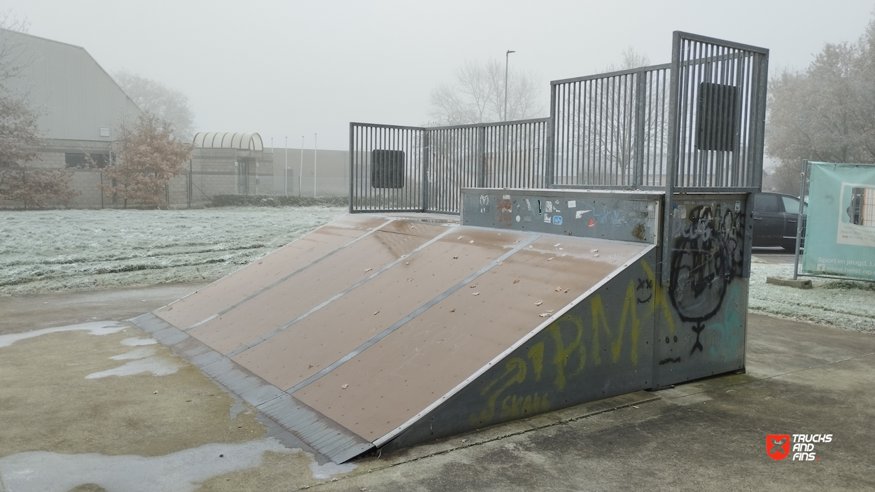 Wiekevorst skatepark was made up of a back and forth run with a quarter pipe and flat bank on the sides of a funbox. The skatepark was replaced with an updated concrete park. The skatepark is located next to the Sporthal De Wimpel sports complex.