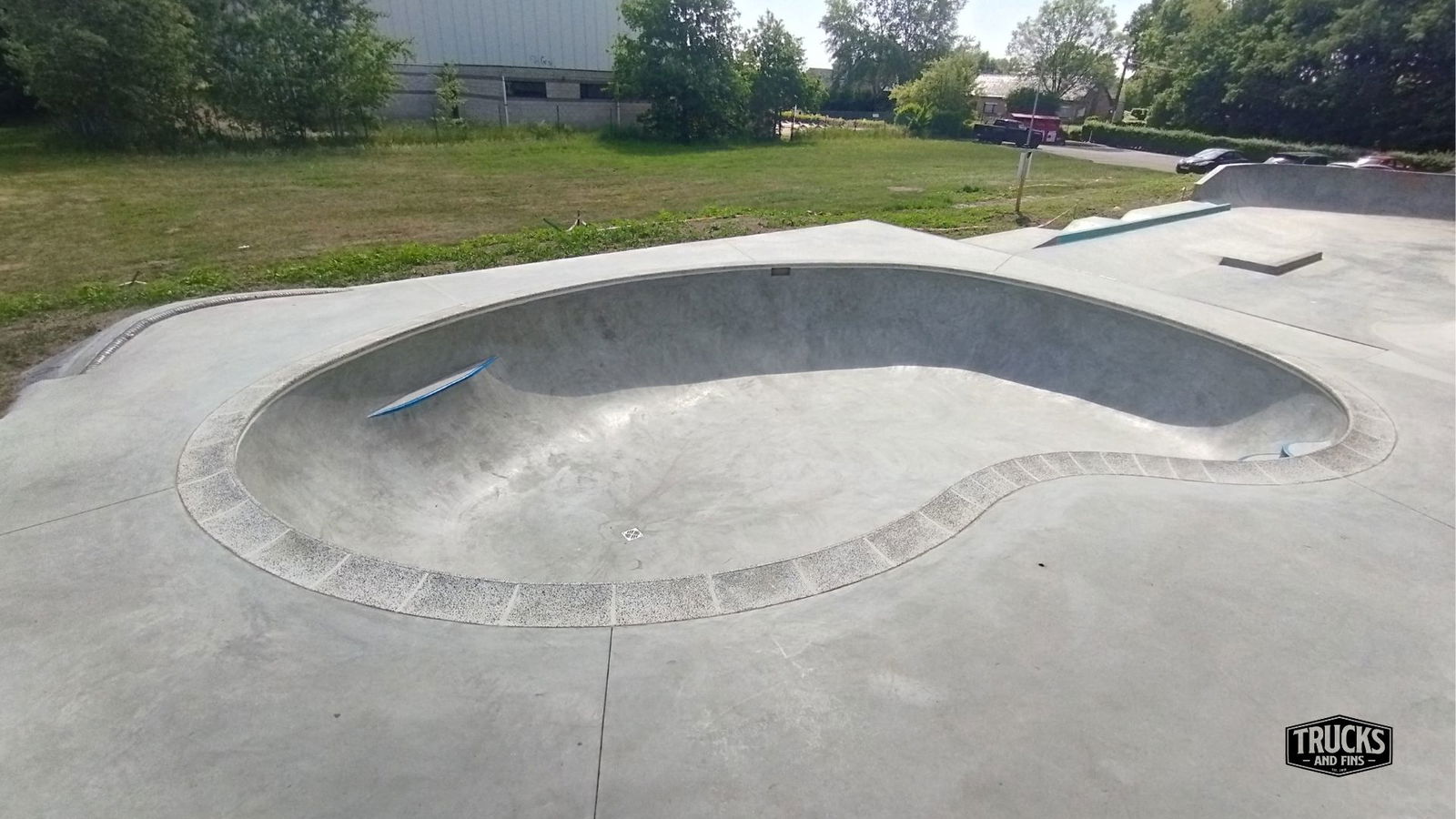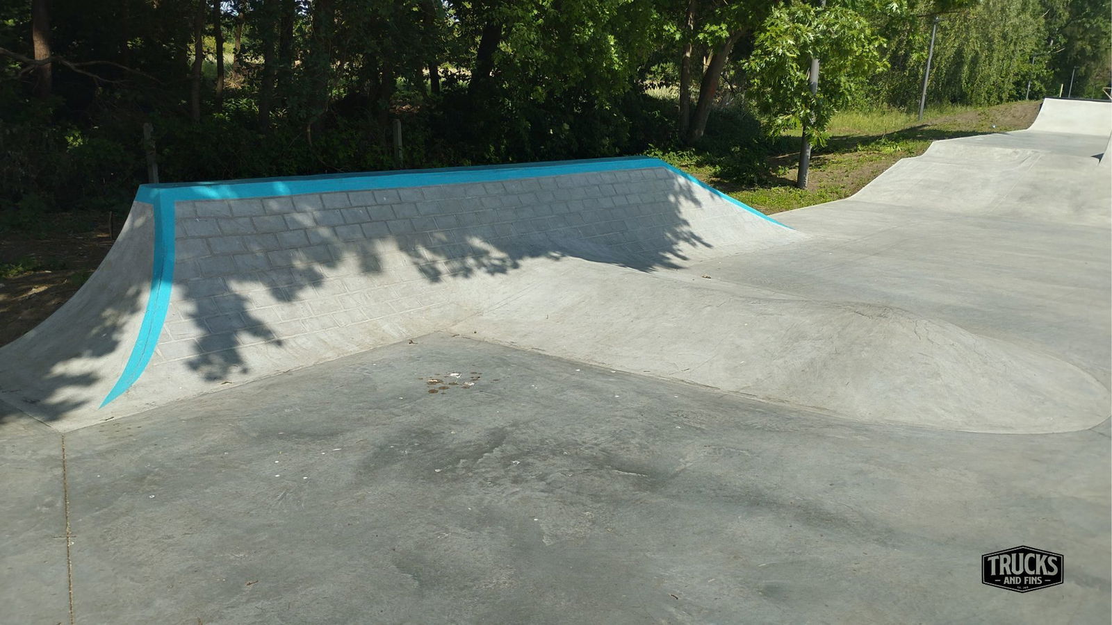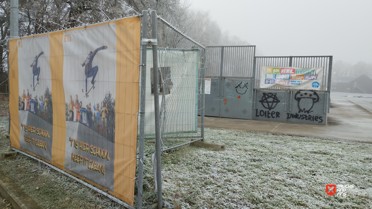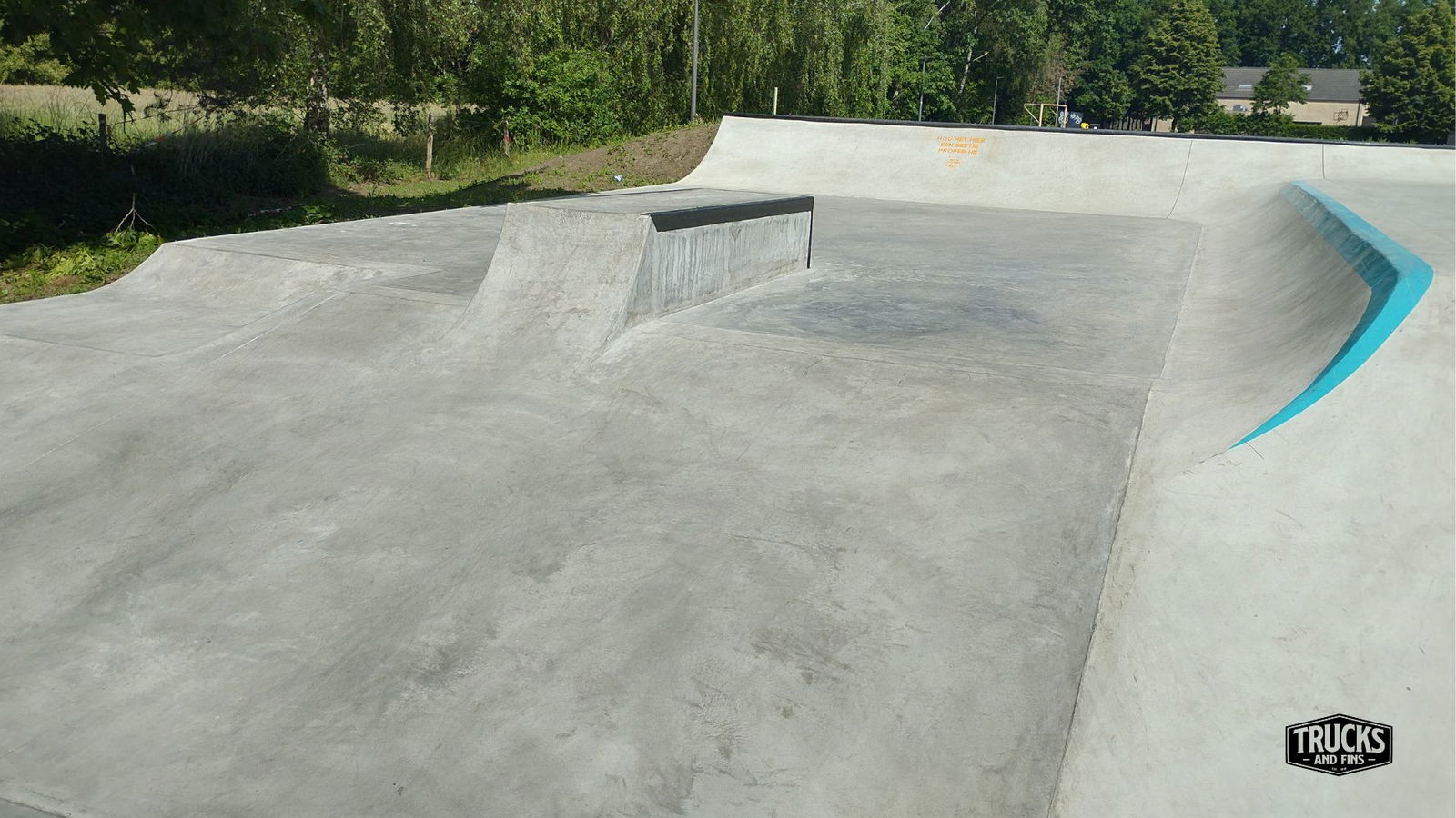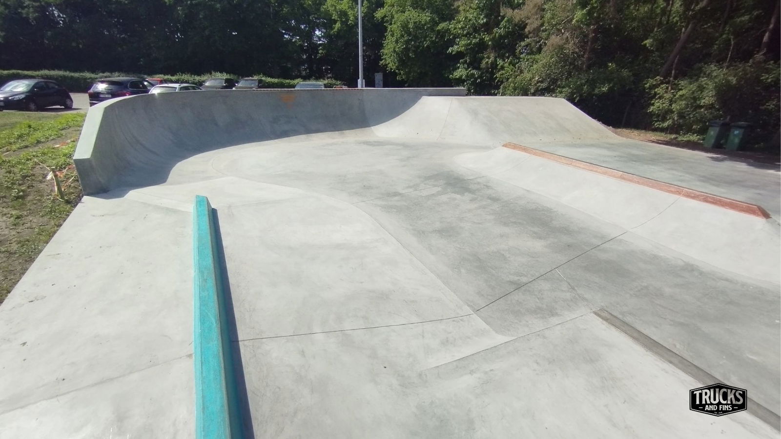Wiekevorst skatepark was made up of a back and forth run with a quarter pipe and flat bank on the sides of a funbox. The skatepark was replaced with an updated concrete park. The skatepark is located next to the Sporthal De Wimpel sports complex.