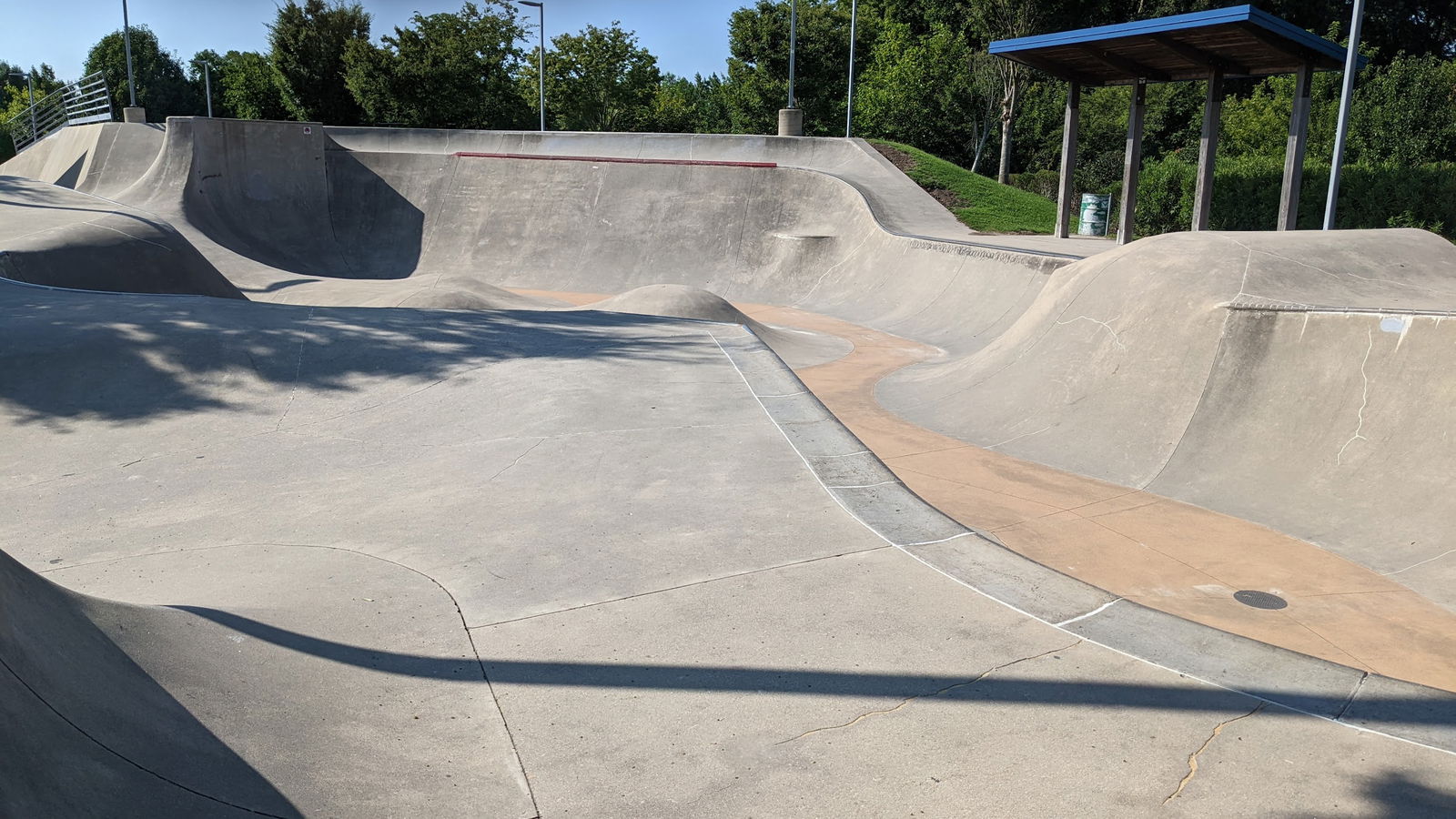 Williams Farm skatepark is a large concrete park featuring several bowls and a street focused area. The skatepark was built by Teampain skateparks.