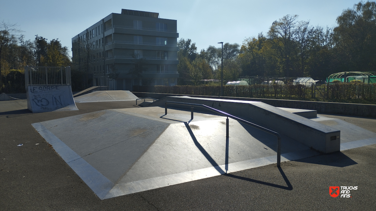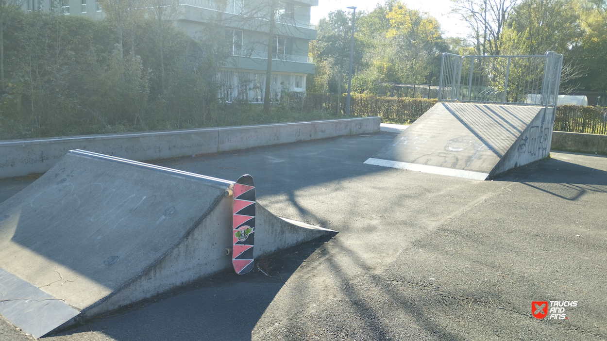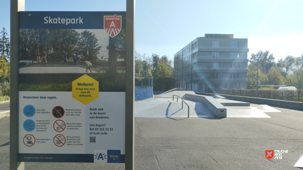 Wilrijk skatepark is a metal and concrete skatepark, built by Concrete Rudolph. The skatepark is made up of a back and forth run with a quarter pipe and flat bank on either side of a funbox. The skatepark also features several ledges and manualpads.