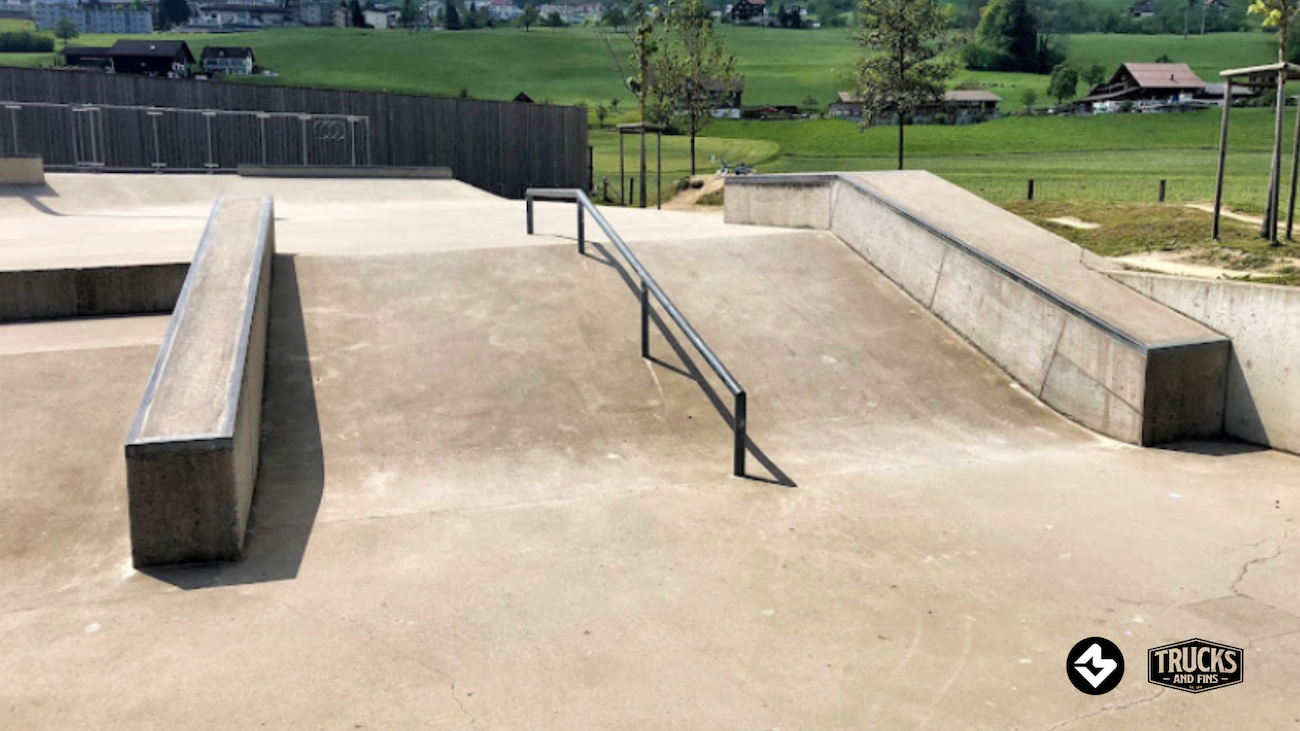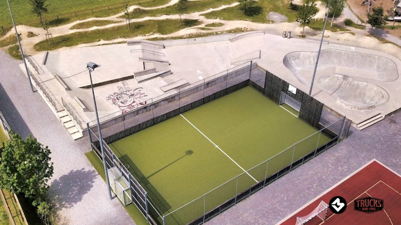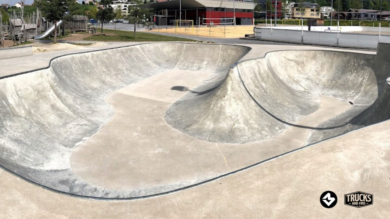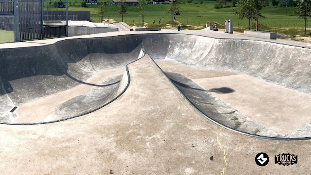 The concrete skate park is located directly in the freely accessible Erlenmoos amusement park. It is around 700m² in size and has, among other things, a bowl and a street park.