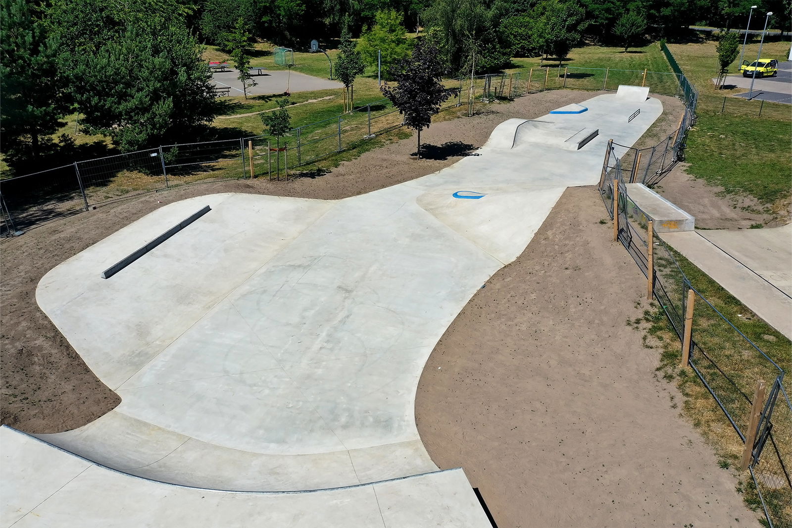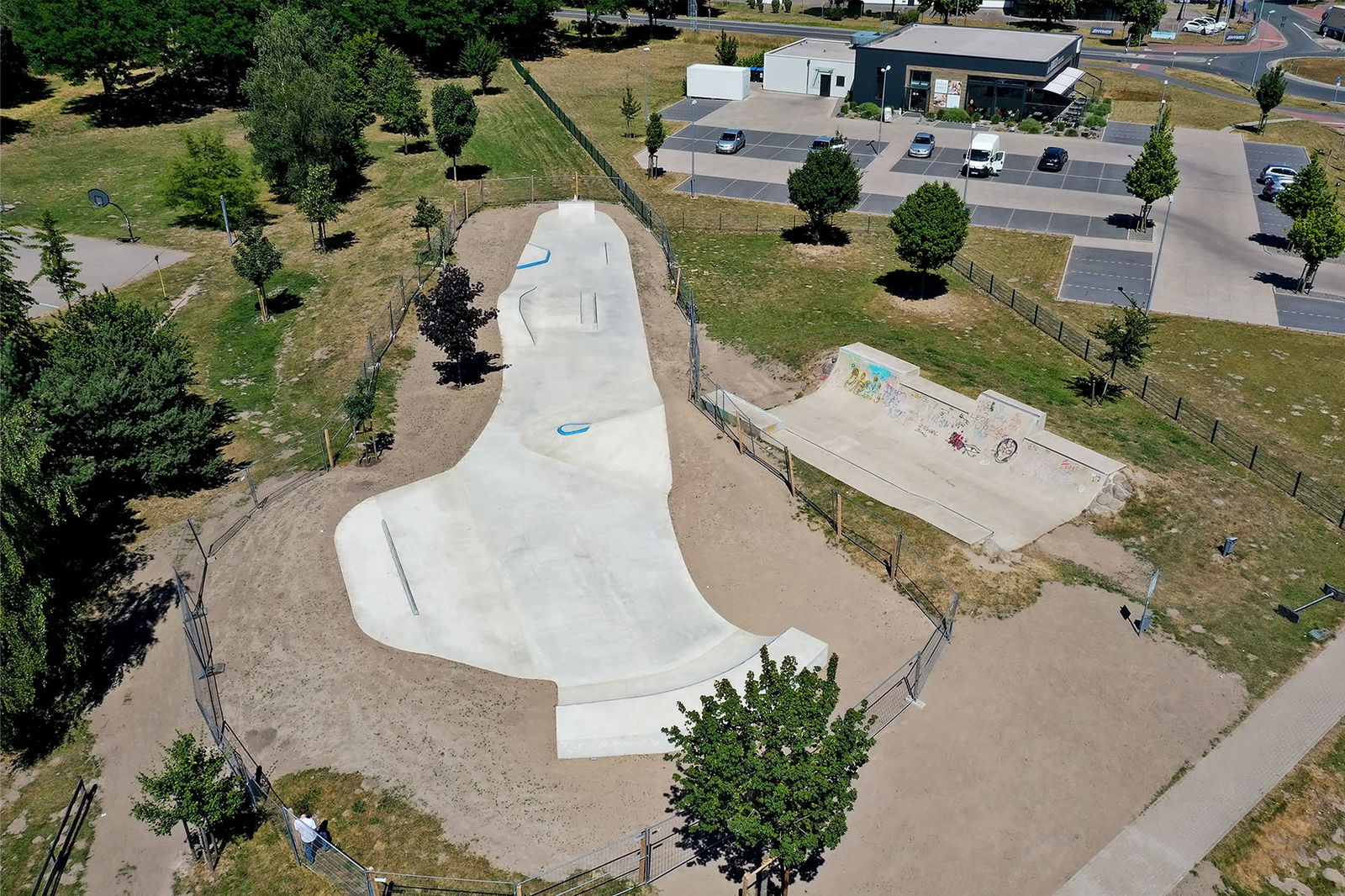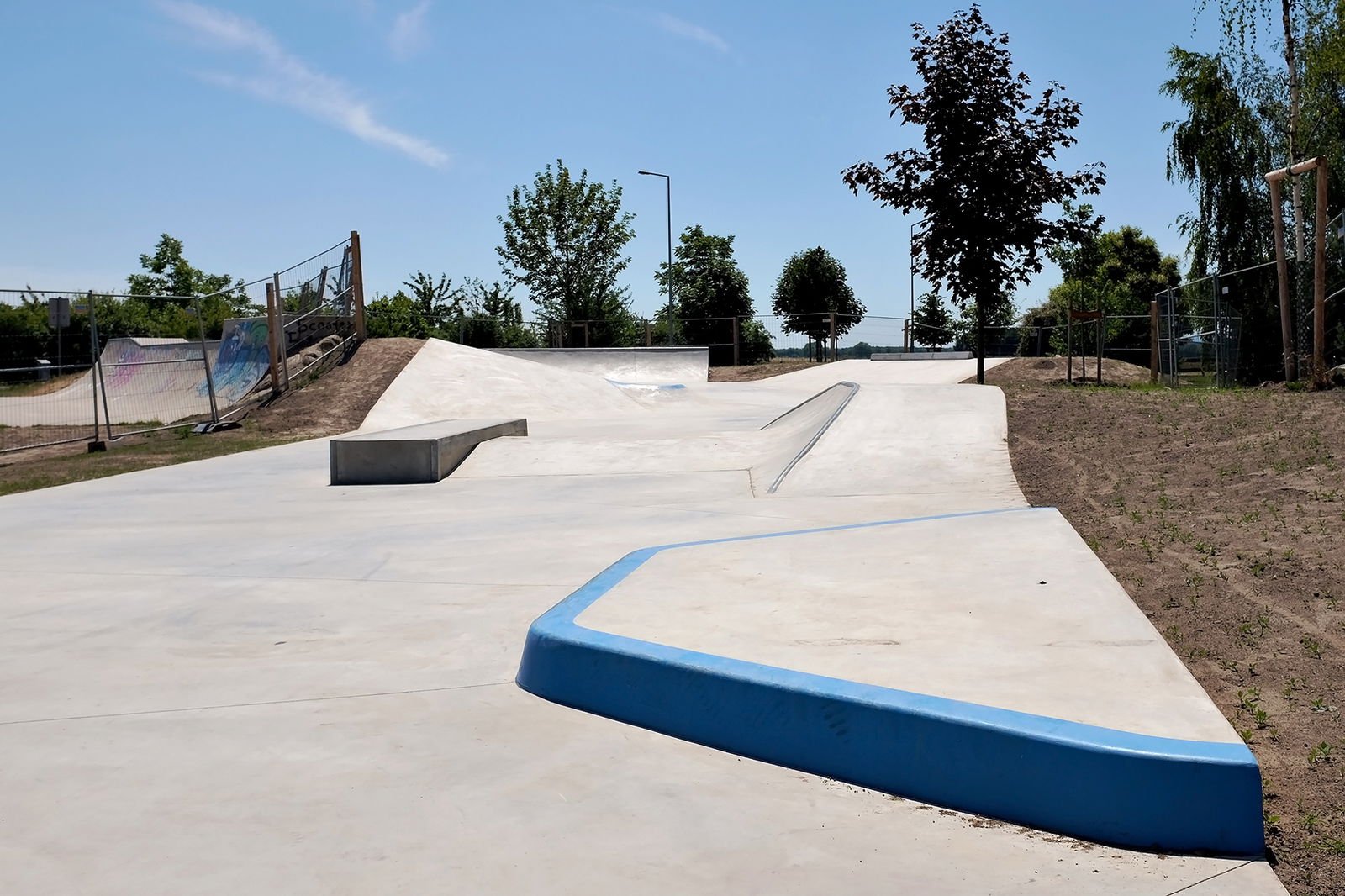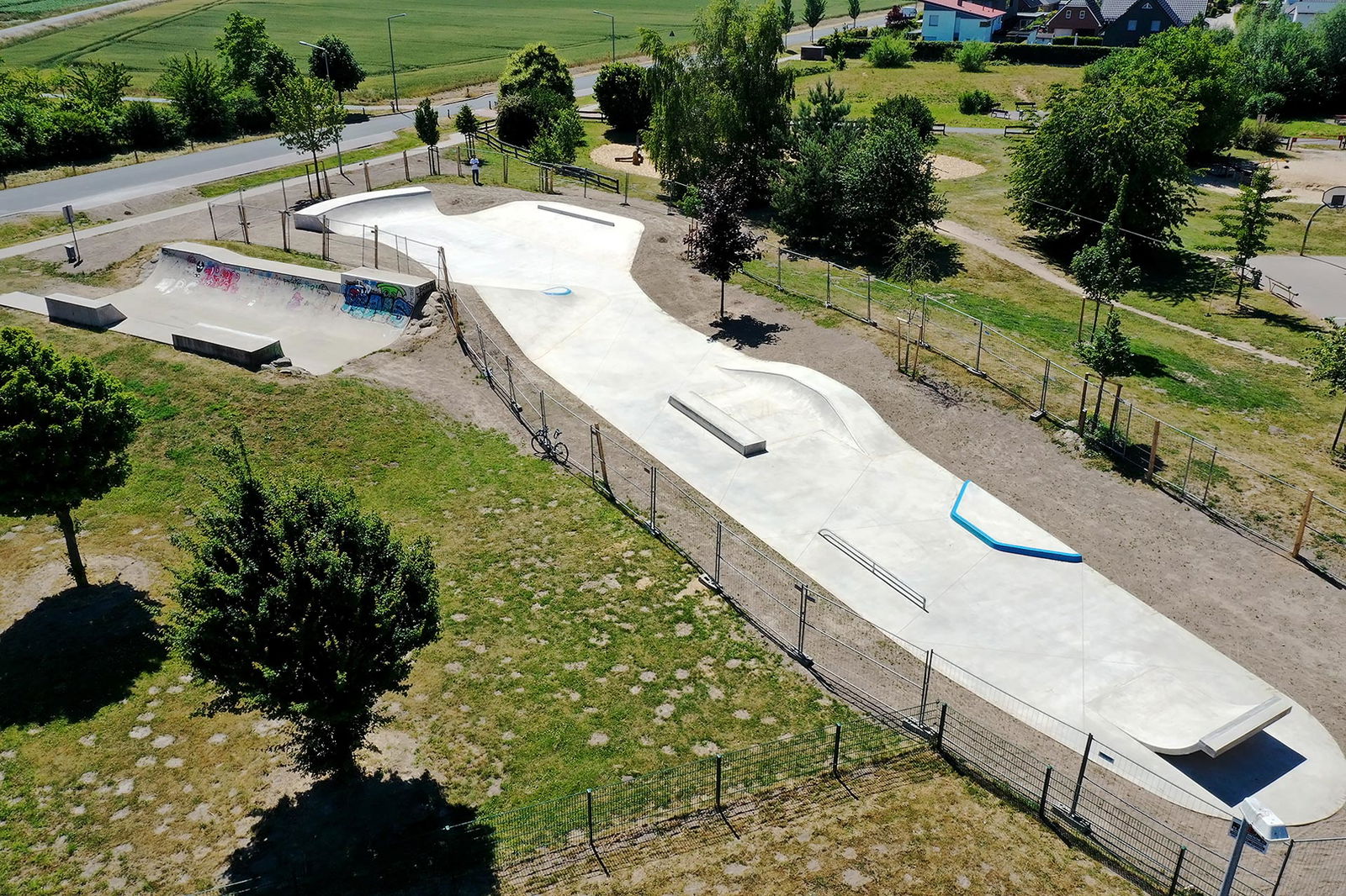 Wunstorf skatepark is a concrete park featuring a miniramp with two different transition heights plus a bank extension. Built in 2015 by Yamato Living Ramps. Yamato extended the park with a small street section in 2022.