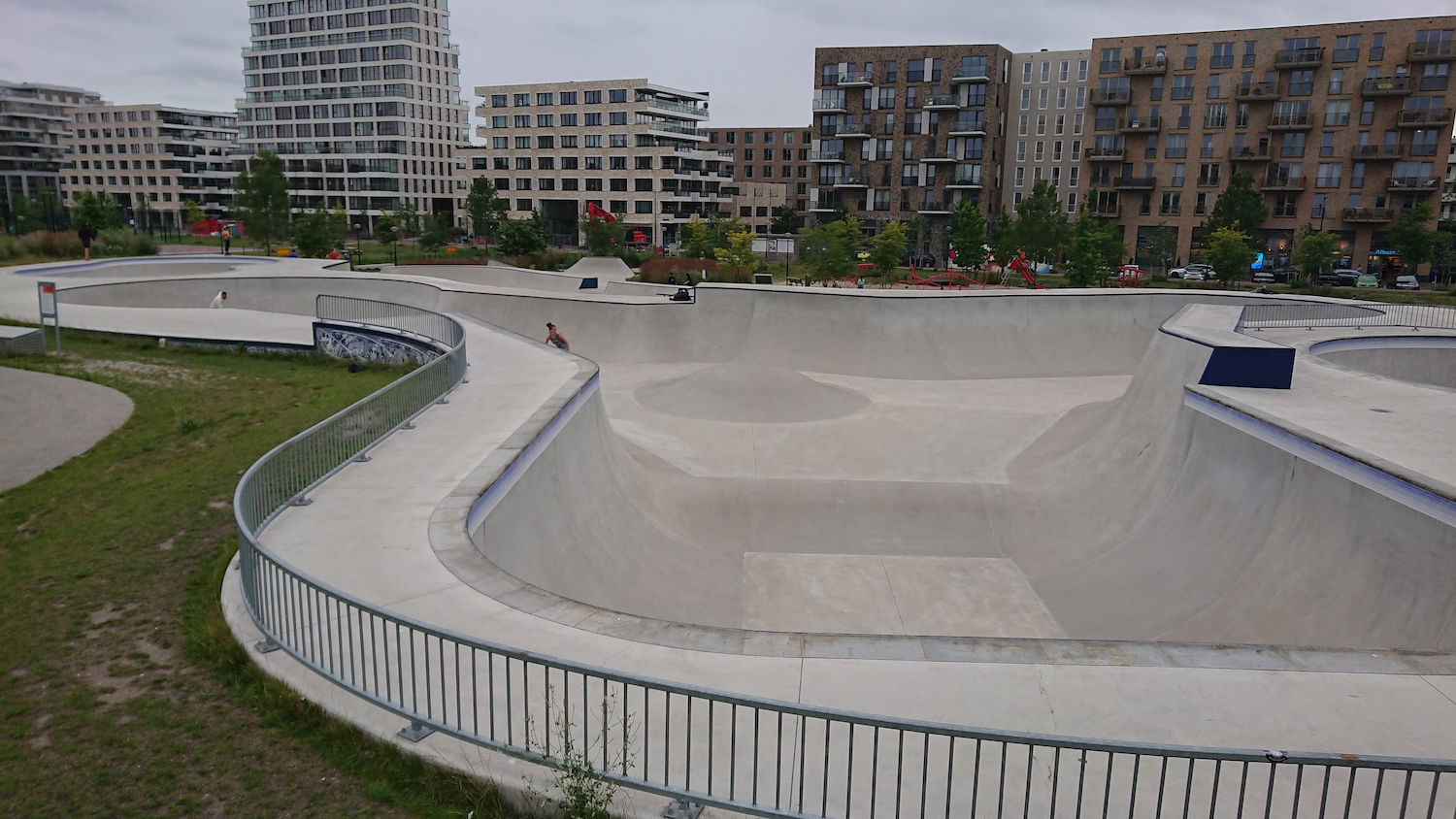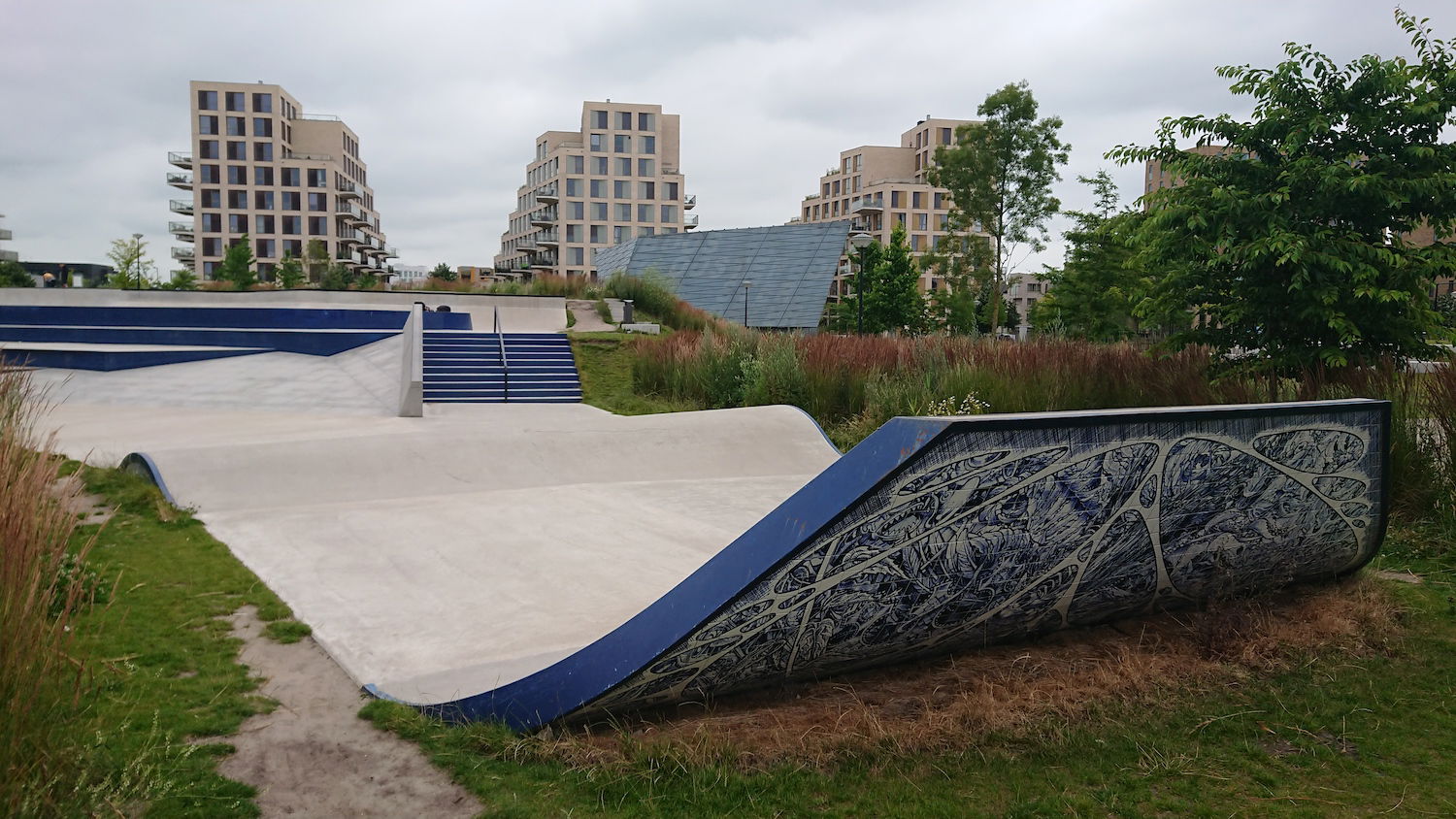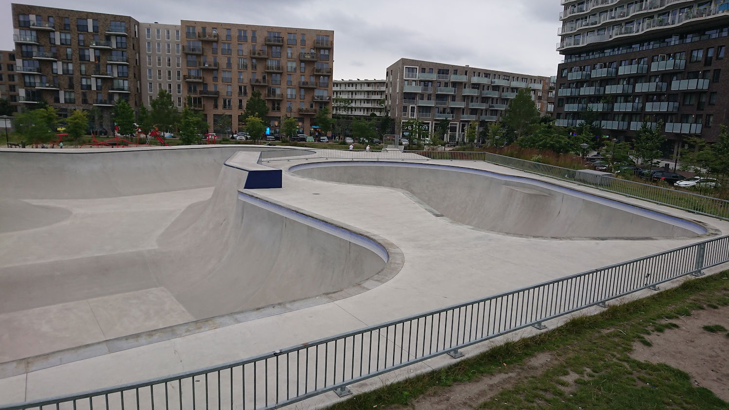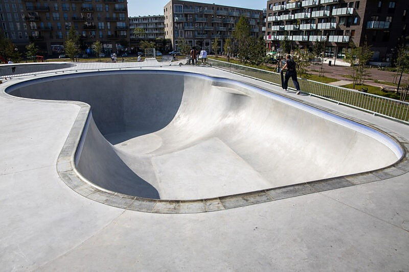The Zeeburg Skatepark on Zeeburgereiland, Amsterdam, is the largest concrete skatepark in the Netherlands, covering approximately 3,850 square meters. Officially opened on June 19, 2020, the park was designed by Glifberg & Lykke, a renowned architectural firm specializing in skateparks, and constructed by SkateOn Skateparks. The park is part of the Urban Sports Zone development and was funded by the Municipality of Amsterdam as part of a broader initiative to integrate recreational spaces into new residential areas like the Sportheldenbuurt.