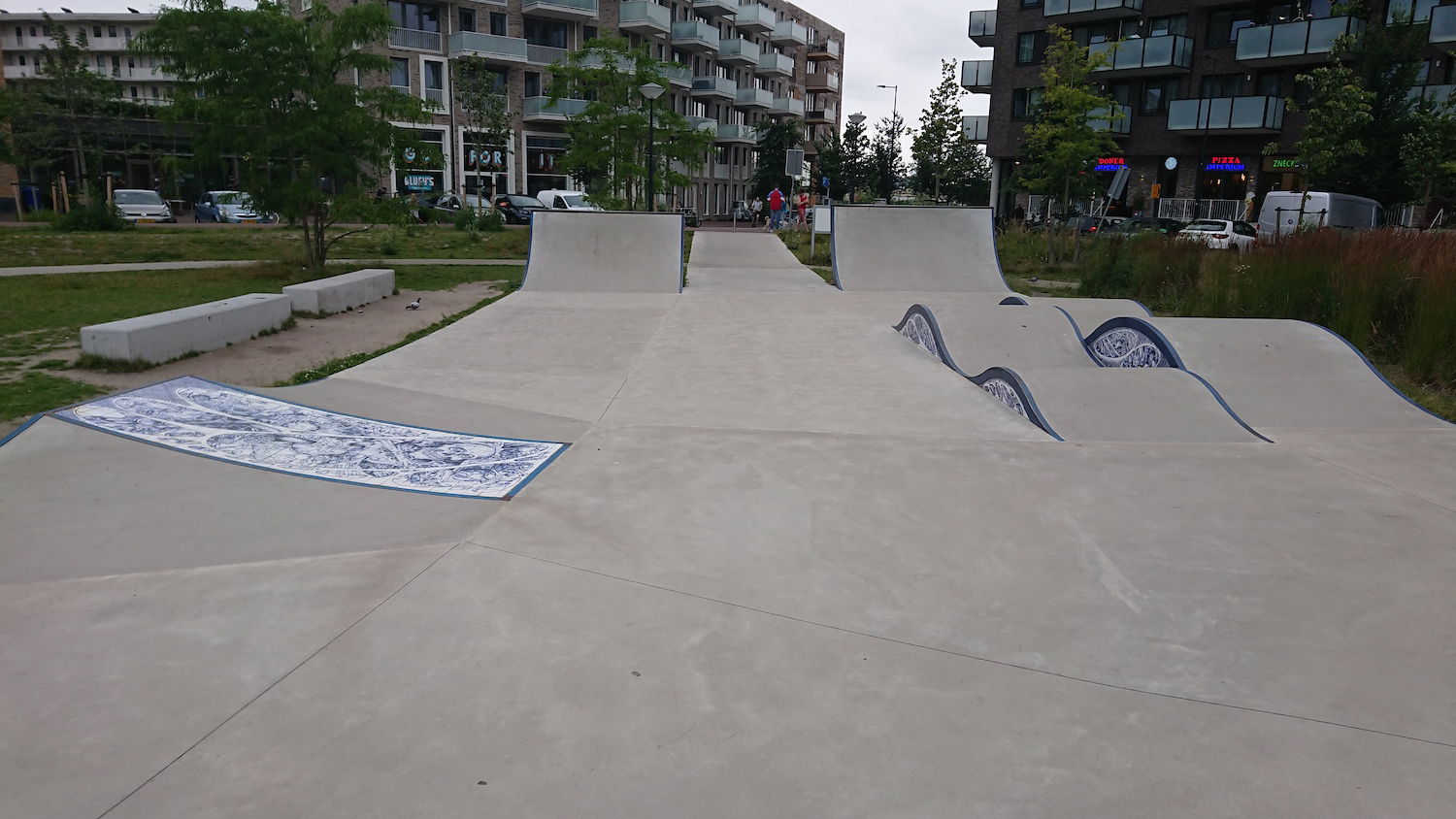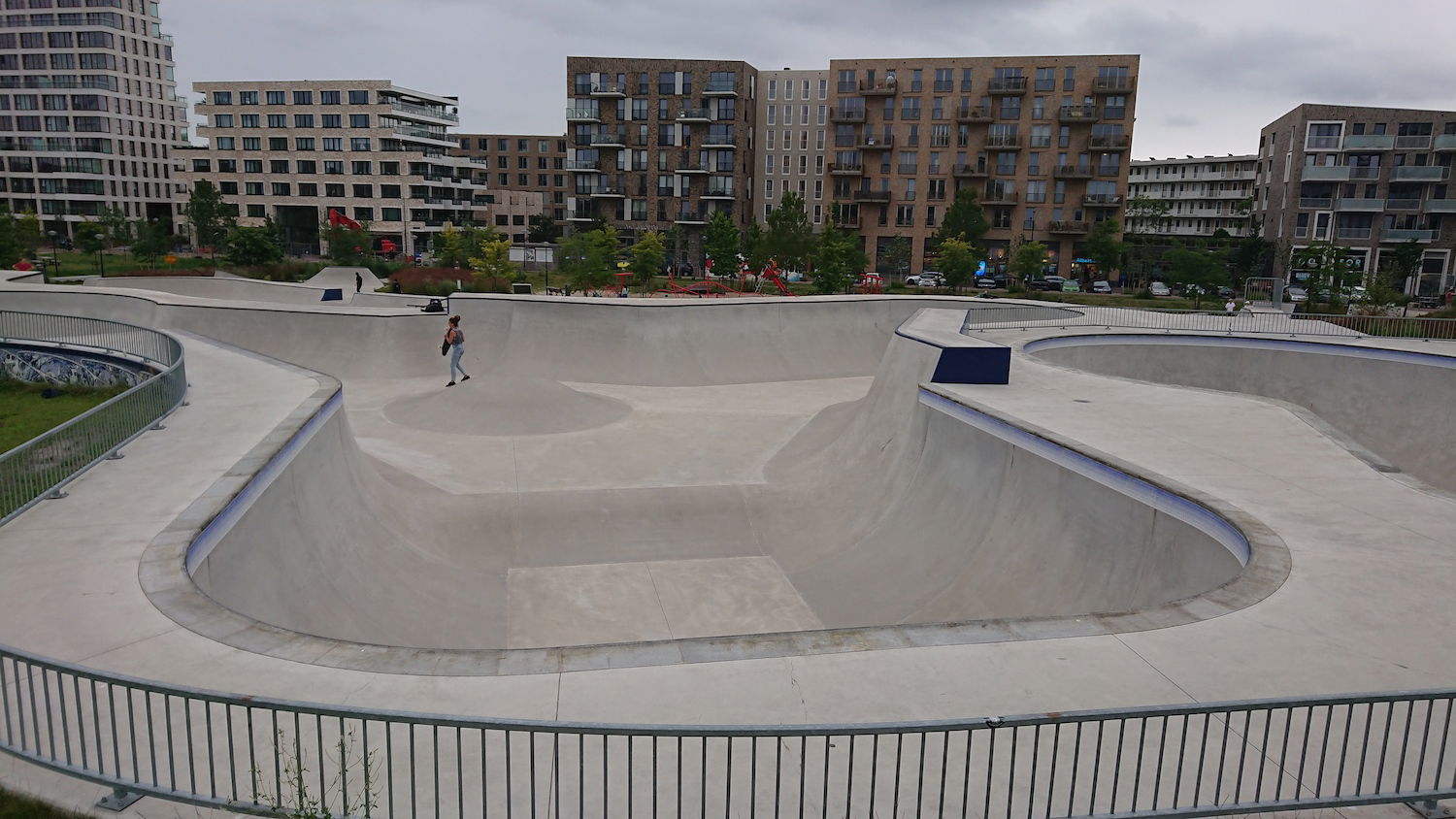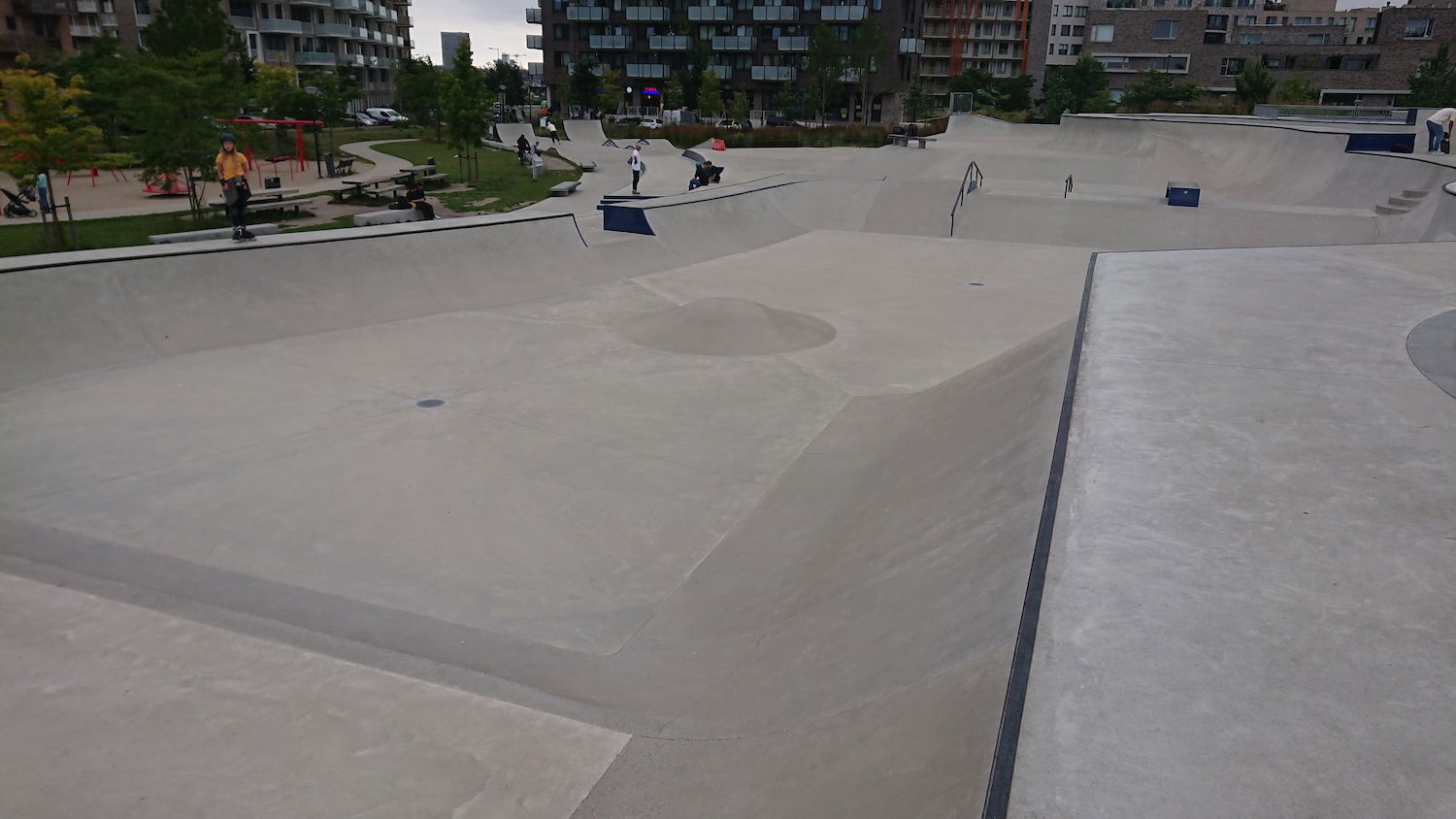 The Zeeburg Skatepark on Zeeburgereiland, Amsterdam, is the largest concrete skatepark in the Netherlands, covering approximately 3,850 square meters. Officially opened on June 19, 2020, the park was designed by Glifberg & Lykke, a renowned architectural firm specializing in skateparks, and constructed by SkateOn Skateparks. The park is part of the Urban Sports Zone development and was funded by the Municipality of Amsterdam as part of a broader initiative to integrate recreational spaces into new residential areas like the Sportheldenbuurt.