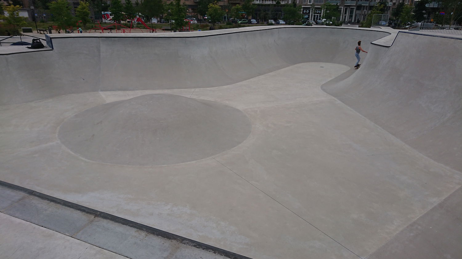 Fantastic skatepark with plenty of different obstacles and quarters over a very large surface, and (literally) on top of that a pool and two bowls! Recommend it!