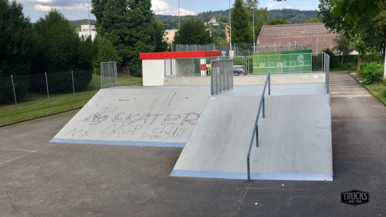 The 570 m² Zofingen skatepark features a wide miniramp and a fitness / parkour park area.