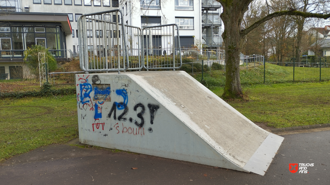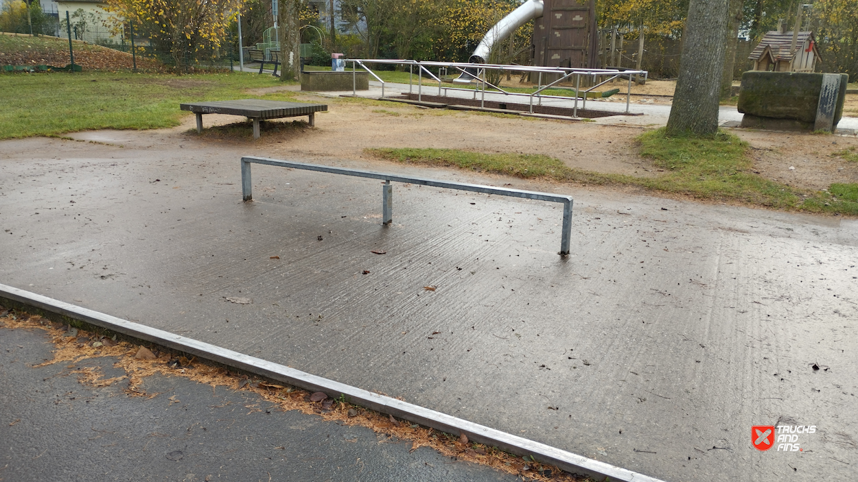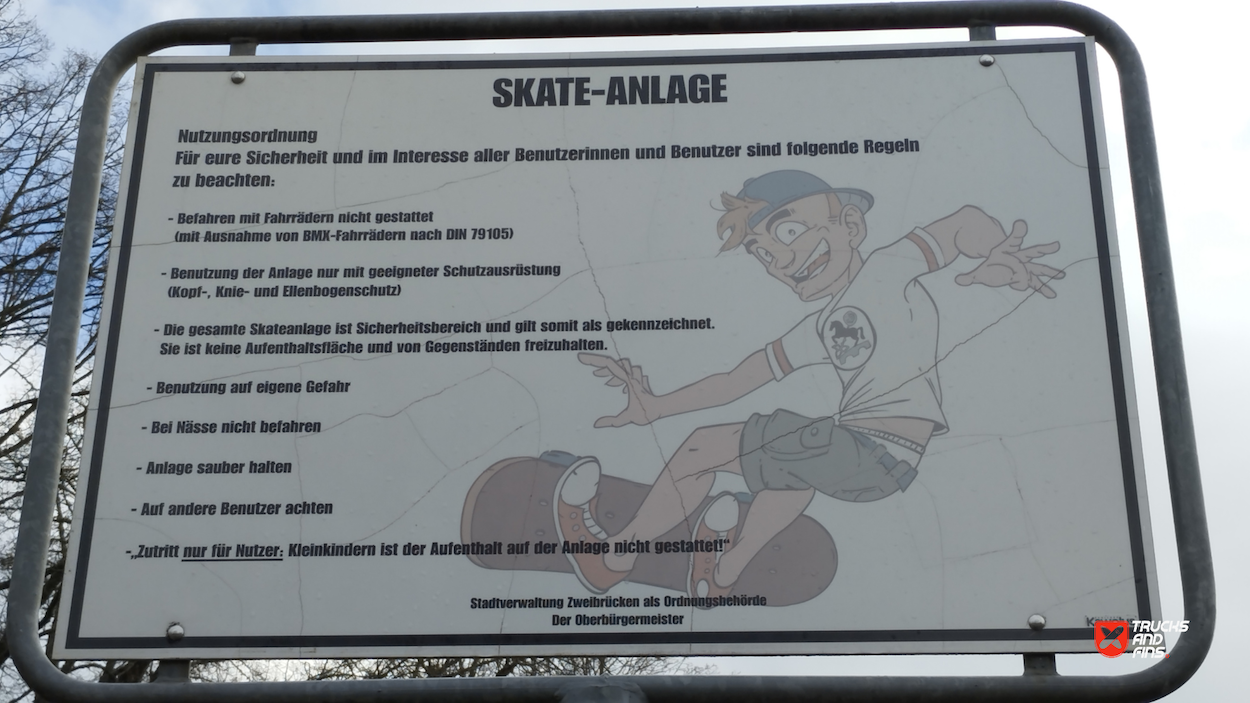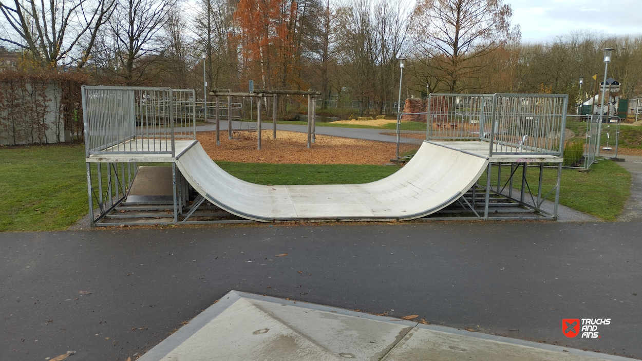Zweibrücken skatepark features a miniramp and several basic skateboarding obstacles.