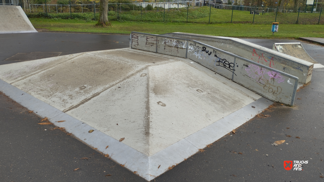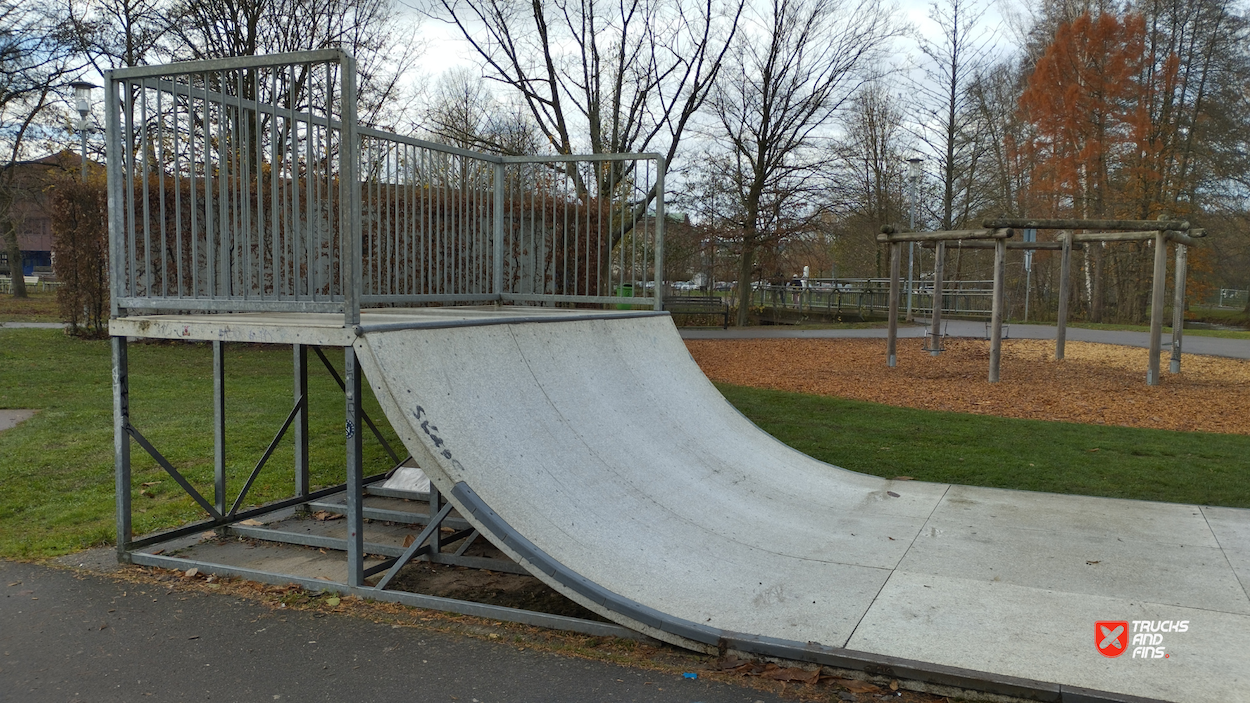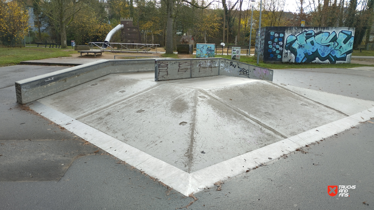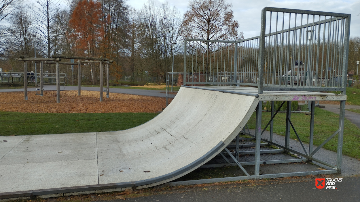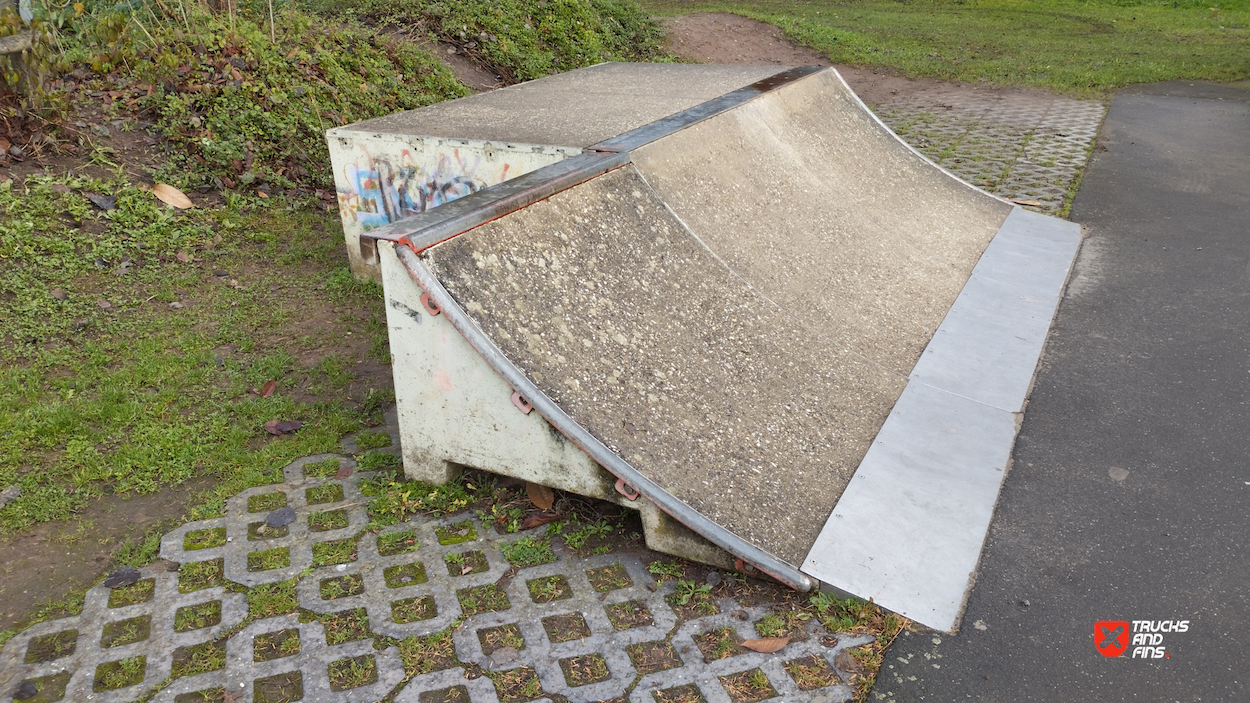 Zweibrücken skatepark features a miniramp and several basic skateboarding obstacles.