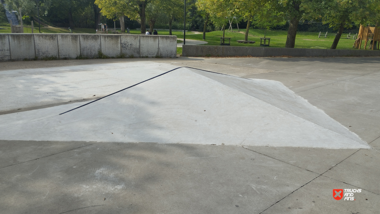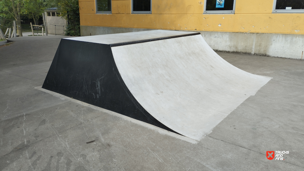 Acaciastraat skatepark is a concrete park made up of several basic skateboarding obstacles in a back and forth setup.