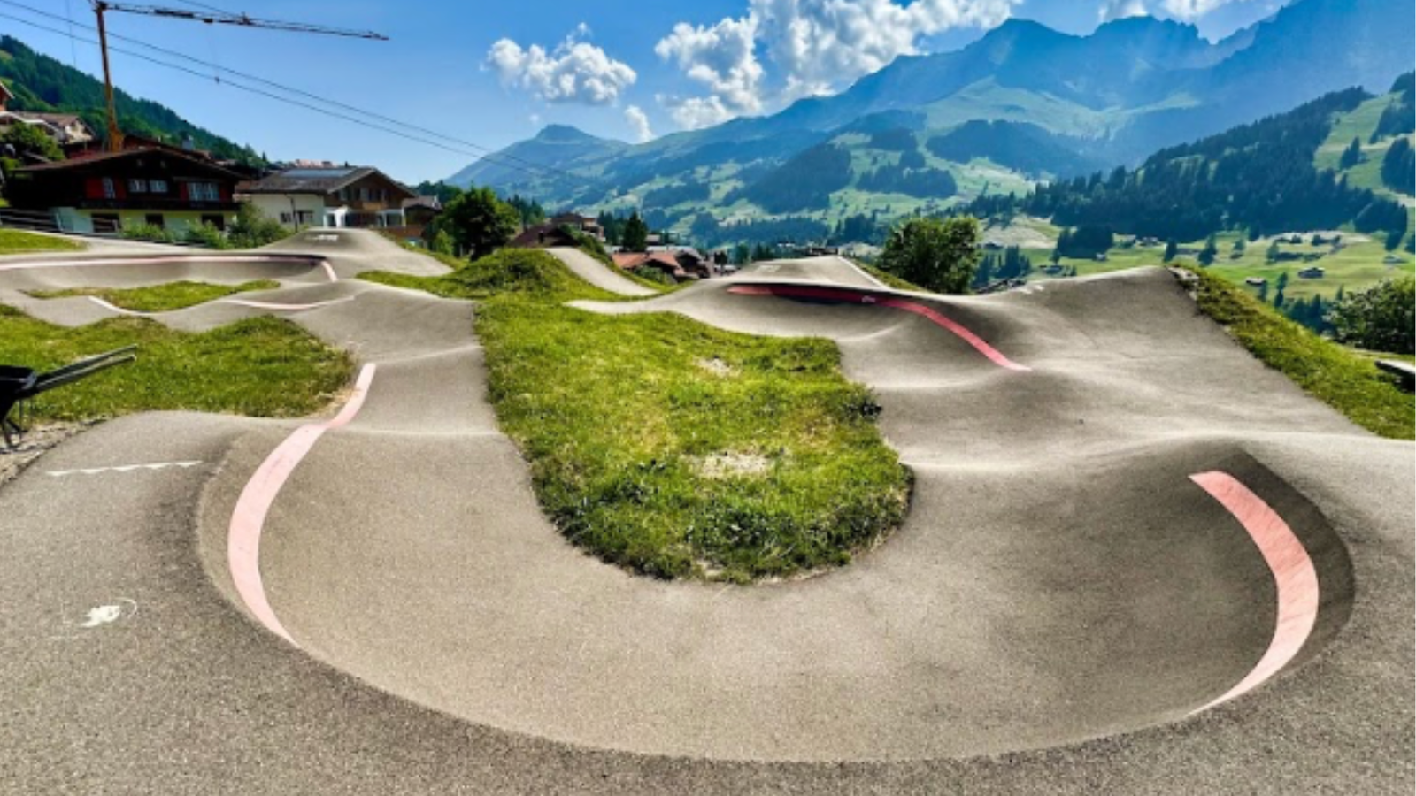 Adelboden pumptrack is an asphalt bike and skateboarding track.