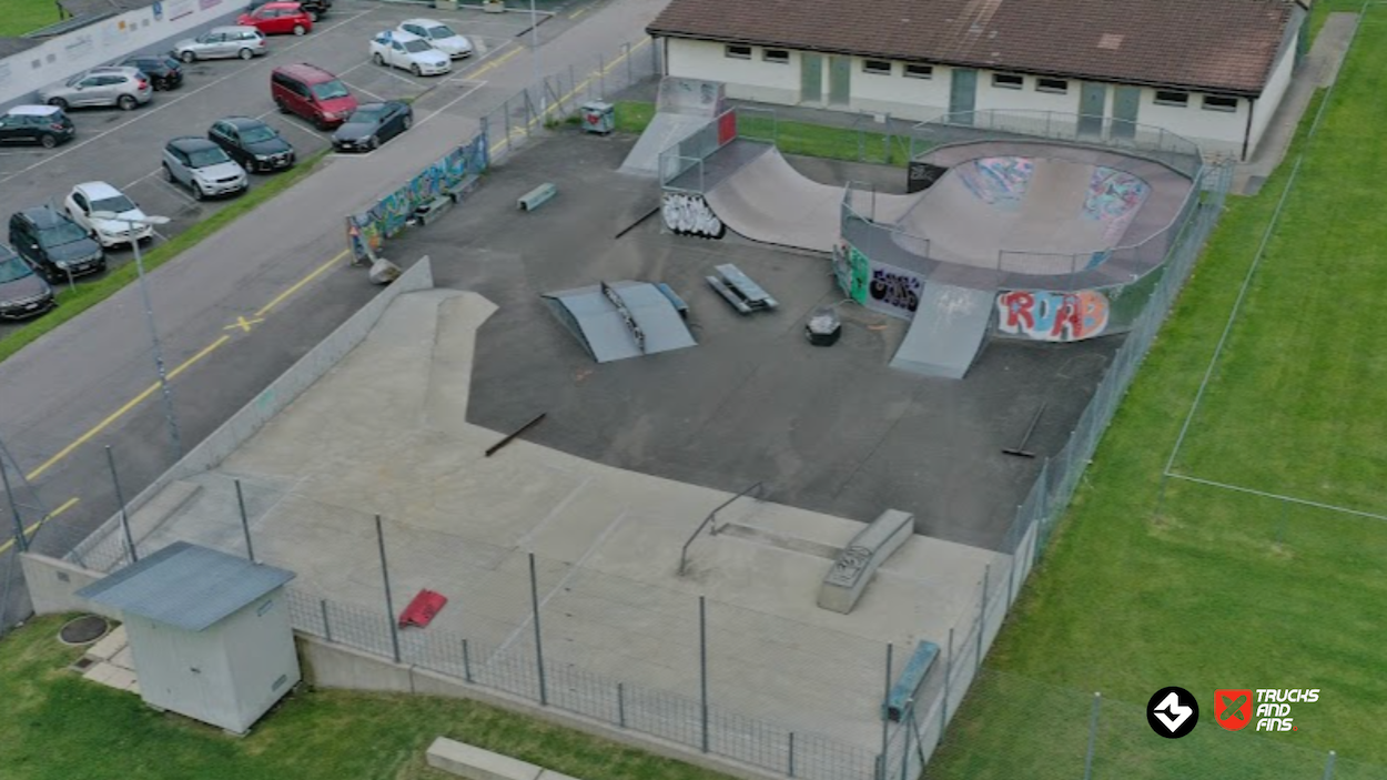 Aigle skatepark is a partially concrete park featuring a bowl, miniramp and a street section with a nice variety of obstacles. The skatepark is located next to Stade football Les Glariers.