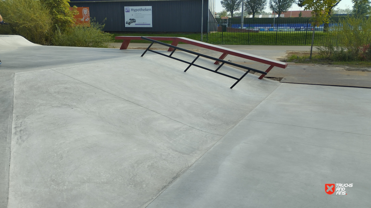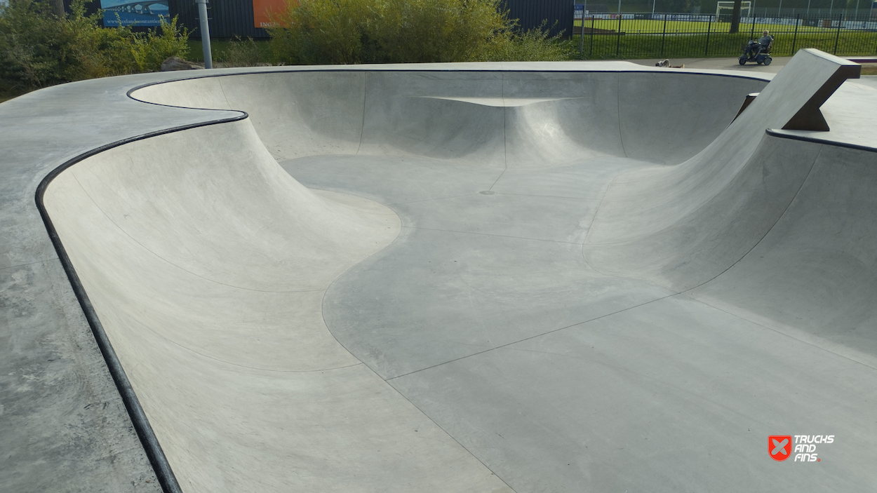 Urban Sportpark Goes skatepark, aka AJ Goes skatepark or Het Schengen skatepark, is a concrete park featuring a bowl and a street section with a nice variety of obstacles.