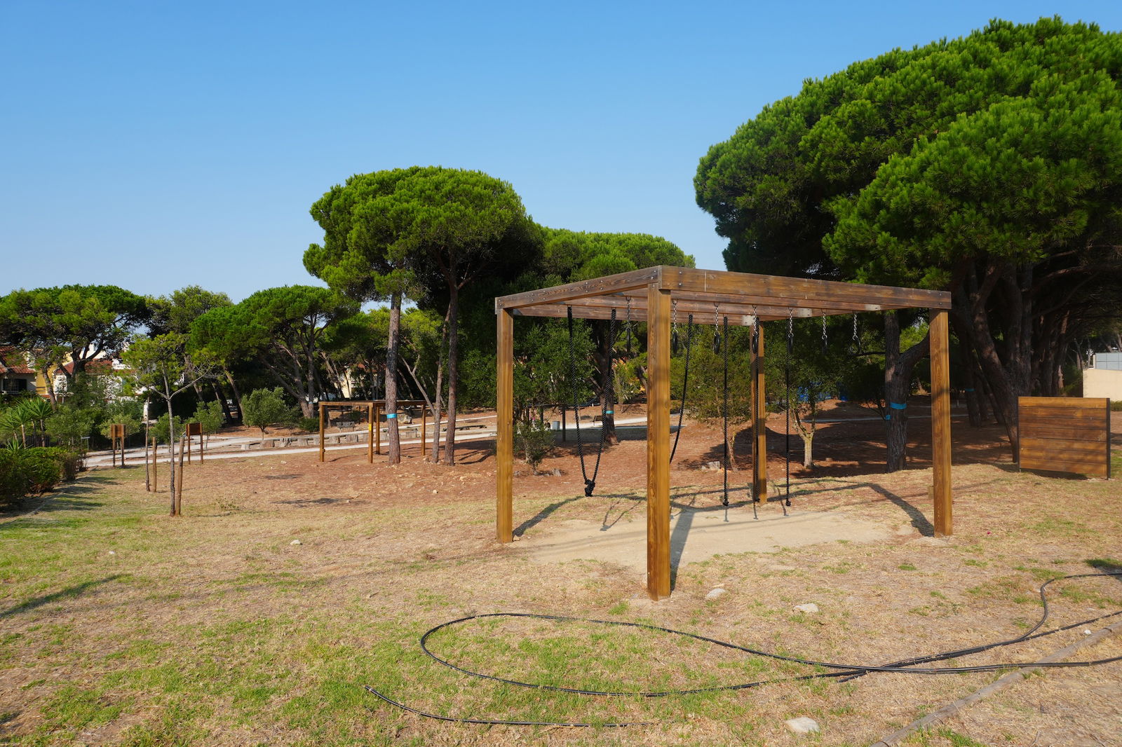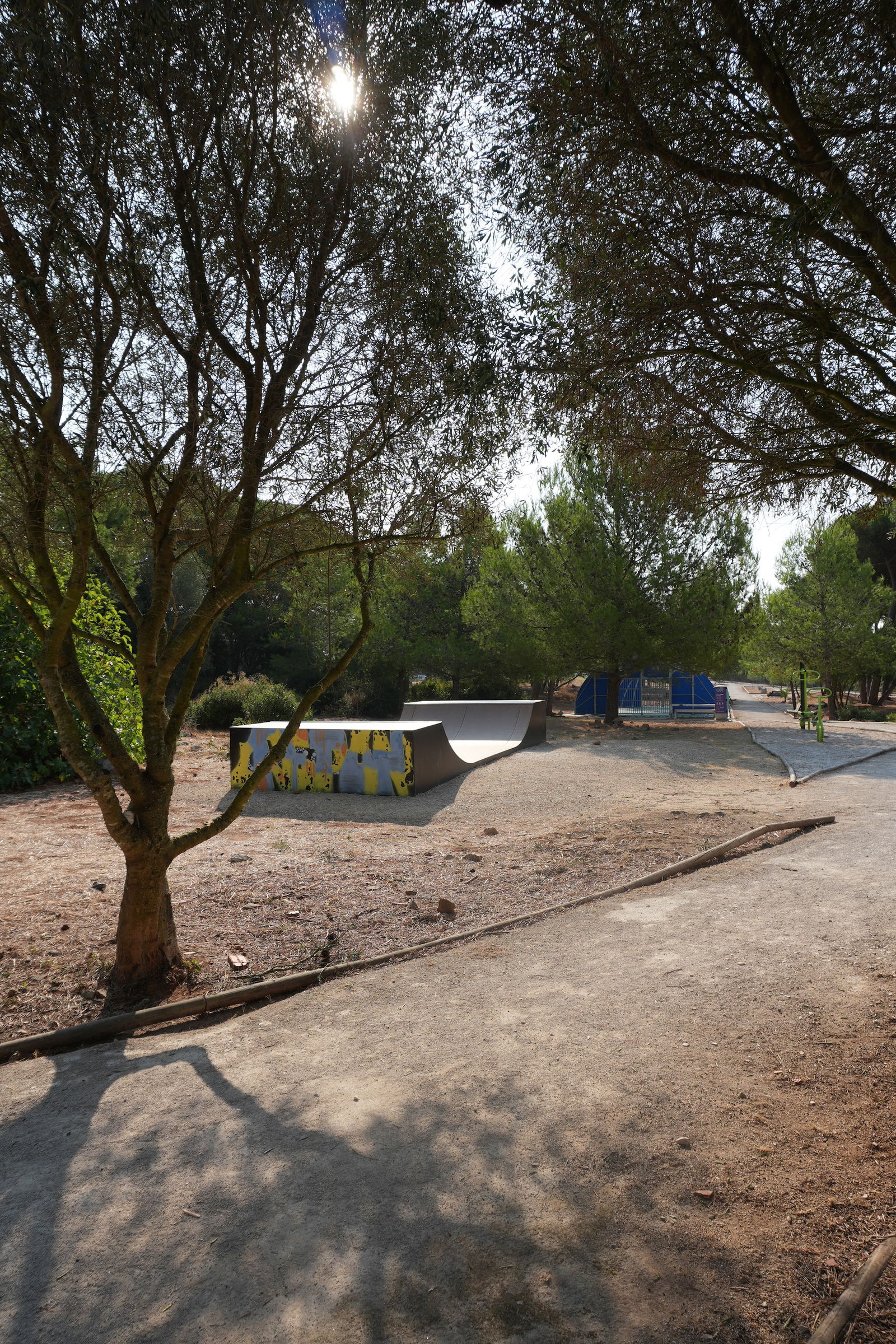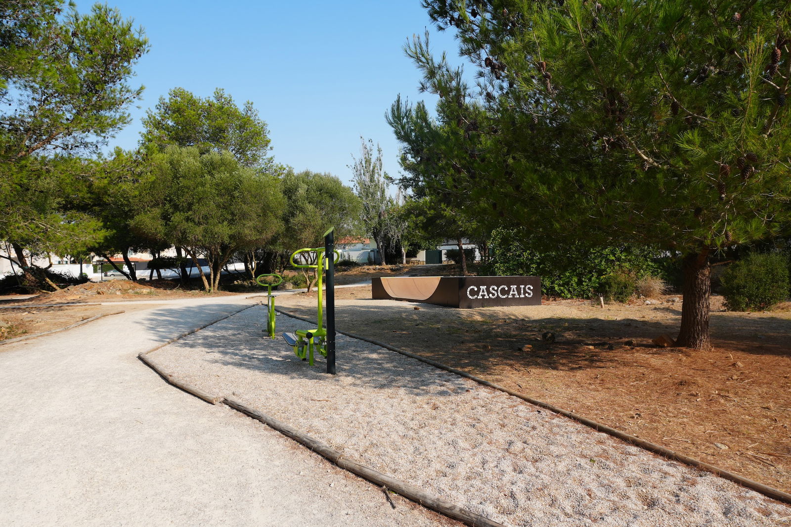 Aldeia de Juso skatepark features a wooden miniramp, built in 2024. The miniramp is located in Pinhal de Aldeia de Juso park, equipped with other sport infrastructures: basketball field, exercise area, climbing wall and more.