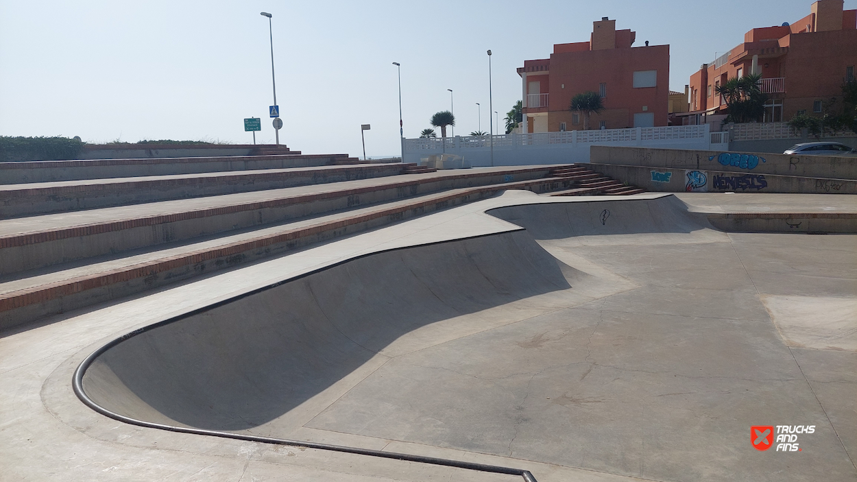 Almassora playa skatepark is a street plaze style park with transition elements.