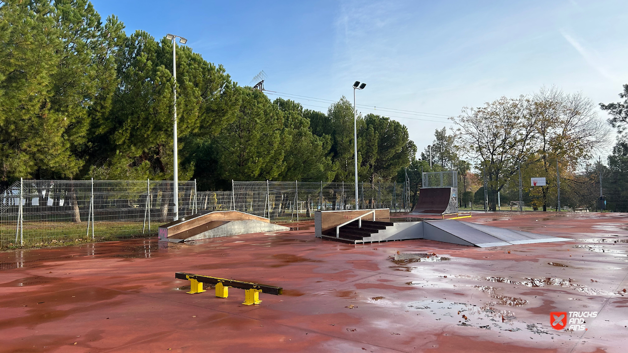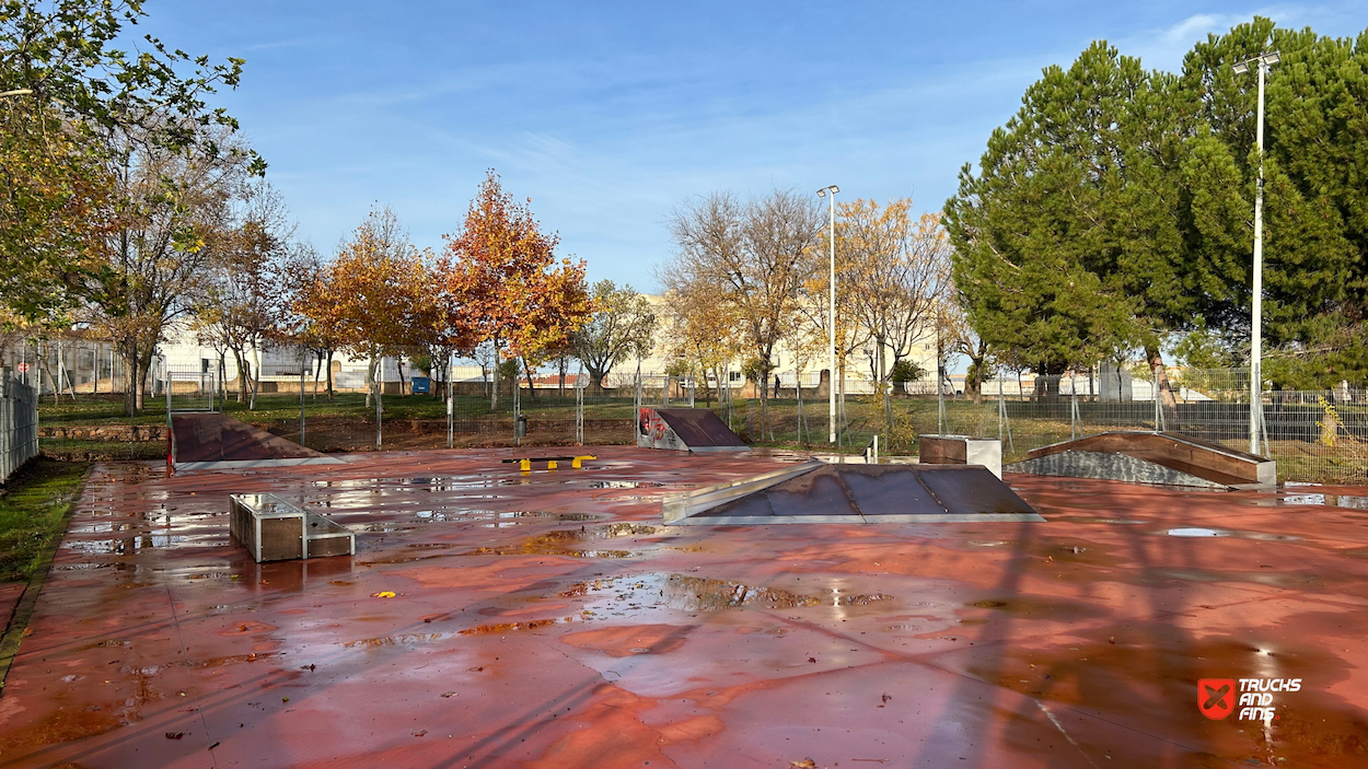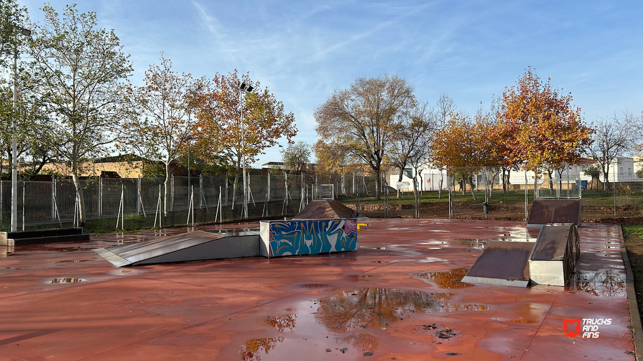 Almendralejo skatepark is a small park with several basic skateboarding obstacles.