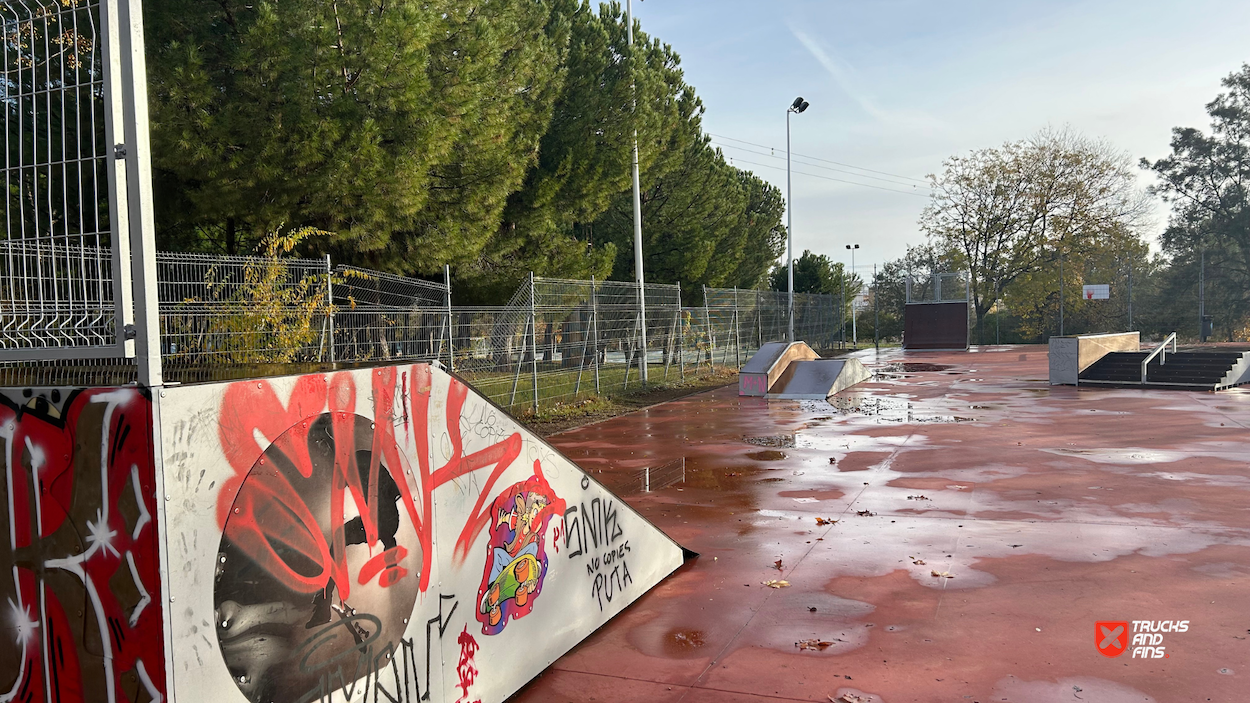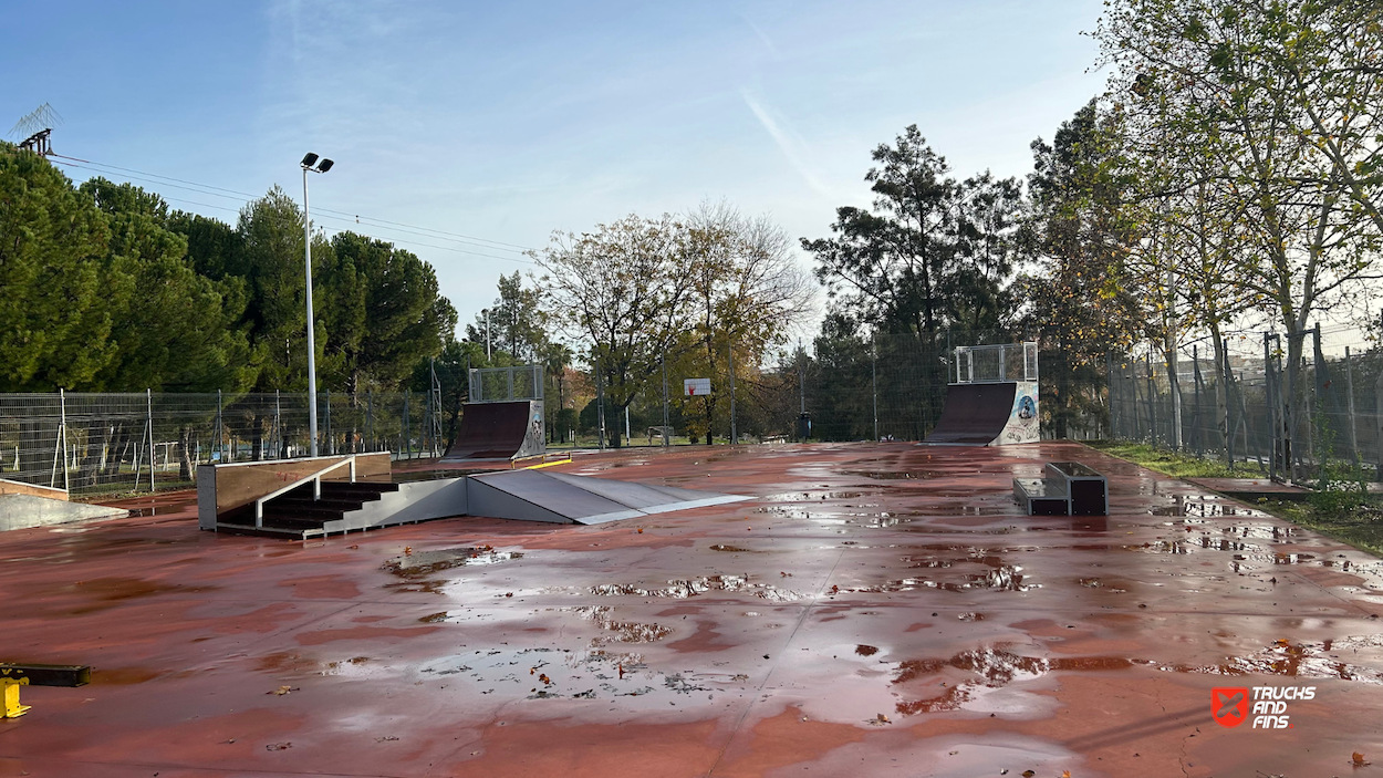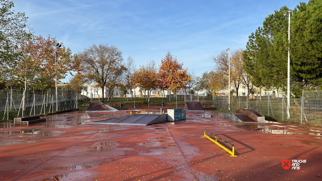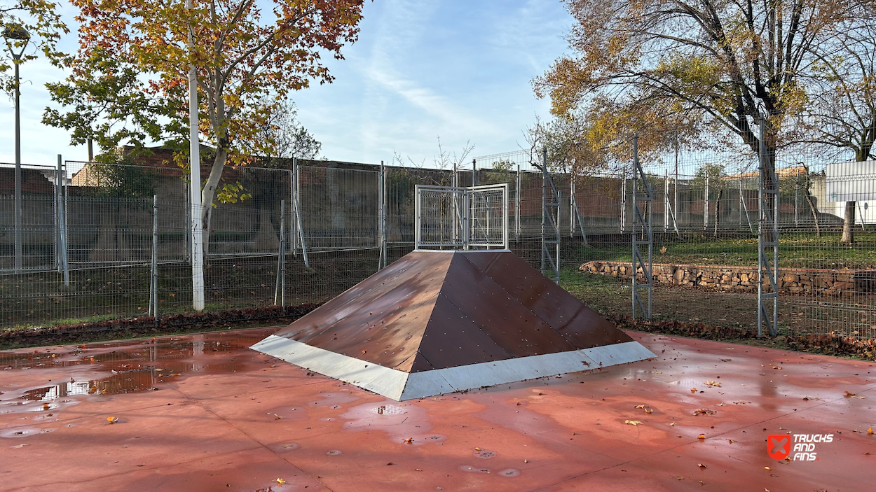 Almendralejo skatepark is a small park with several basic skateboarding obstacles.