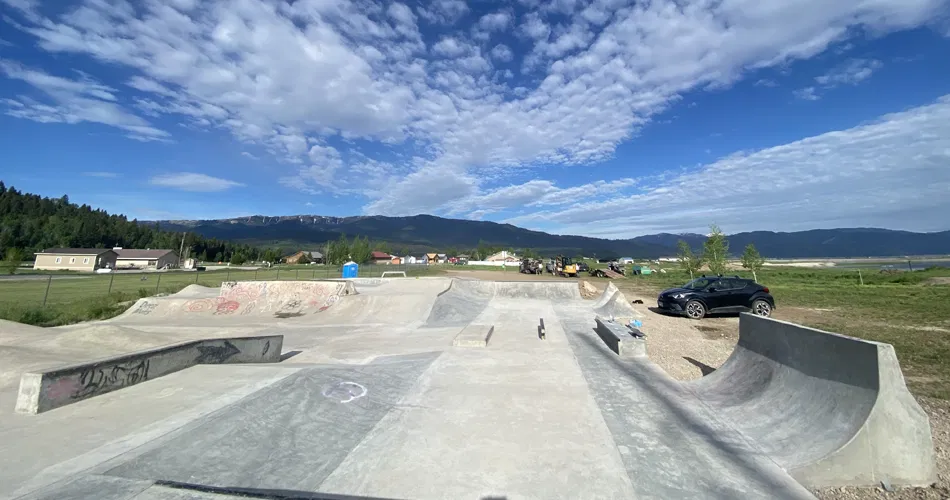 Alpine skatepark is a concrete park made up of a bowl and street section. The skatepark was built by Dreamland Skateparks.