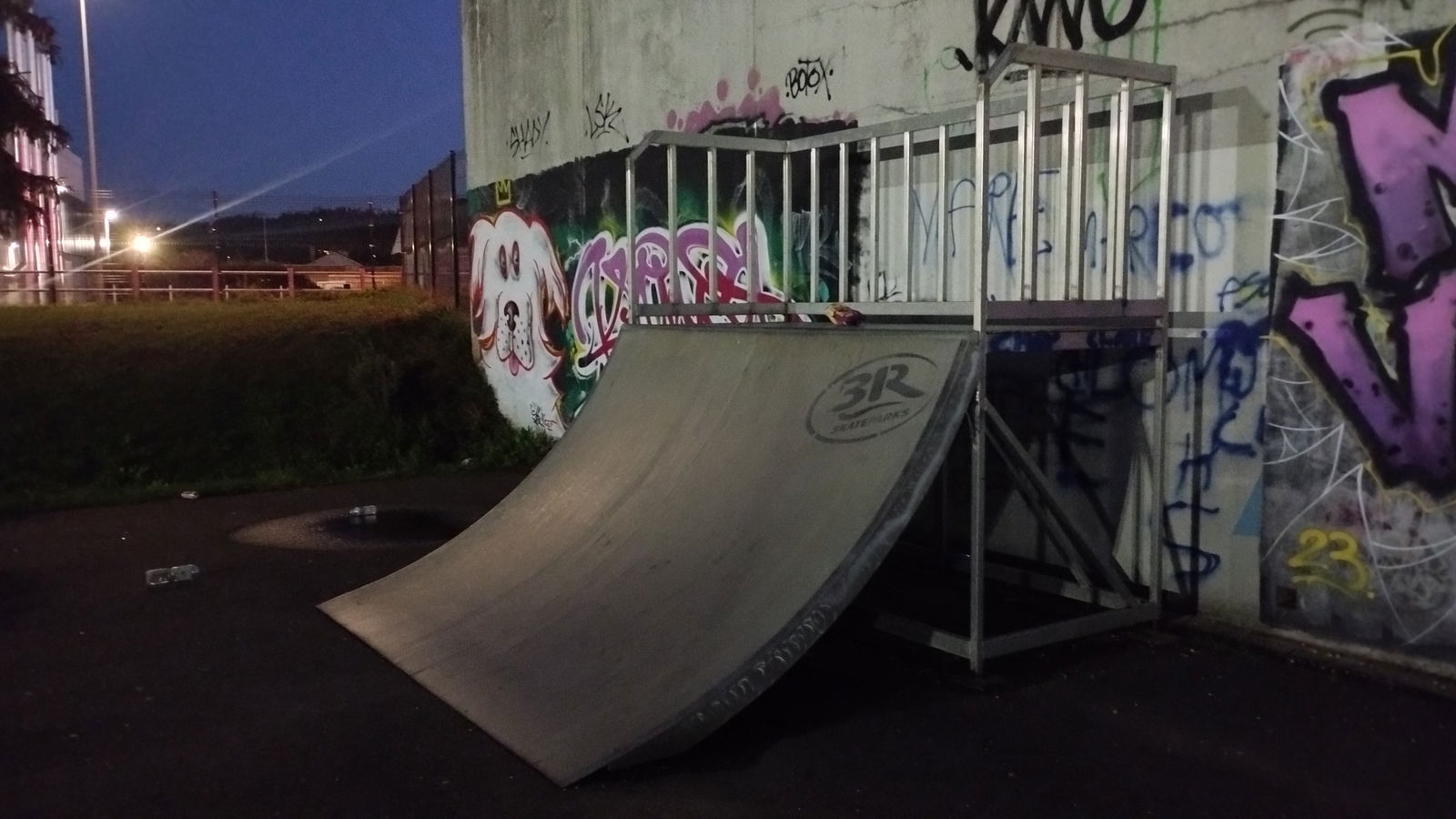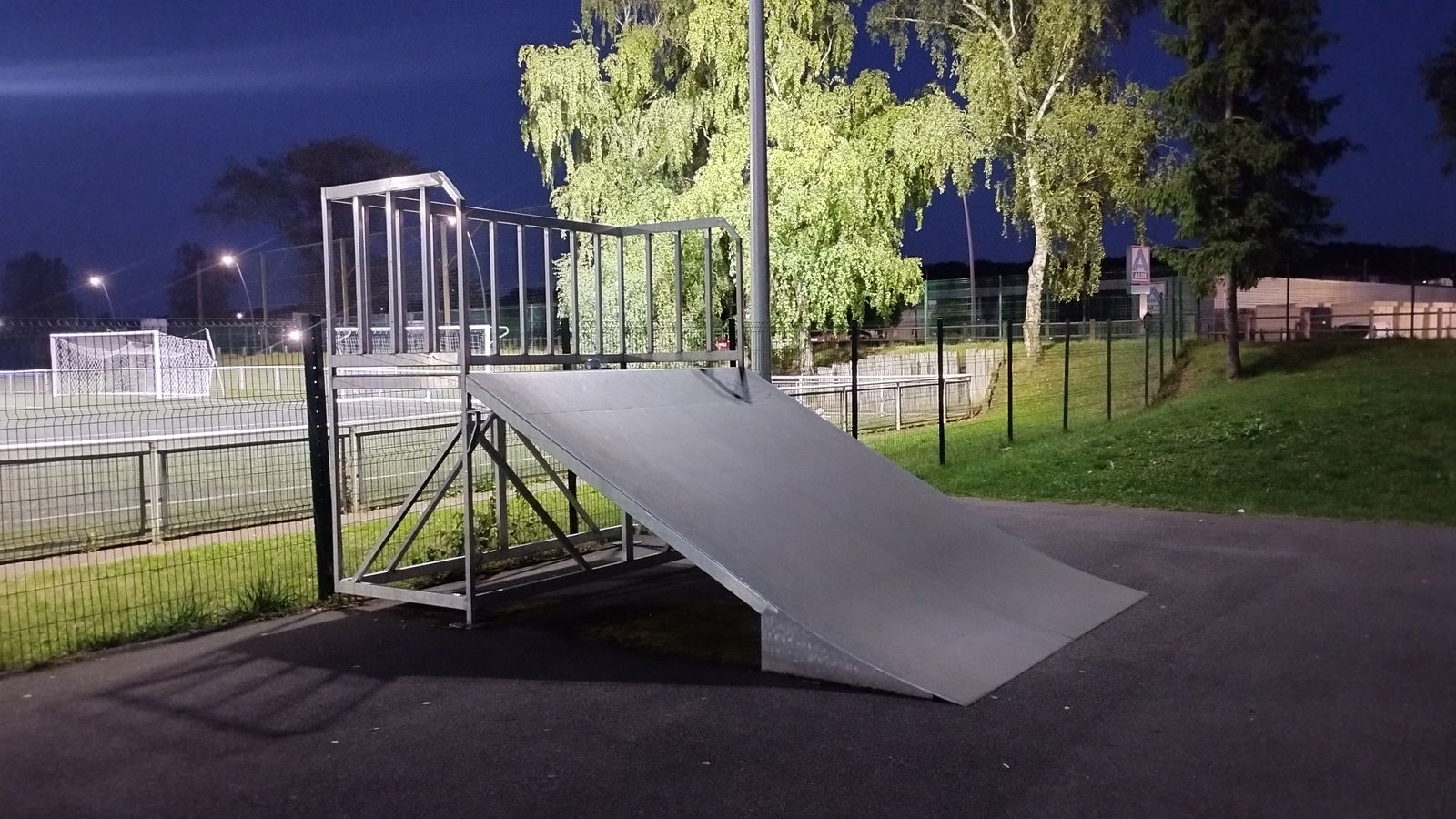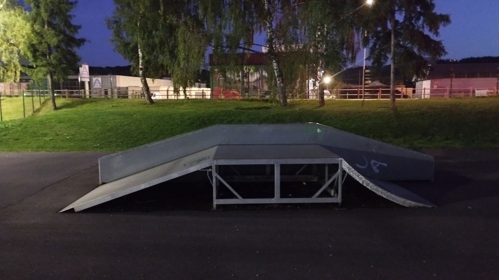 Amnéville skatepark is a small park with several basic obstacles in a back and forth setup.