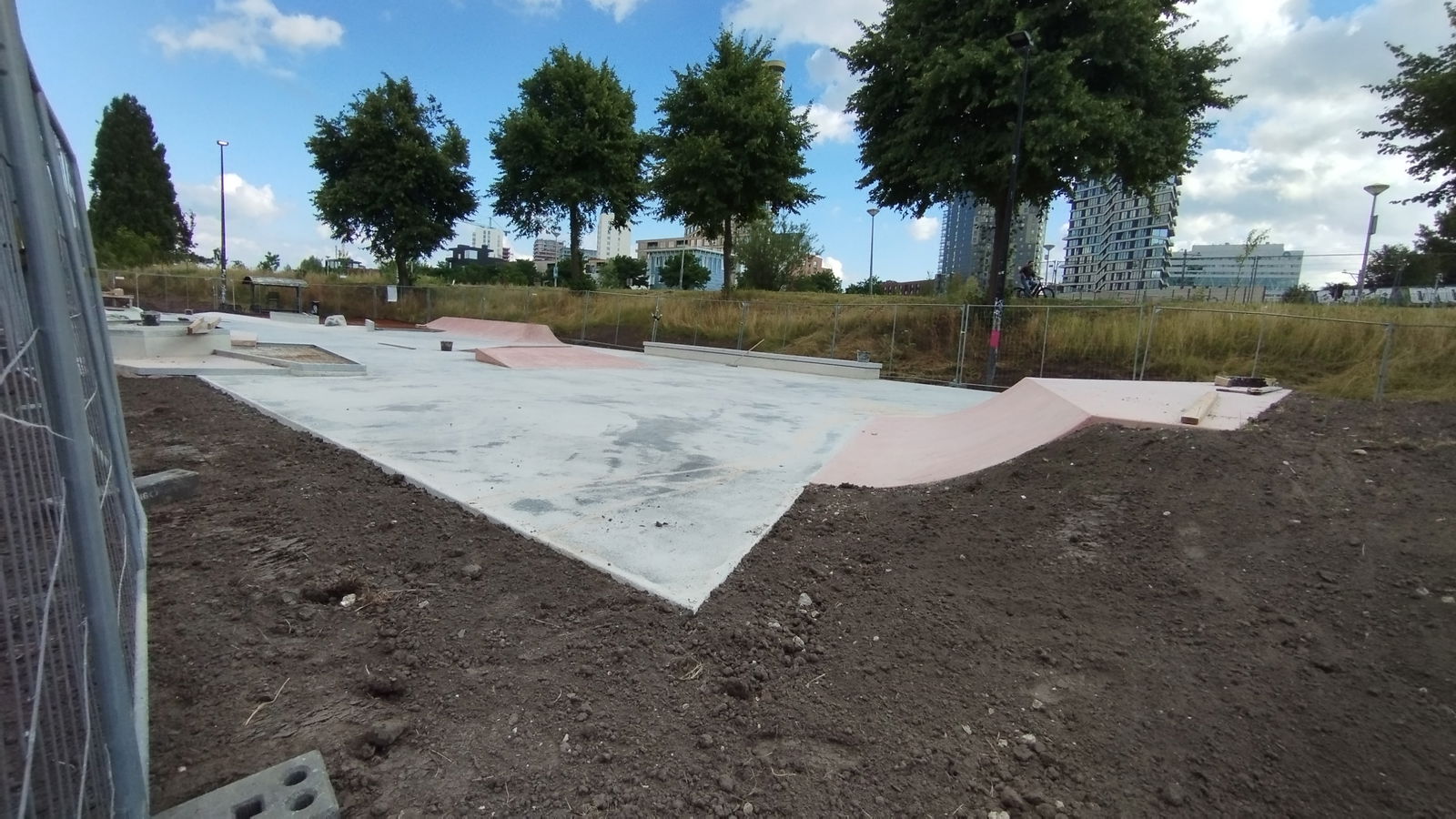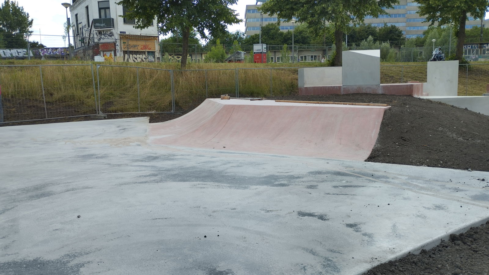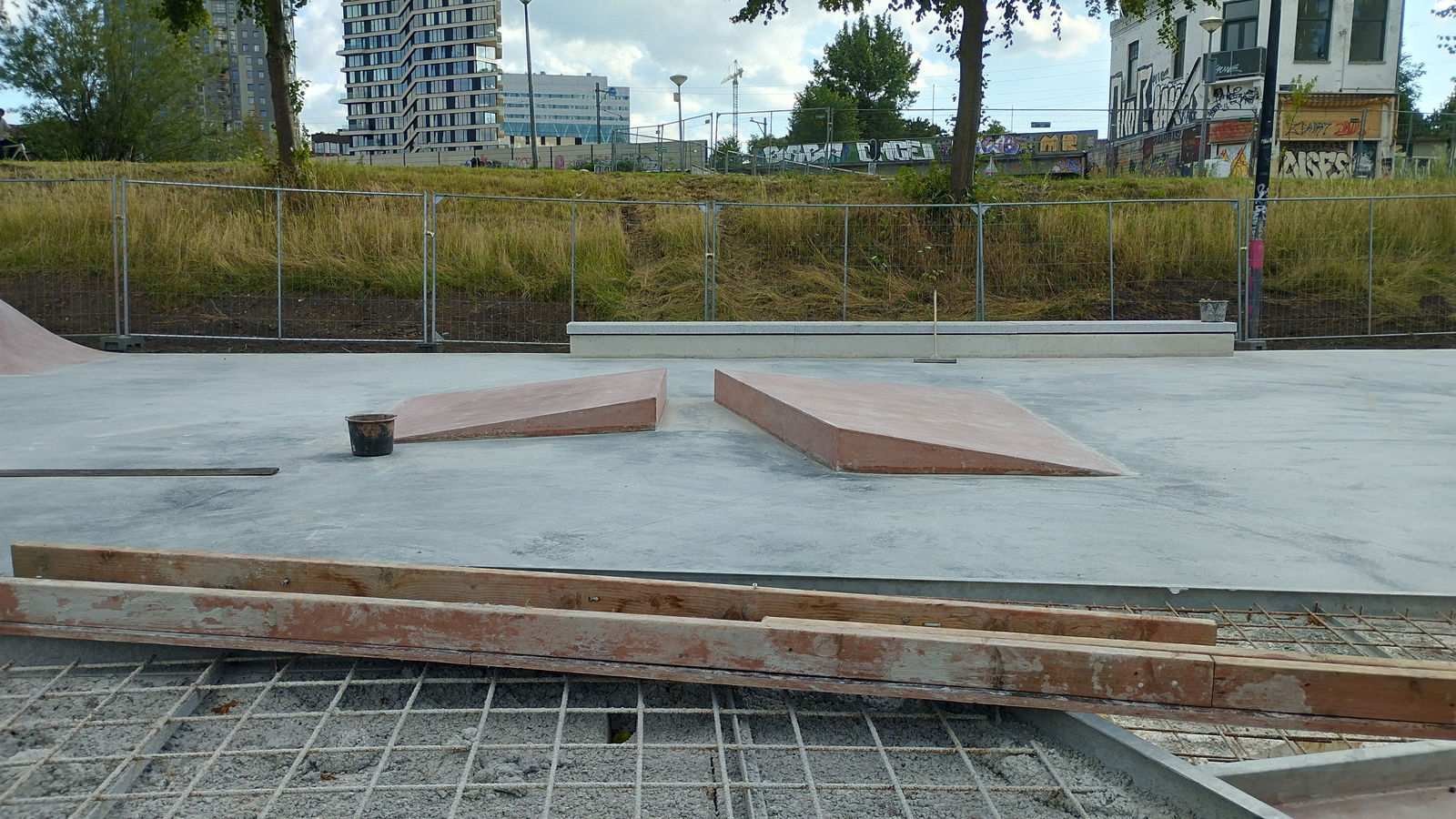 Amstel skatepark is a small park with several basic obstacles in a back and forth setup.