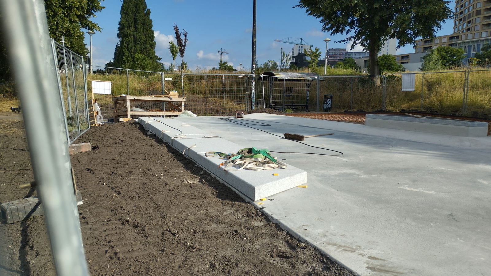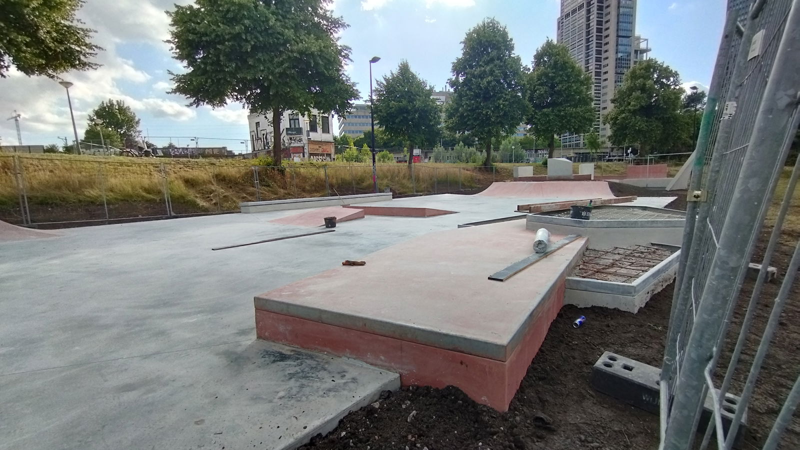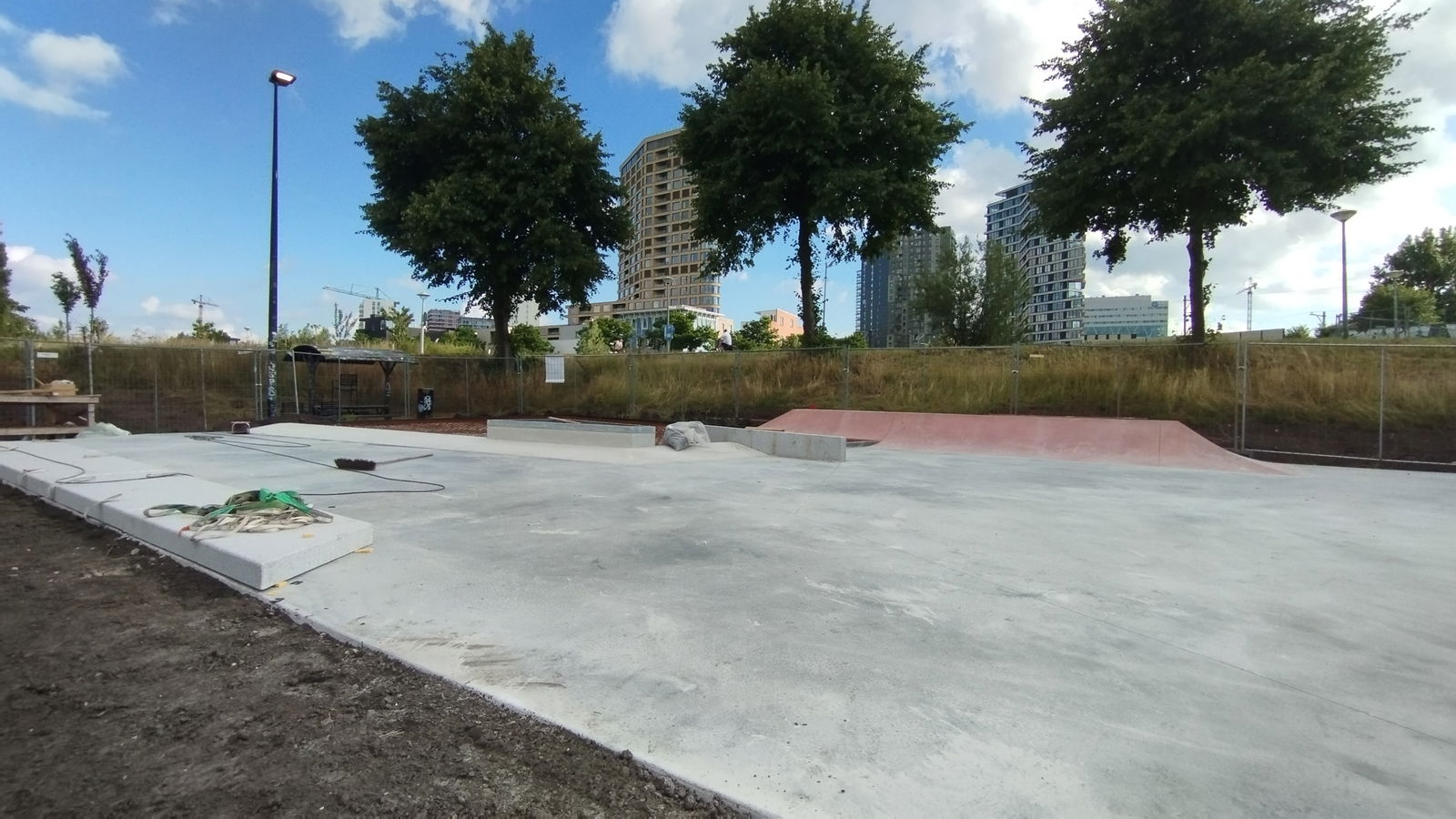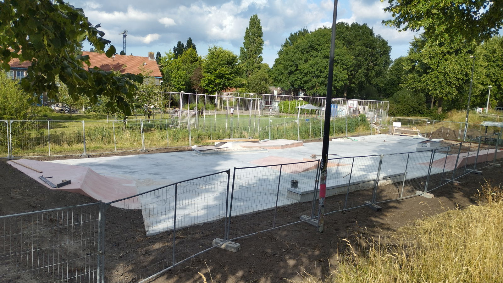 Amstel skatepark is a small park with several basic obstacles in a back and forth setup.