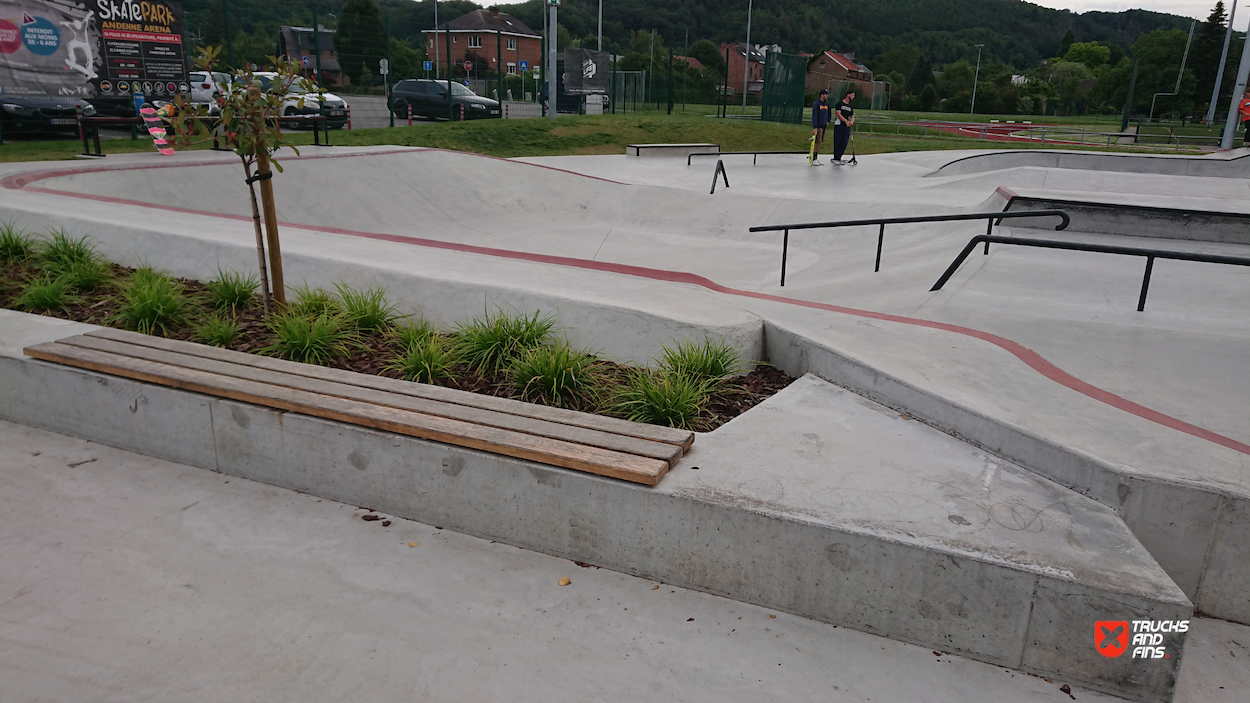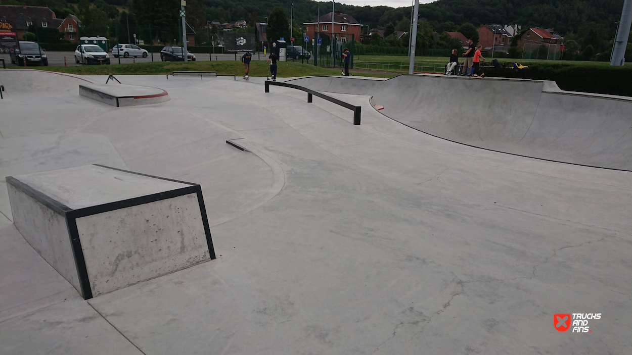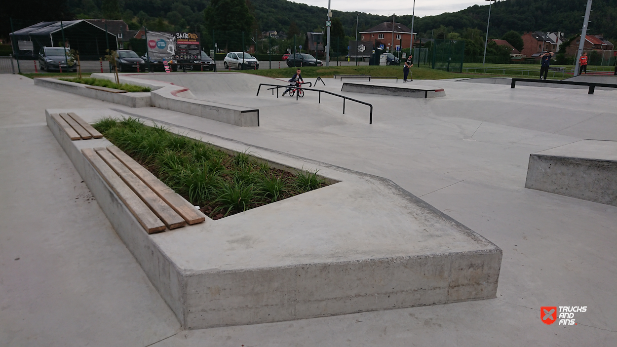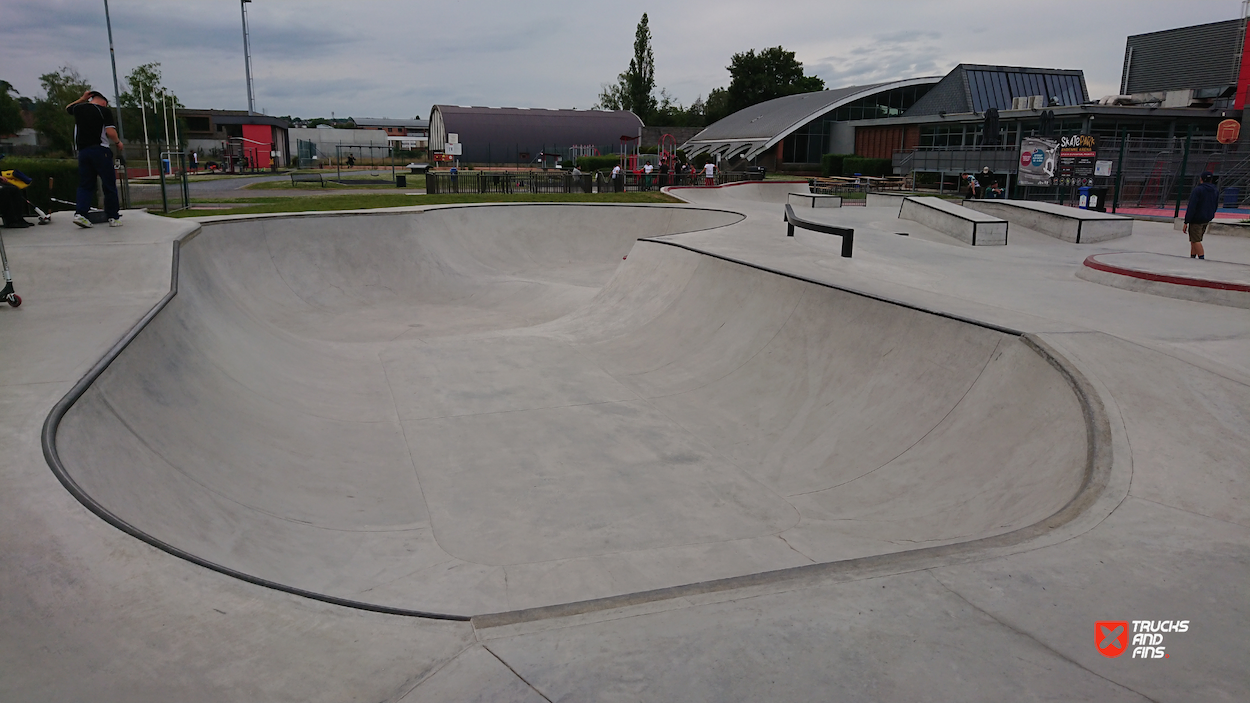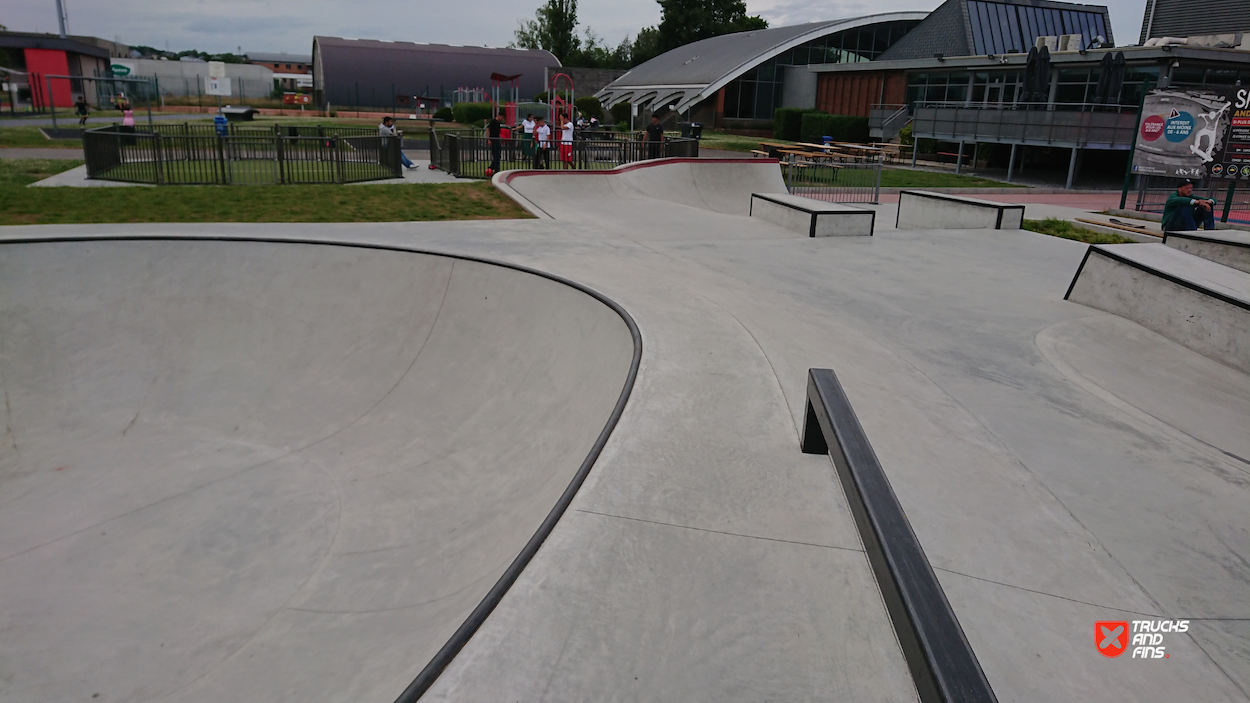 Andenne skatepark is a concrete park featuring a bowl and a street section. The skatepark was designed by Antidote skateparks.