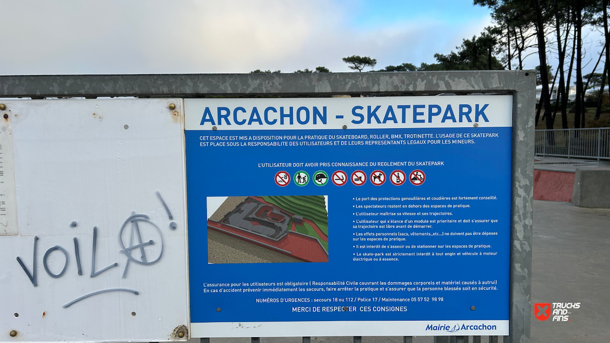 Skatepark d'Arcachon is a concrete park made up of a bowl, miniramp and street section.