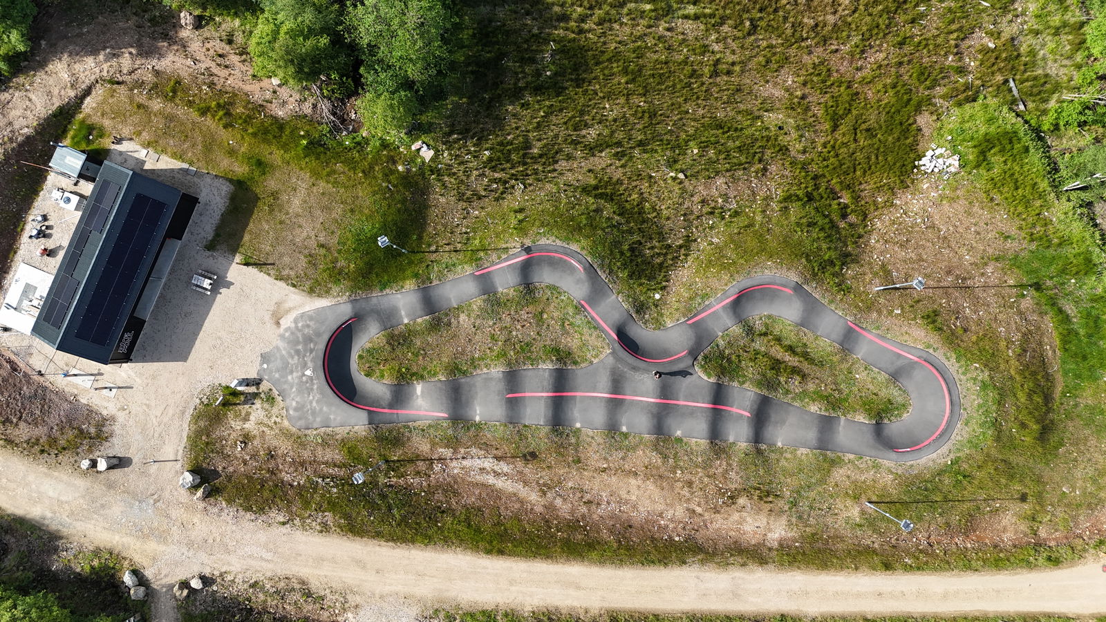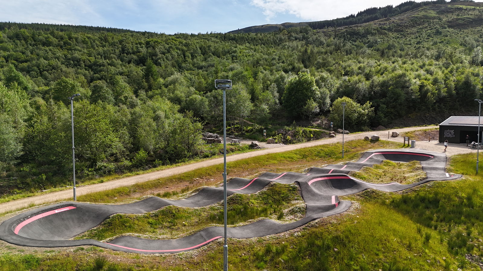 Arran pumptrack is an asphalt bike and skateboarding track built by VelosolutionsUK. Located in the woods of Arran, you can find a pristine track with everything you need to have a good session. Smooth rollers, berms and jumps are ready for you to be sent!
