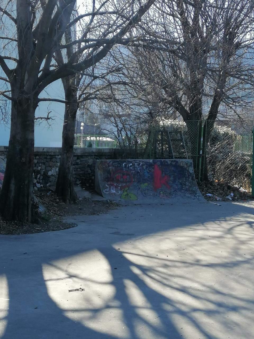 It's not bad, but the skate park is really small and there aren't many obstacles on it, it's constantly with a lot of pebbles and almost everyday there are little kids running around. It needs to be renewed and it needs more obstacles.