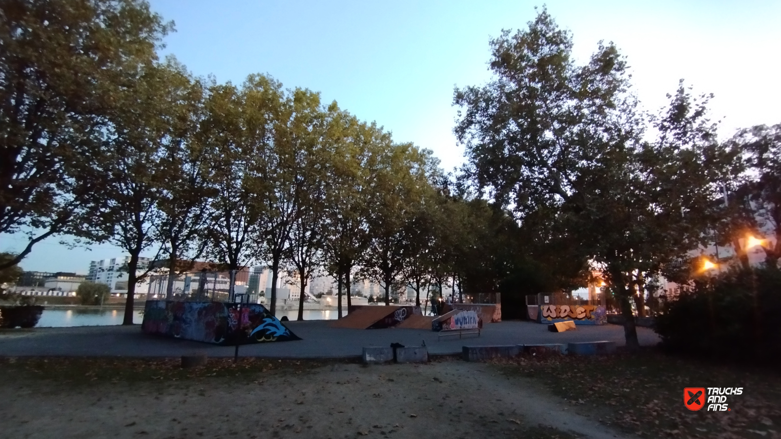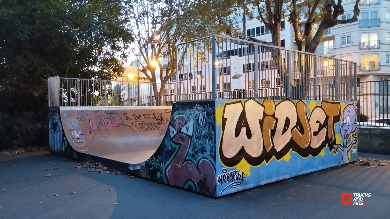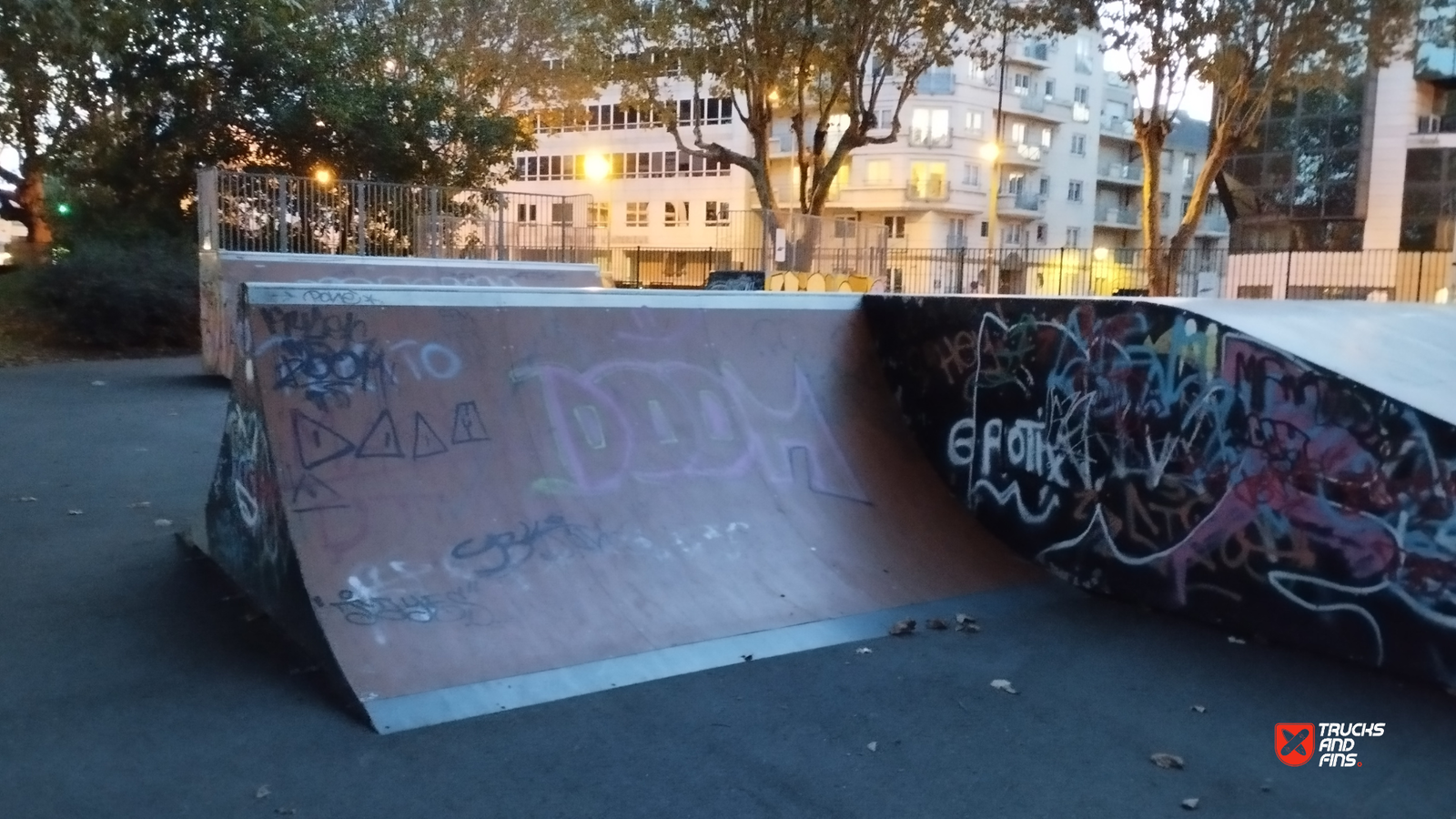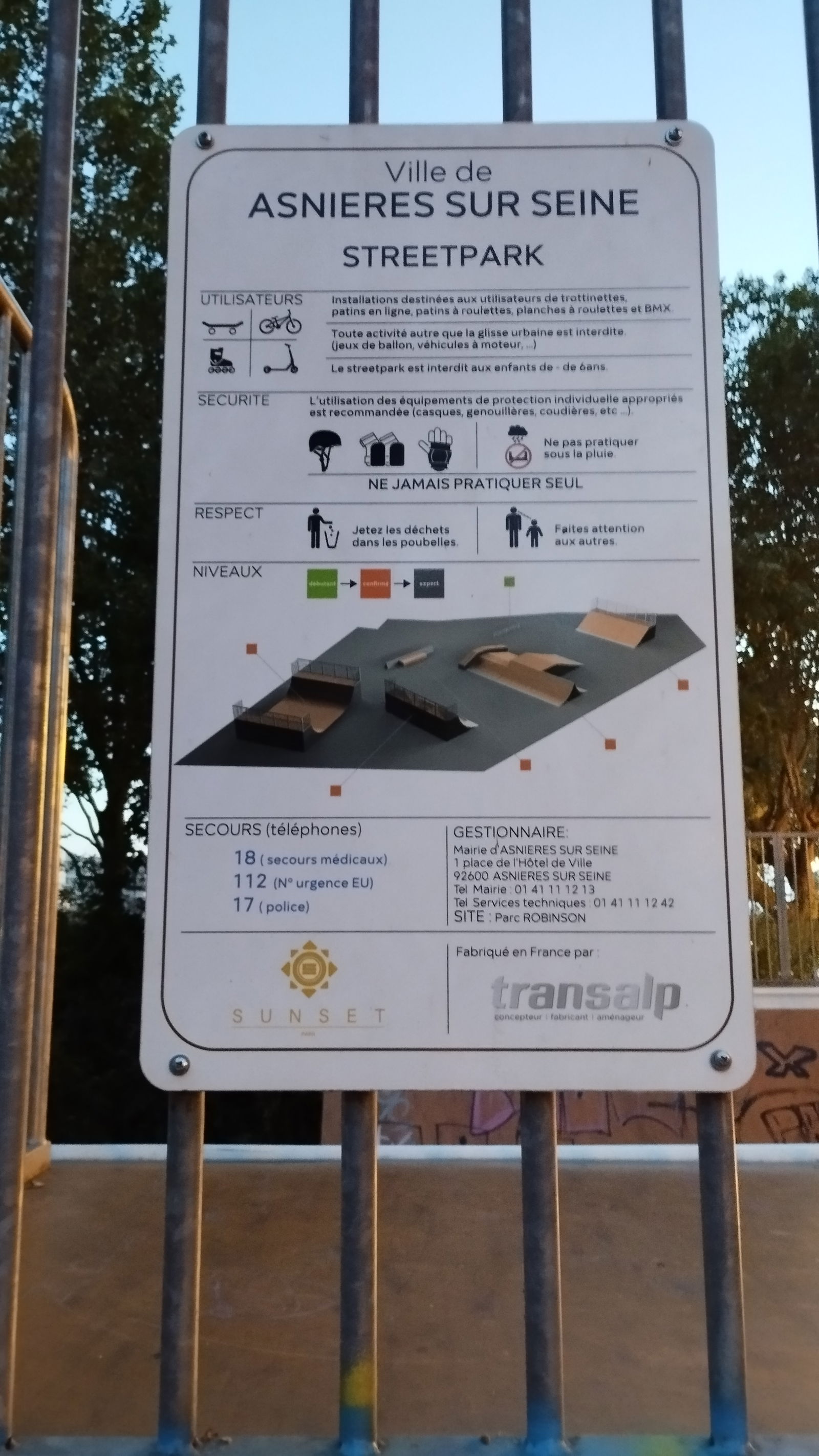 Nestled in Parc Robinson along the Seine at Quai du Docteur Derveaux (92600 Asnières), this ~700 m² skate-zone offers a sequence of metal modules: a big launcher, a U-shaped transition module, banks, rails and ledges. Renovated in 2017, it’s ideal for skaters, BMX-ers, scooter riders and rollers looking for a quick, scenic session just outside Paris.