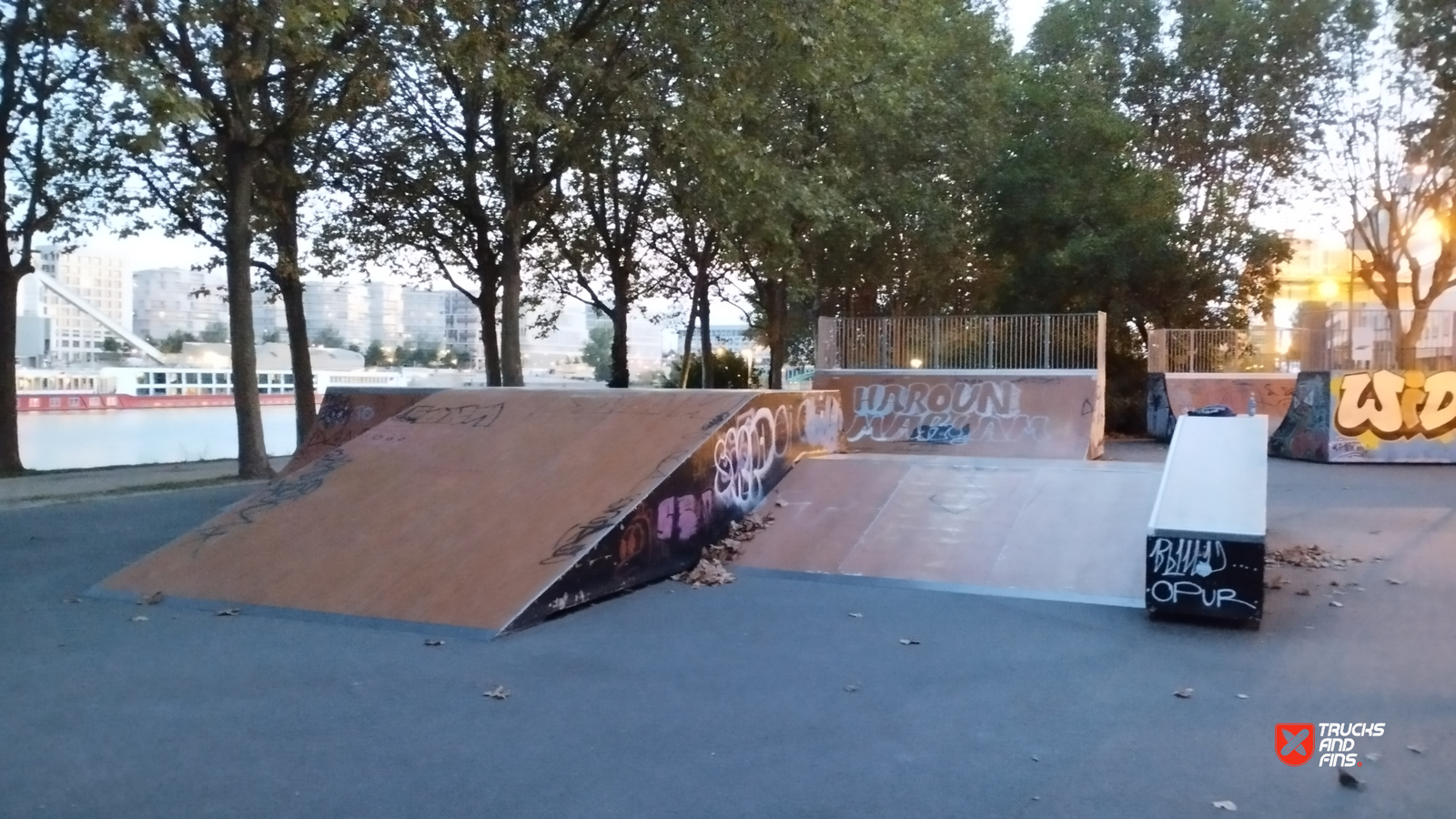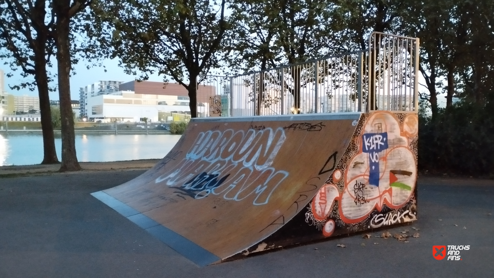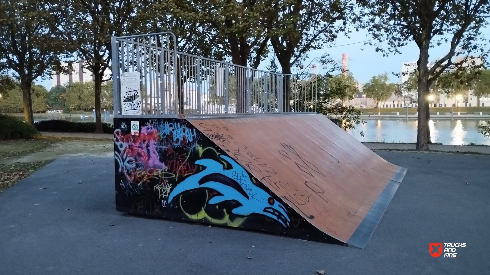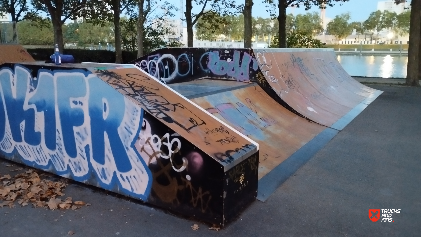Nestled in Parc Robinson along the Seine at Quai du Docteur Derveaux (92600 Asnières), this ~700 m² skate-zone offers a sequence of metal modules: a big launcher, a U-shaped transition module, banks, rails and ledges. Renovated in 2017, it’s ideal for skaters, BMX-ers, scooter riders and rollers looking for a quick, scenic session just outside Paris.