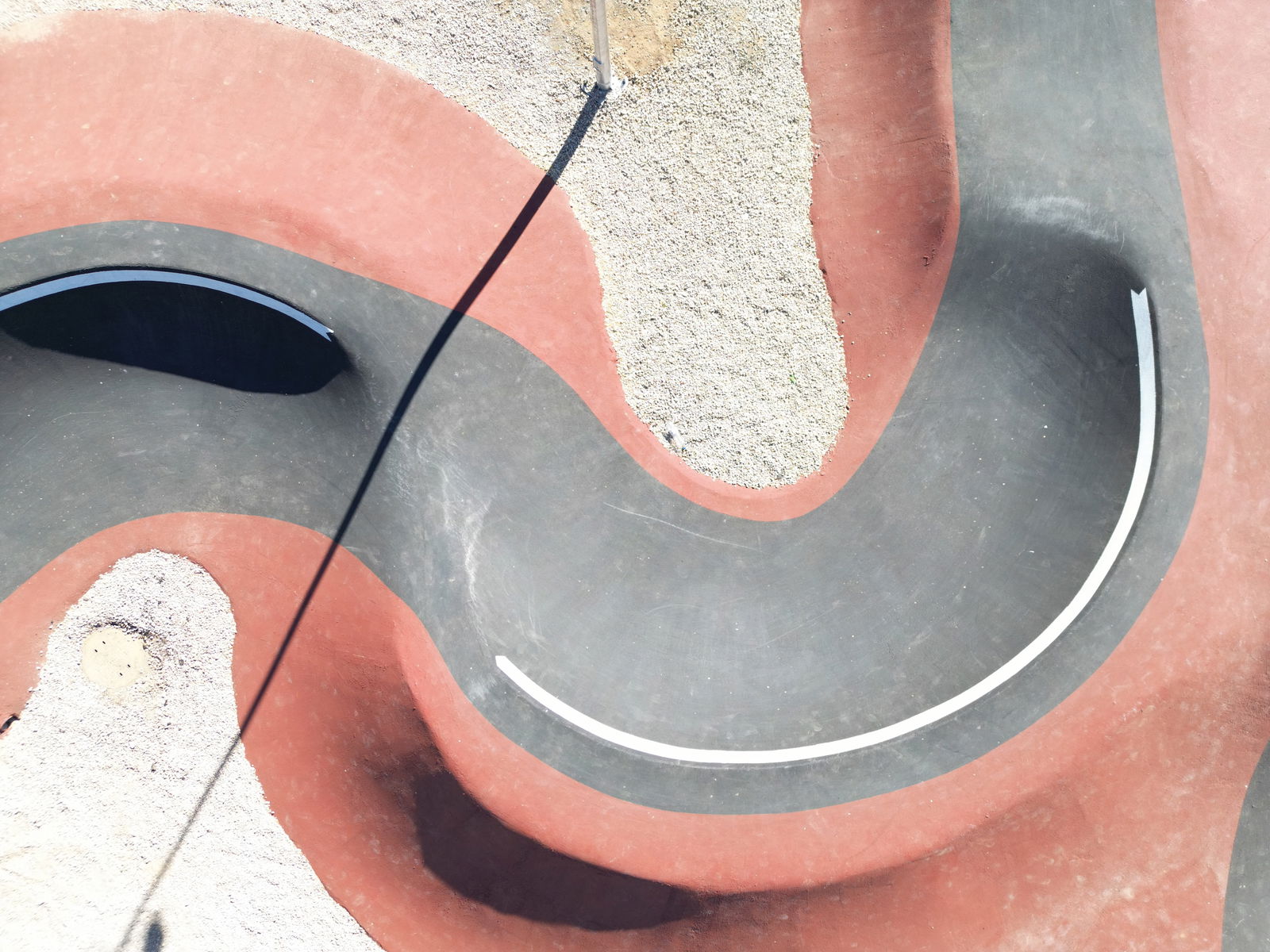 Azucaica pumptrack is a 775 M² asphalt bike and skateboard track, built by IOSkateparks and designed by Vértice Studio in 2023.