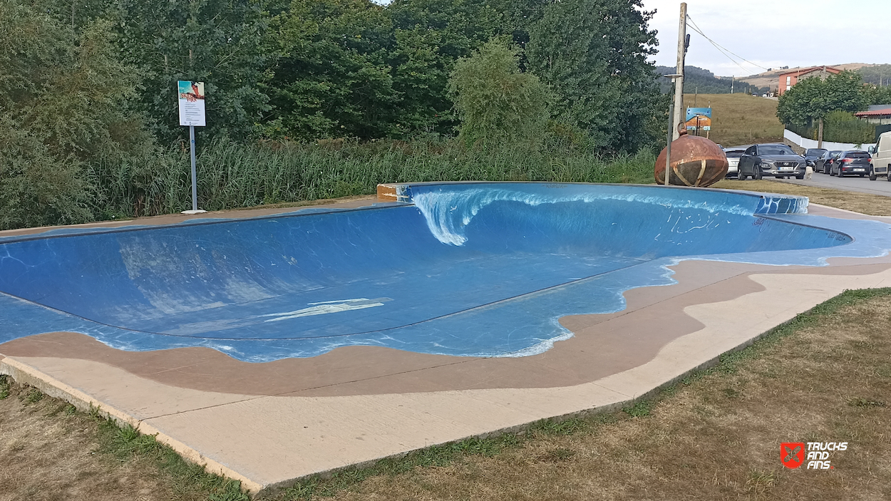 Bareyo skatepark features a concrete bowl and miniramp. The skatepark is located in Playa de Cuberris park.