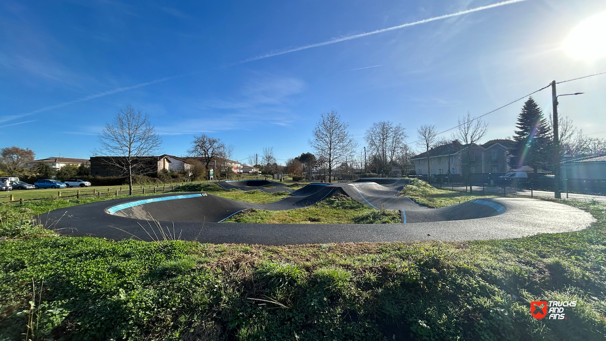The pumptrack features a series of bumps and turns, providing a dynamic course for users. It is situated within the Jardin de la Gare, adjacent to a children's play area and a city stadium, making it a versatile recreational spot for the community.