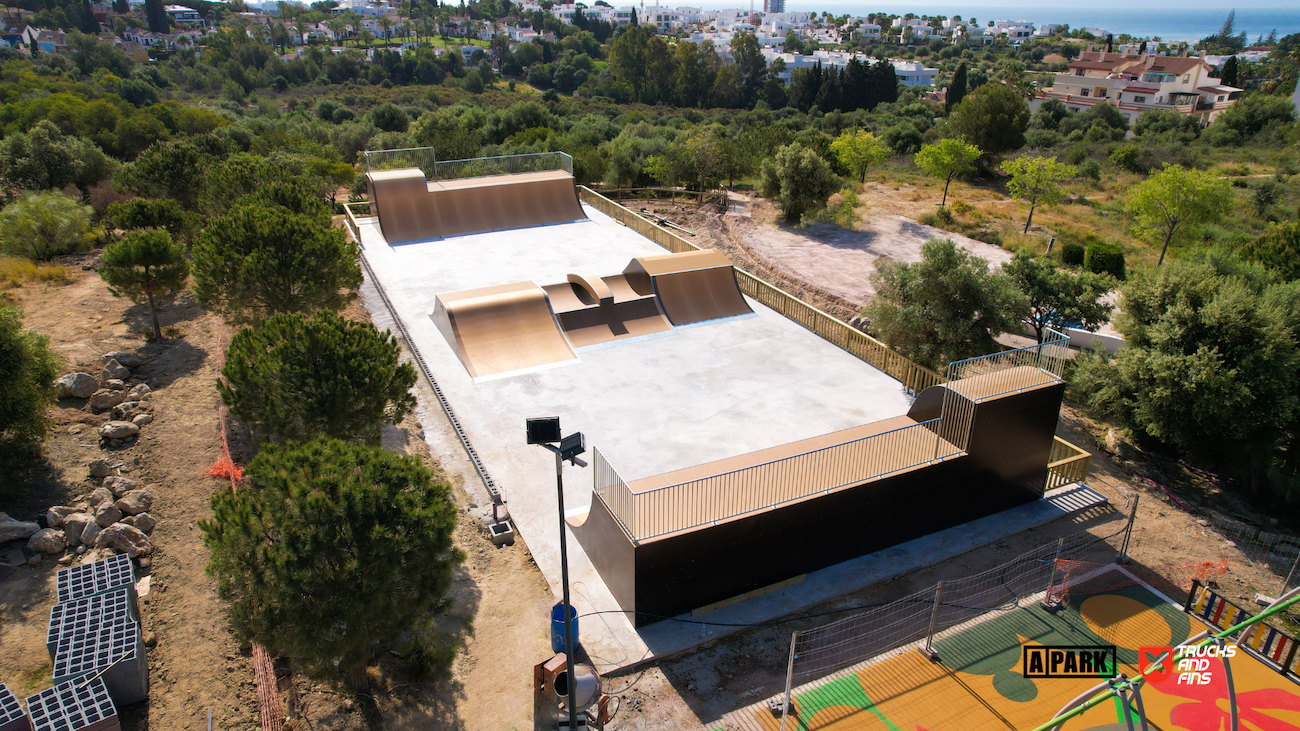 Marbella’s skatepark, located within the new Belo Horizonte sports park near the commercial district and close to the city center, spans about 600m² and was built by A-park. The park features two roll-in quarters, two jumpboxes of varying heights, and a central ramp with curves and a curved curb, making it ideal for those focused on improving their jump techniques. Renowned as one of the best parks in Andalusia, it’s well worth a visit. The skatepark is part of a larger complex that includes other sports facilities, a playground, and more.