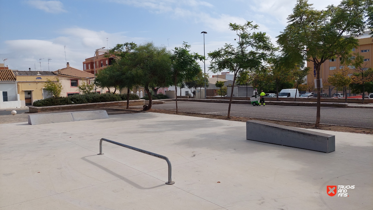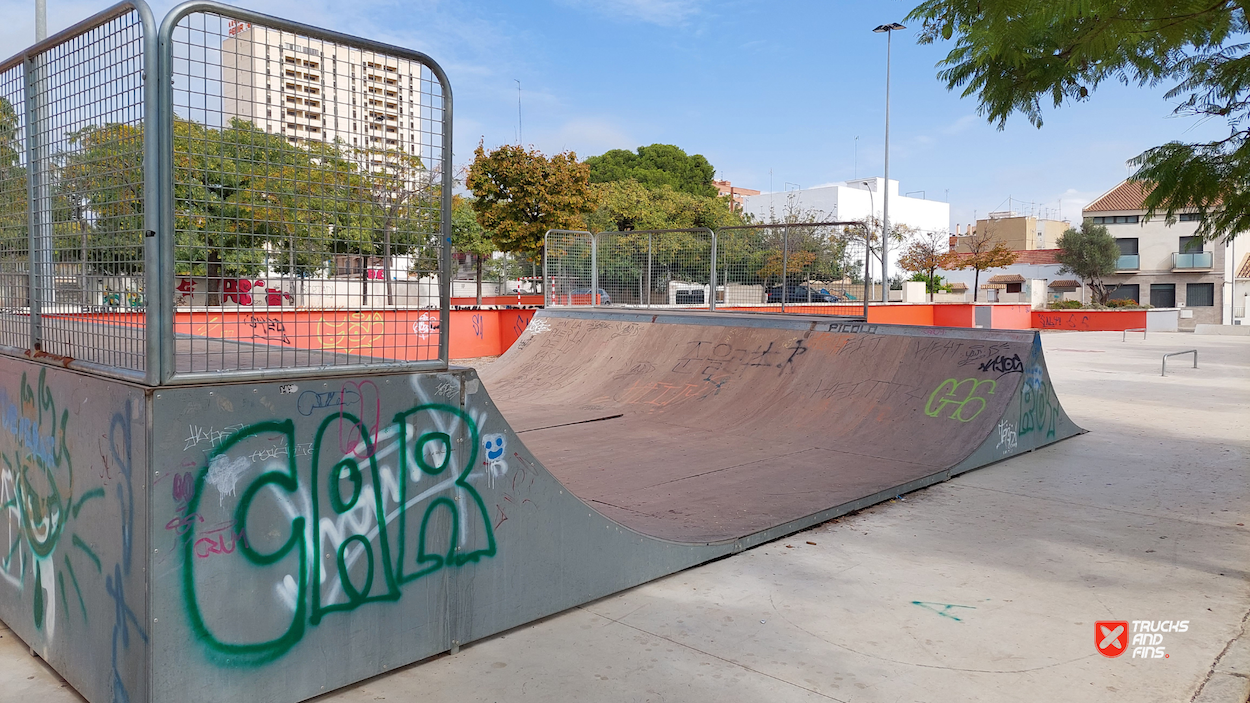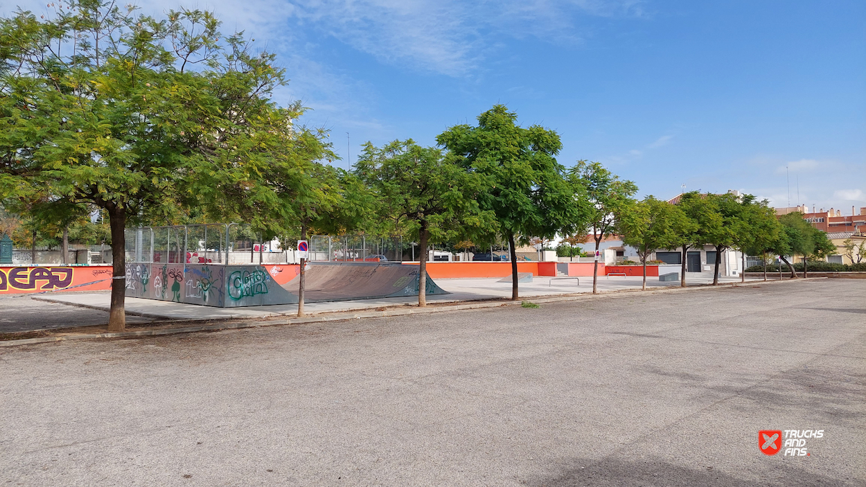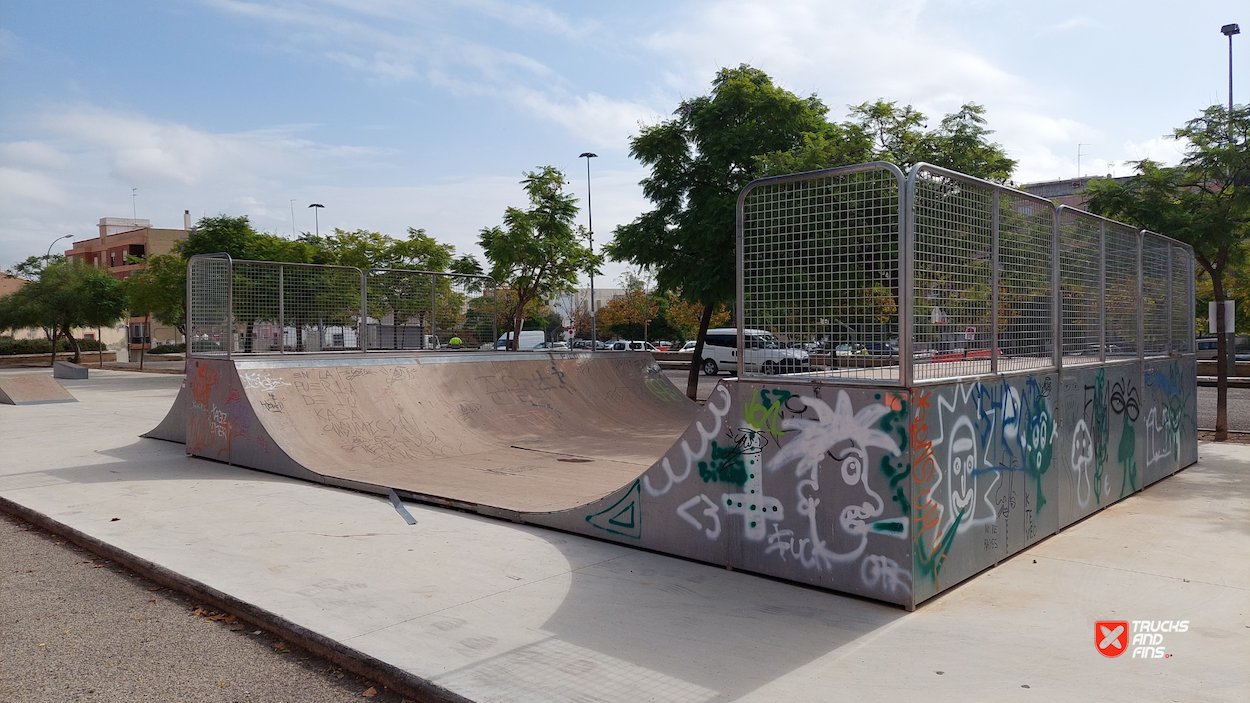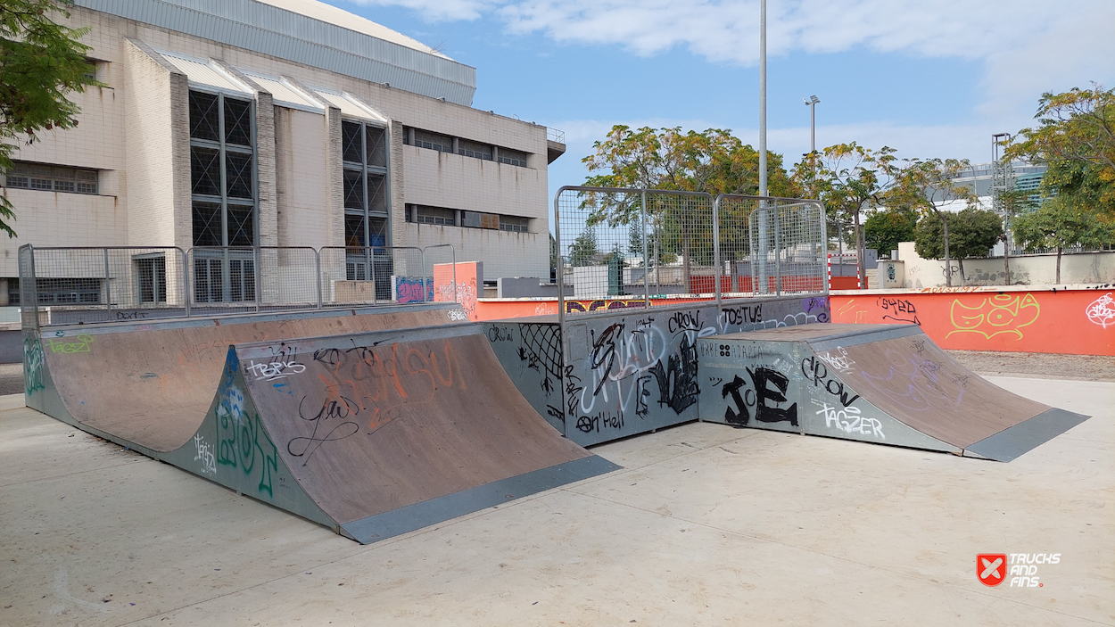 Benimámet skatepark features a miniramp and several basic skateboarding obstacles.