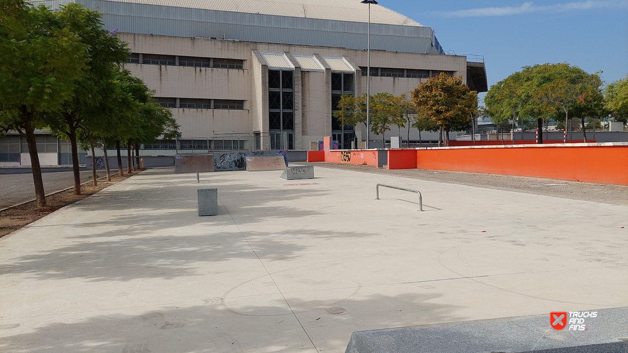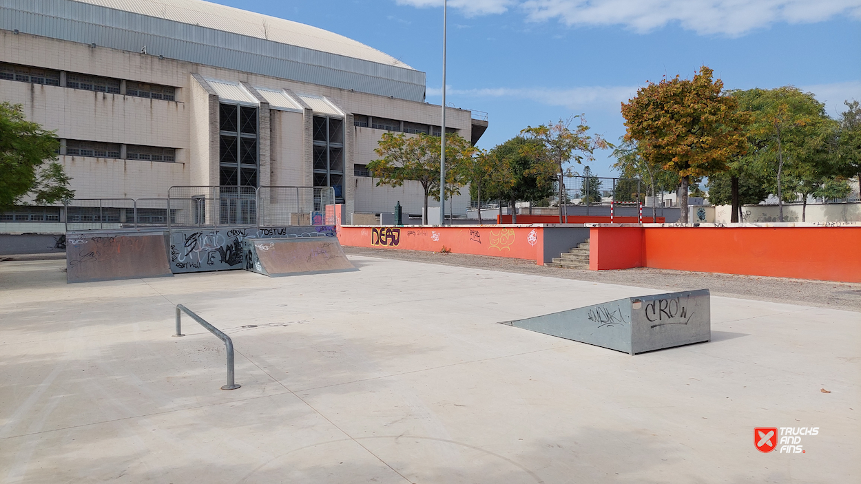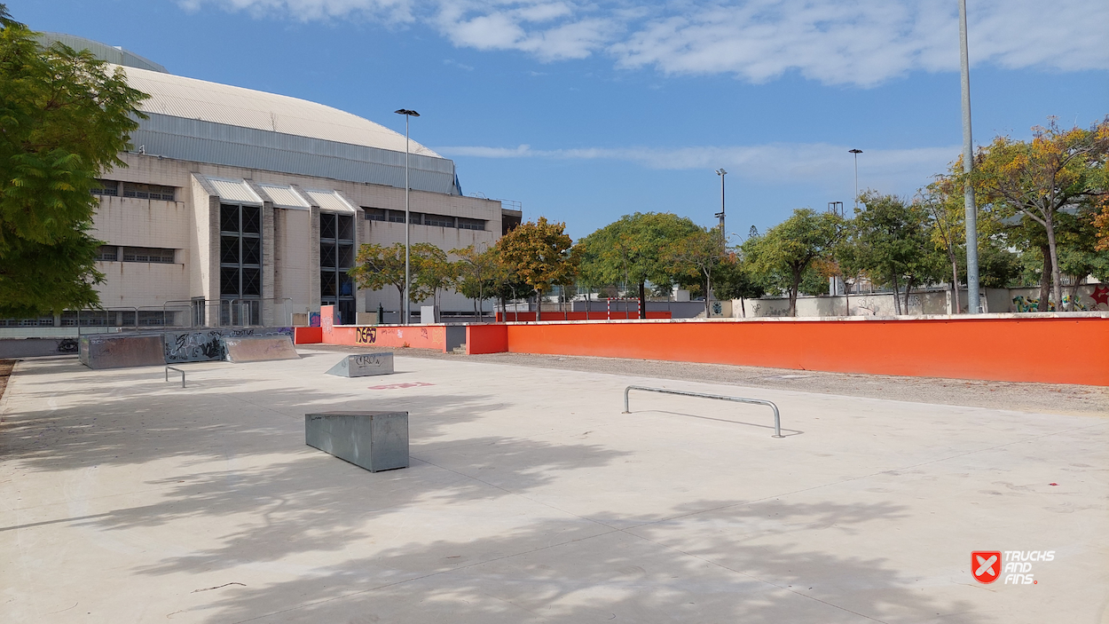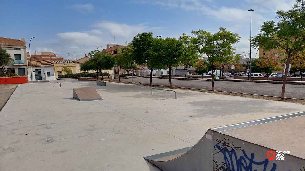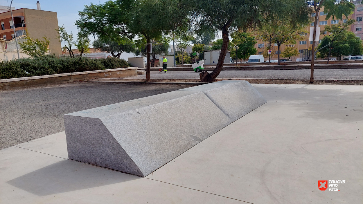 Benimámet skatepark features a miniramp and several basic skateboarding obstacles.