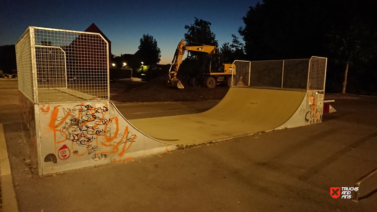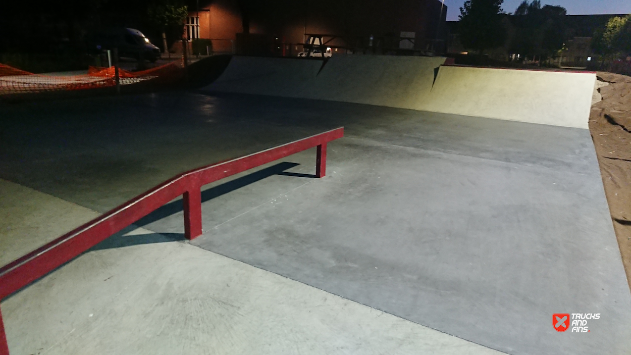 Berlare skatepark is a 340m2 concrete park with several basic skateboarding obstacles in a back and forth setup.