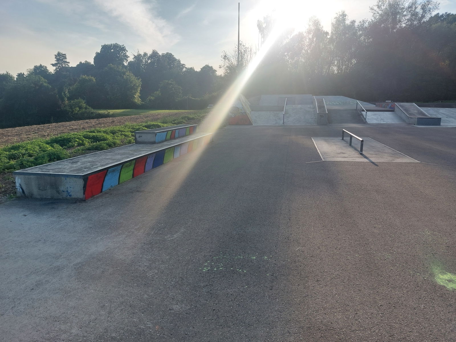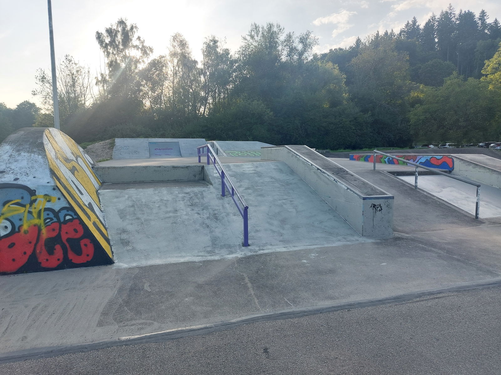 Überlingen-Nußdorf Skatepark is an asphalt and concrete, street-oriented park with a deep corner or half-bowl, plenty of banks and a variety of street features.